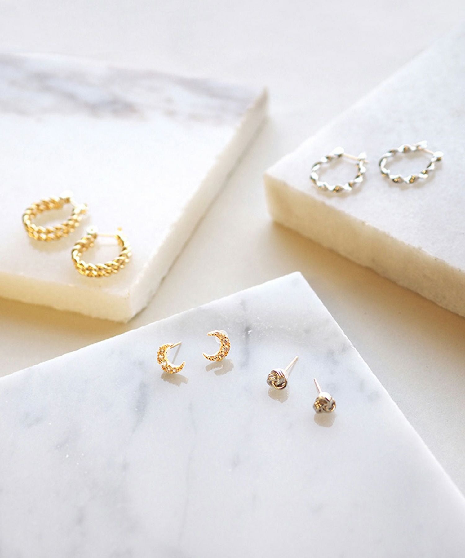 キュービックジルコニアが上品に煌めく月モチーフのピアス。小ぶりなサイズ感で、シーンを選ばず長くご愛用いただけるピアスです。ペアピアス(両耳用)です。