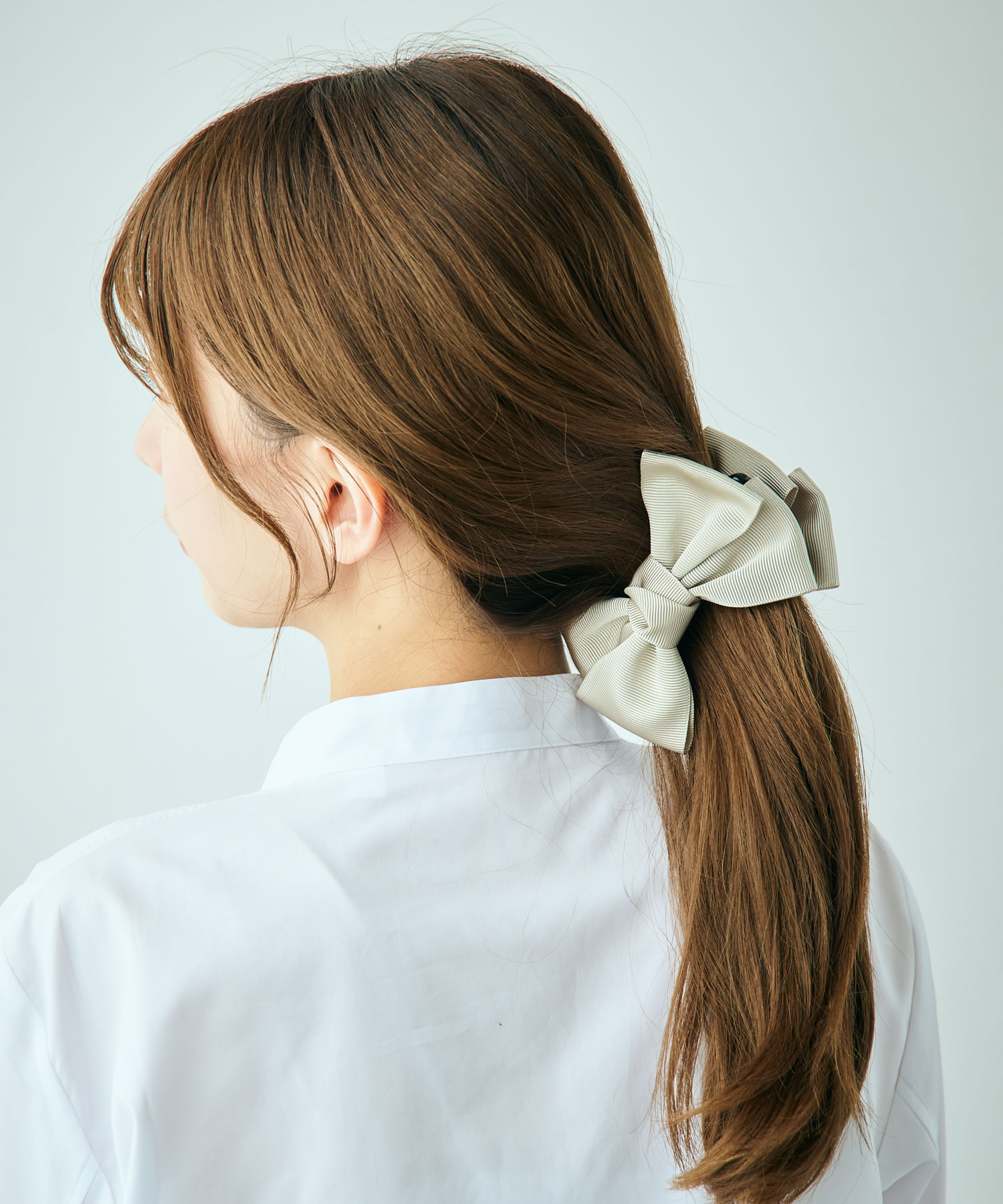 繊細な光沢を放つグログランリボンを丁寧に折り重ねたリボンモチーフのバナナクリップ。程よいボリュームと立体感のあるリボンが、まとめ髪を華やかに彩ります。落ち着いた華やかさは、きちんと感のあるお出かけスタイルにもぴったり。