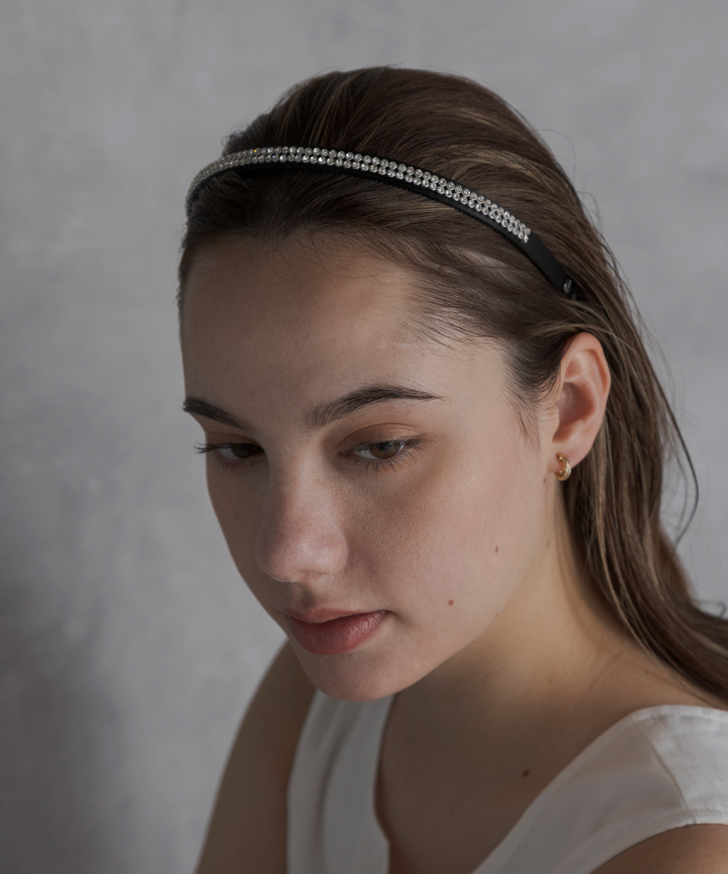 二列に並んだラインストーンがエレガントな光を放つ華やかなカチューシャ。キラキラと輝くストーンは、派手すぎず、上品な華やかさを演出。デイリーユースはもちろん、パーティーや結婚式など、特別な日の装いにもぴったりです。