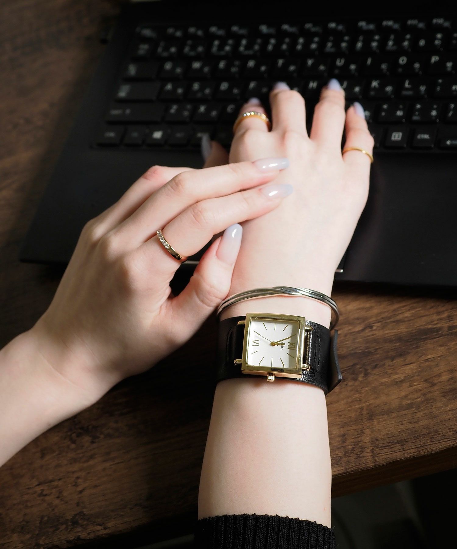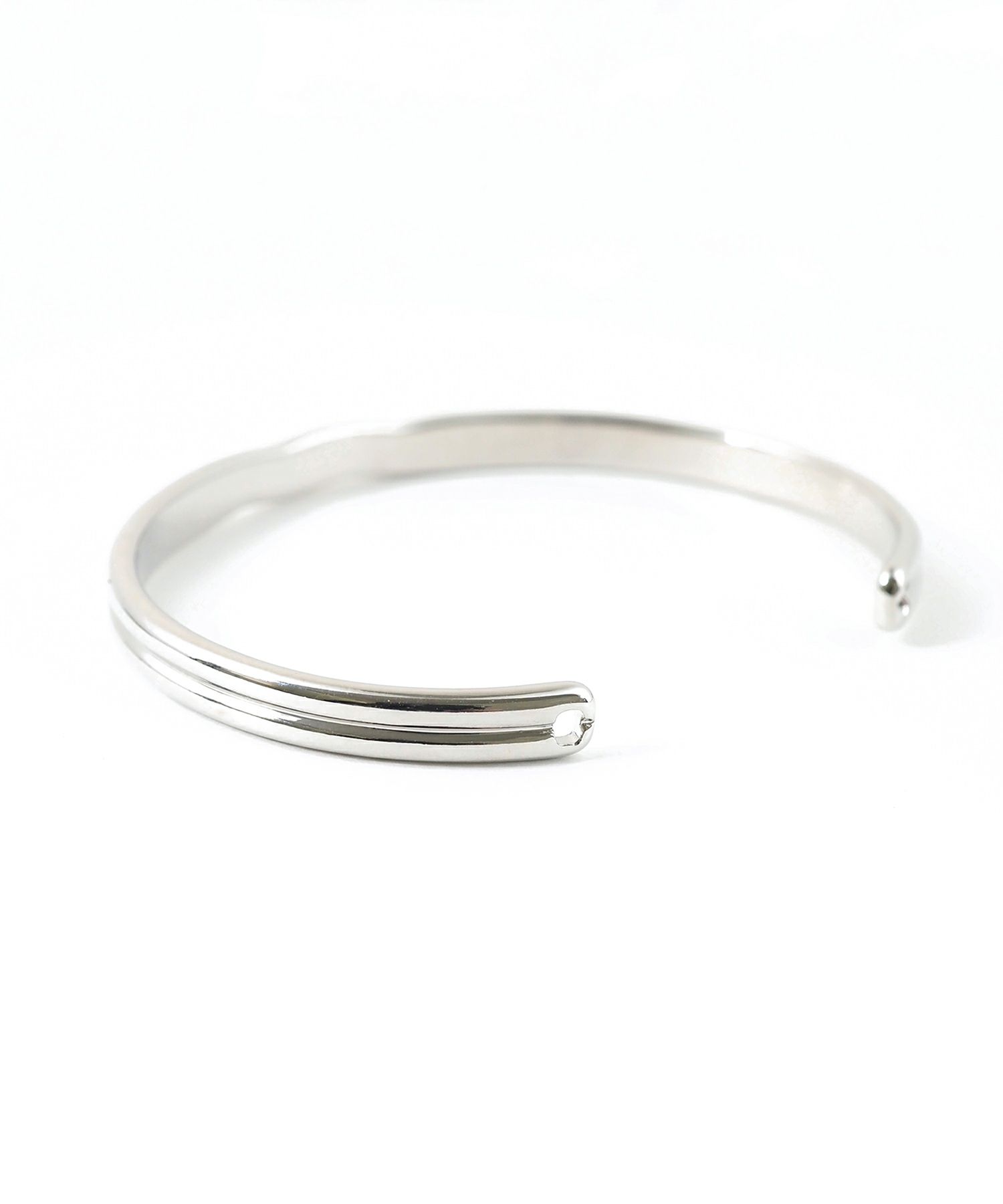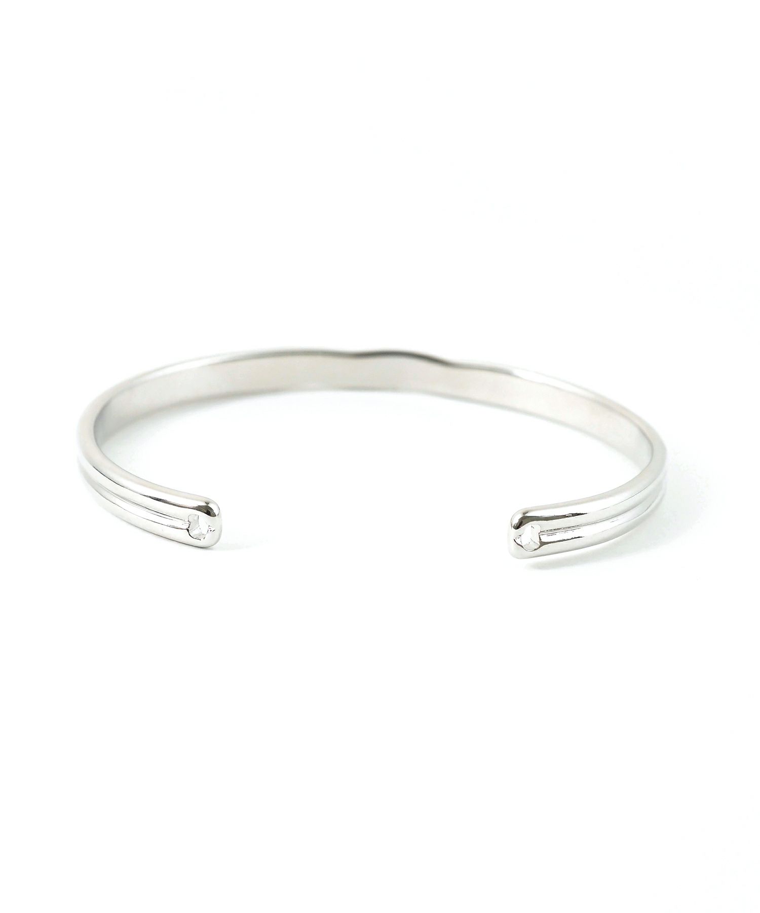 立体感のある2本のラインが交差したデザインのメタルバングル。シンプルなストレートシルエットにデザインが効いた、使いやすいボリューム感のアイテムです。