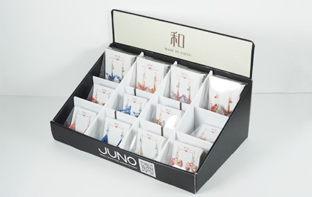 そのまま商品を並べるだけでも綺麗ですが、アクセサリーの取り扱いが初めての方でも安心してコーナーを展開できるよう、専用什器もご用意しております。お客様が商品を手に取った後も、元の位置に戻しやすく、商品整理の手間を大幅に削減できます。