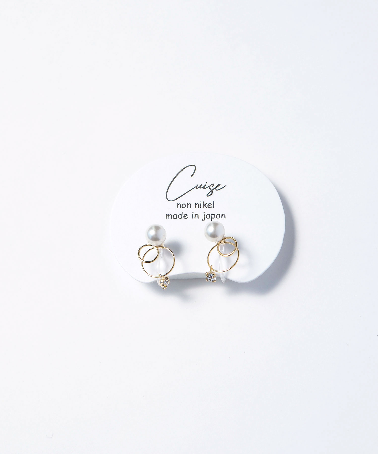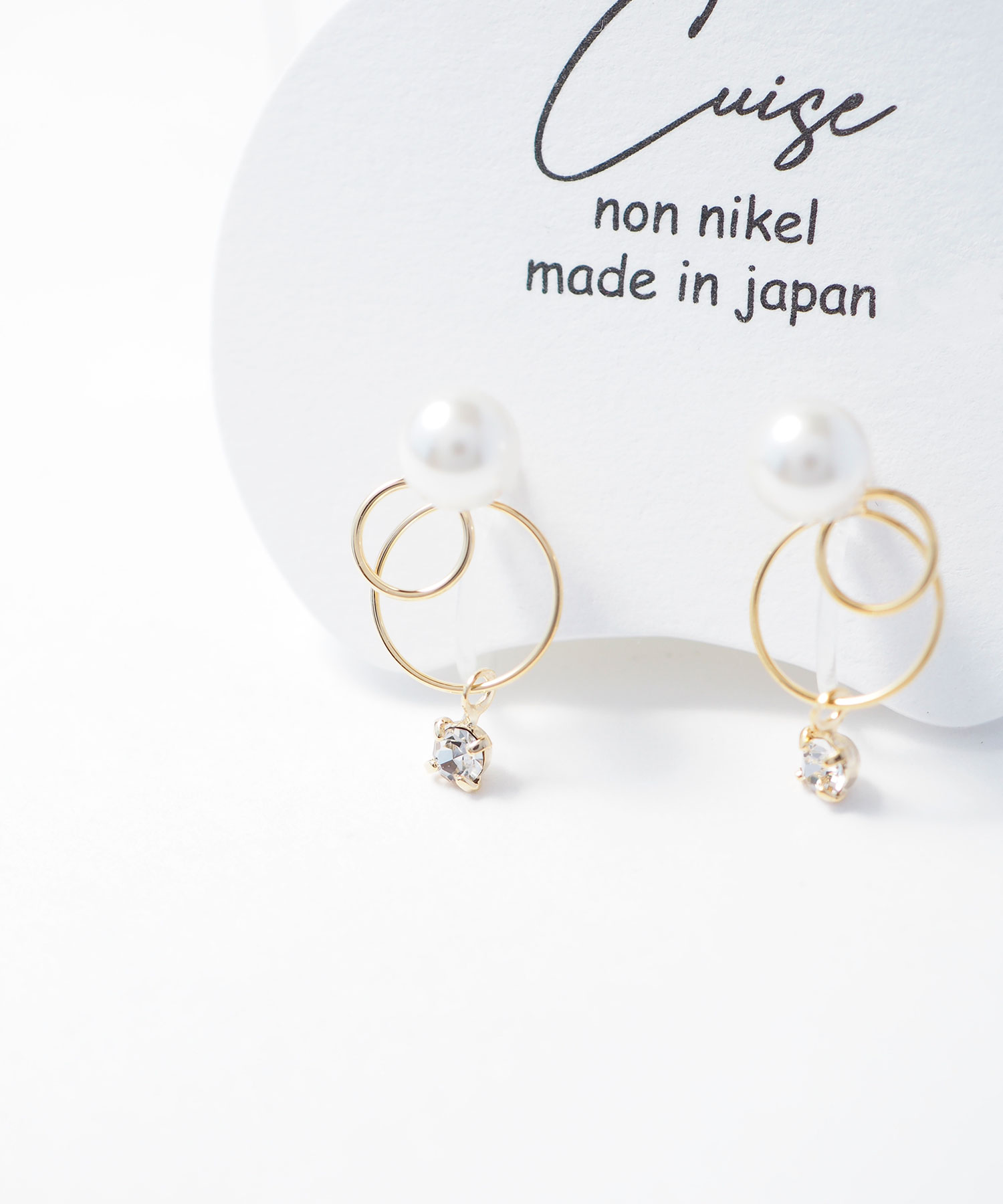 ピアスの穴を開けずにおしゃれを楽しめることから「ノンホールピアス」と呼ばれるイヤリング。留め具部分に、金属アレルギーの起こりにくい樹脂を使用しています。とても軽量で長時間つけても耳が痛くなりにくく、伸縮性があるため落ちにくいイヤリングです。またクリアパーツは目立ちにくく、ピアスのようにすっきり見えるのも嬉しいポイントです。全ての方に金属アレルギー反応が出ない(アレルギーフリー)を保証するものではございません。予めご了承ください。