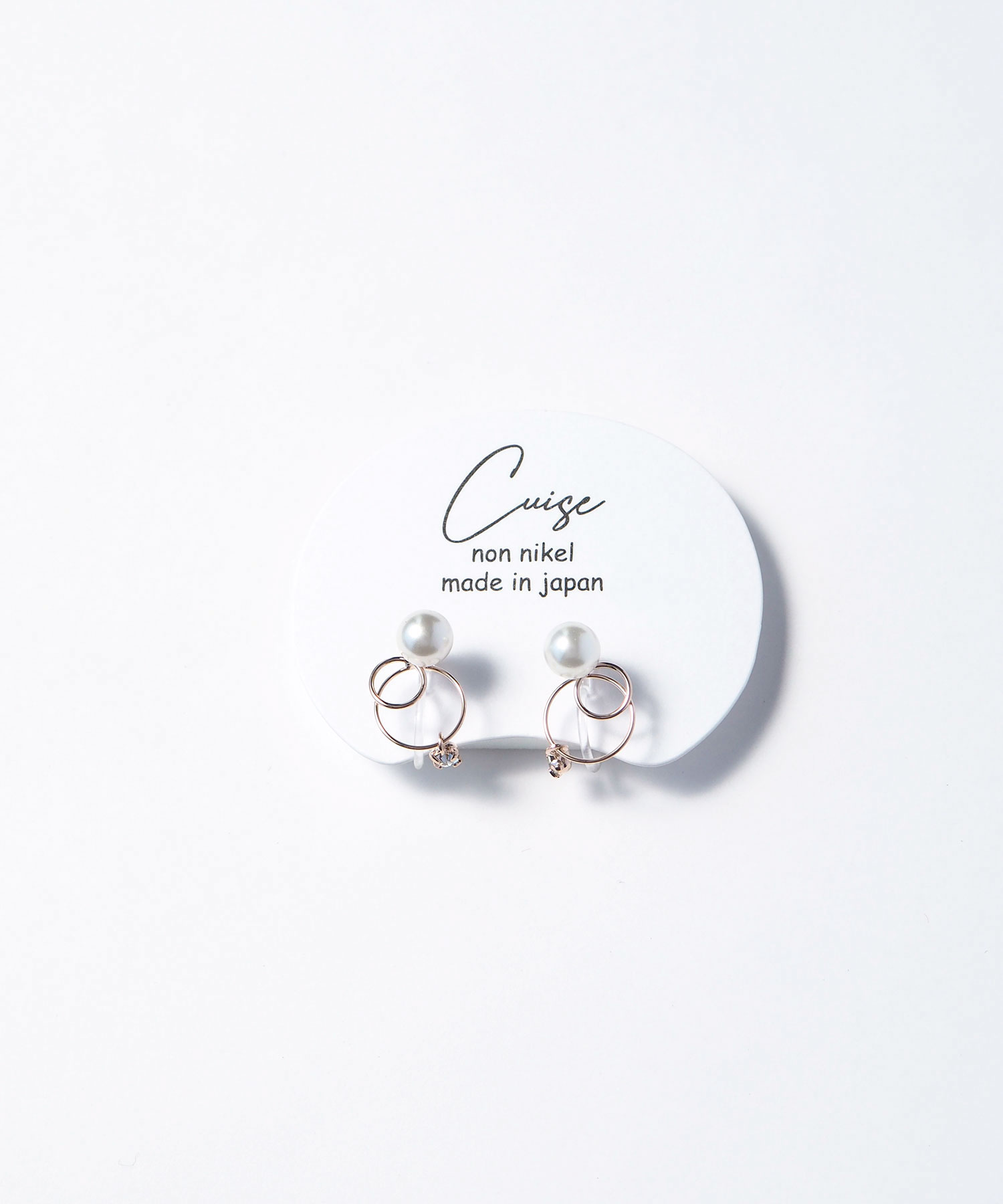 繊細なワイヤーで形作られたモチーフが美しい樹脂ノンホールイヤリング。アクセントのパールがシンプルすぎずおしゃれな雰囲気に。