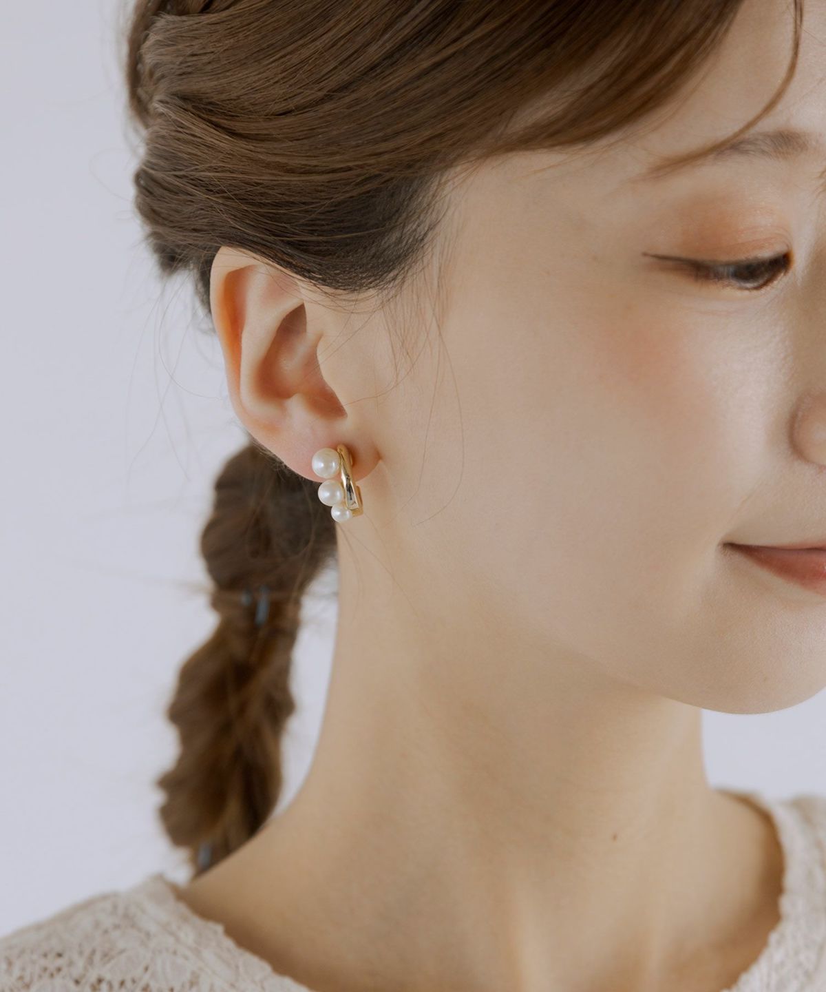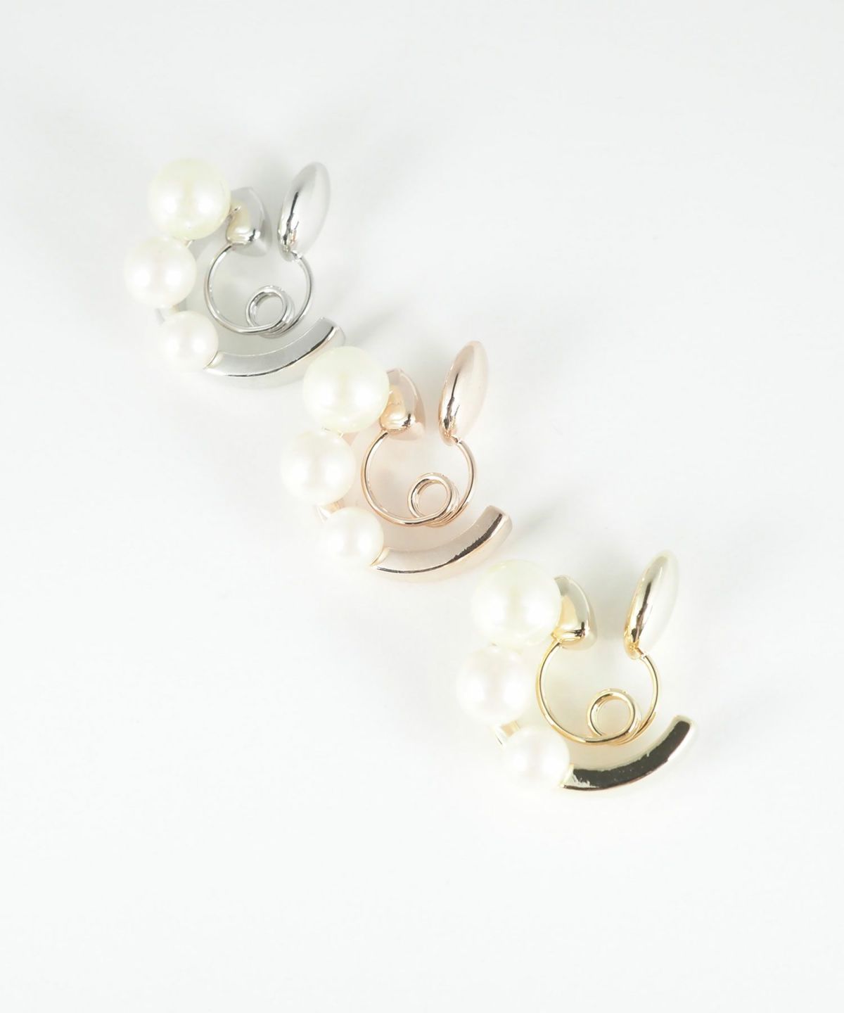 艶やかなメタルラインに上品な3連パールが耳元からスッと伸び、首筋を長く美しく見せエレガントな印象を与えるループフィットイヤリング。デイリーはもちろん、フォーマルまで幅広いシーンで活躍する万能デザイン。耳に優しくフィットするループフィット機能はそのままに、少し大きめで存在感のあるデザインに仕上げたグランループフィットイヤリングです。イヤリングパーツが目立たずピアスみたいな見ためも魅力。