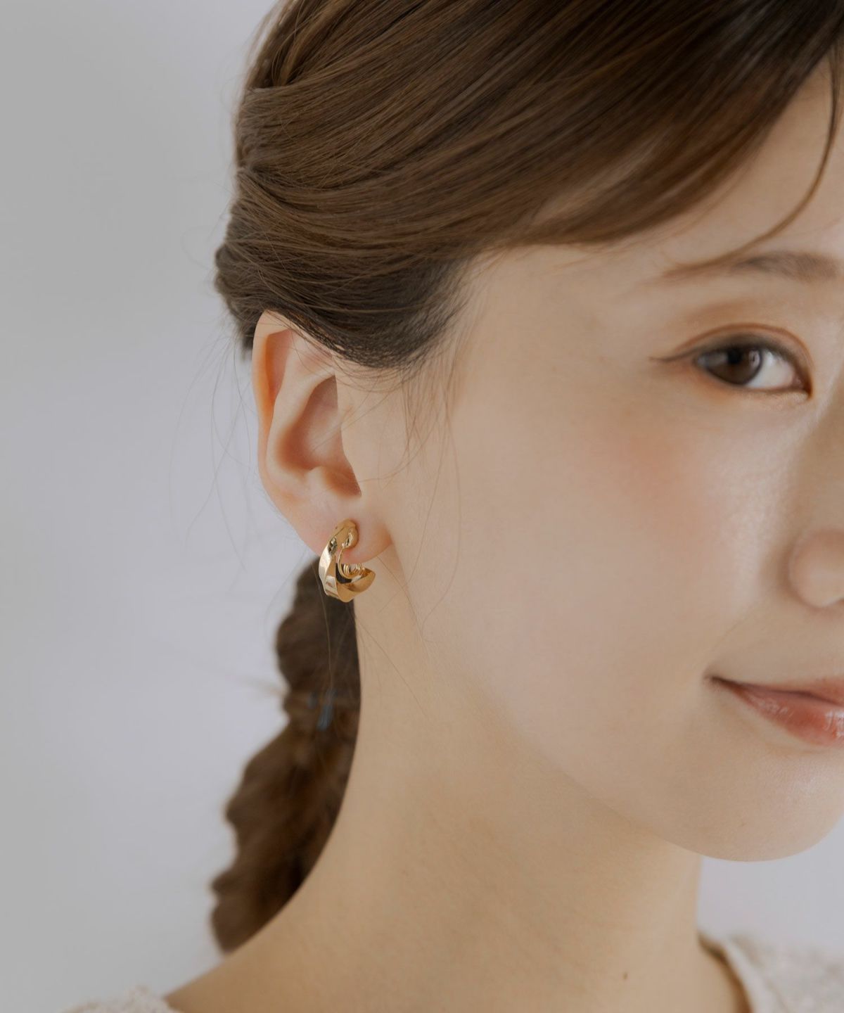 シンプルながらも存在感のある、メタルがクロスしたデザインのループフィットイヤリング。華美すぎないシンプルなメタルデザインは、どんなコーディネートにも自然に溶け込みます。耳に優しくフィットするループフィット機能はそのままに、少し大きめで存在感のあるデザインに仕上げたグランループフィットイヤリングです。イヤリングパーツが目立たずピアスみたいな見ためも魅力。