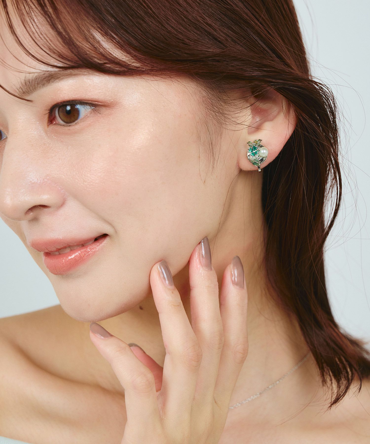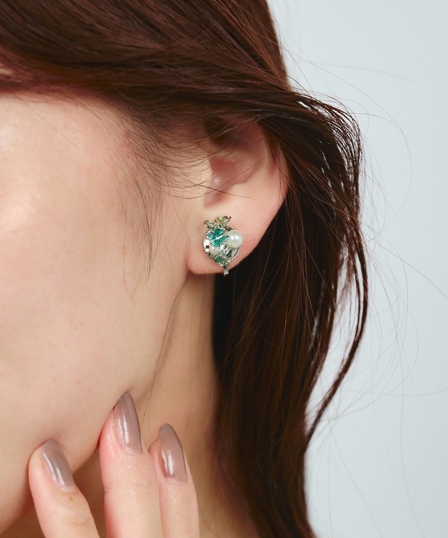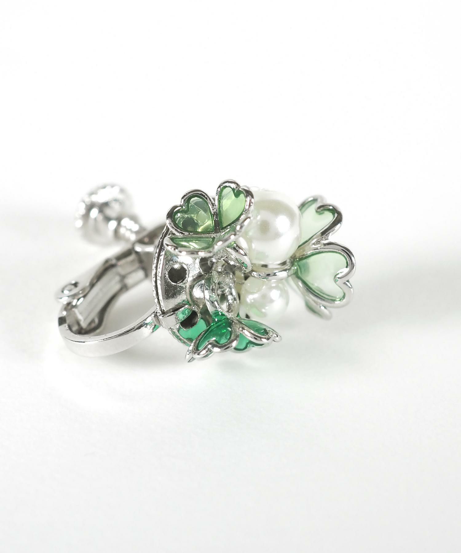 幸せを呼ぶクローバーが華やかに咲く可愛らしいイヤリング。透け感のある爽やかなモチーフが、耳元を軽やかで明るい印象に彩ります。