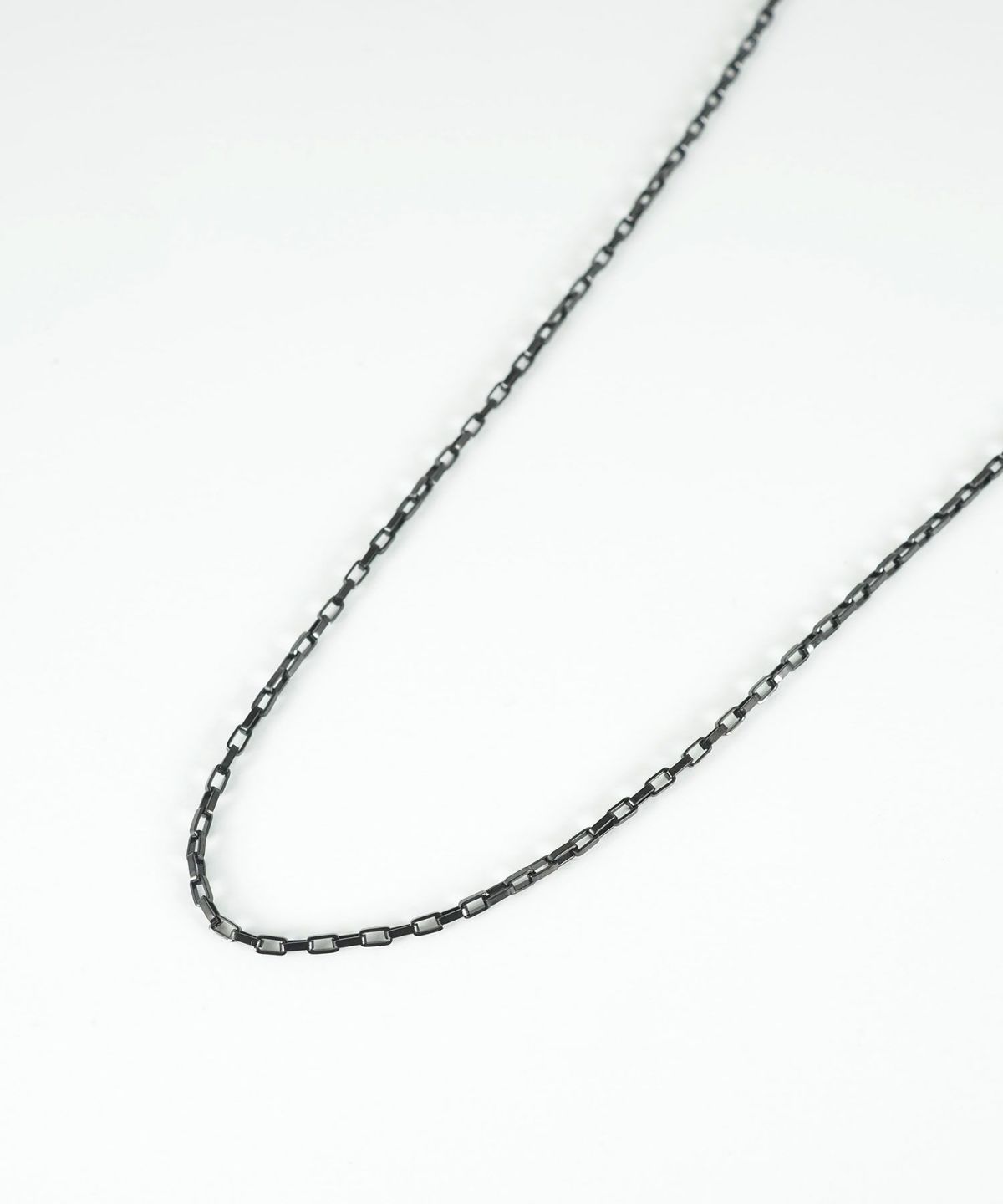 スクエアに成形されたアズキチェーンをブラックカラーで仕上げ、クールで無駄のない大人のチェーンネックレス。コマの角が際立つスクエアフォルムが、デコルテに洗練された立体感とエッジをプラスします。主張しすぎないマットな光沢のブラックカラーは、どんなコーディネートにも自然に溶け込み、一気にモードでスタイリッシュなスタイルが完成します。