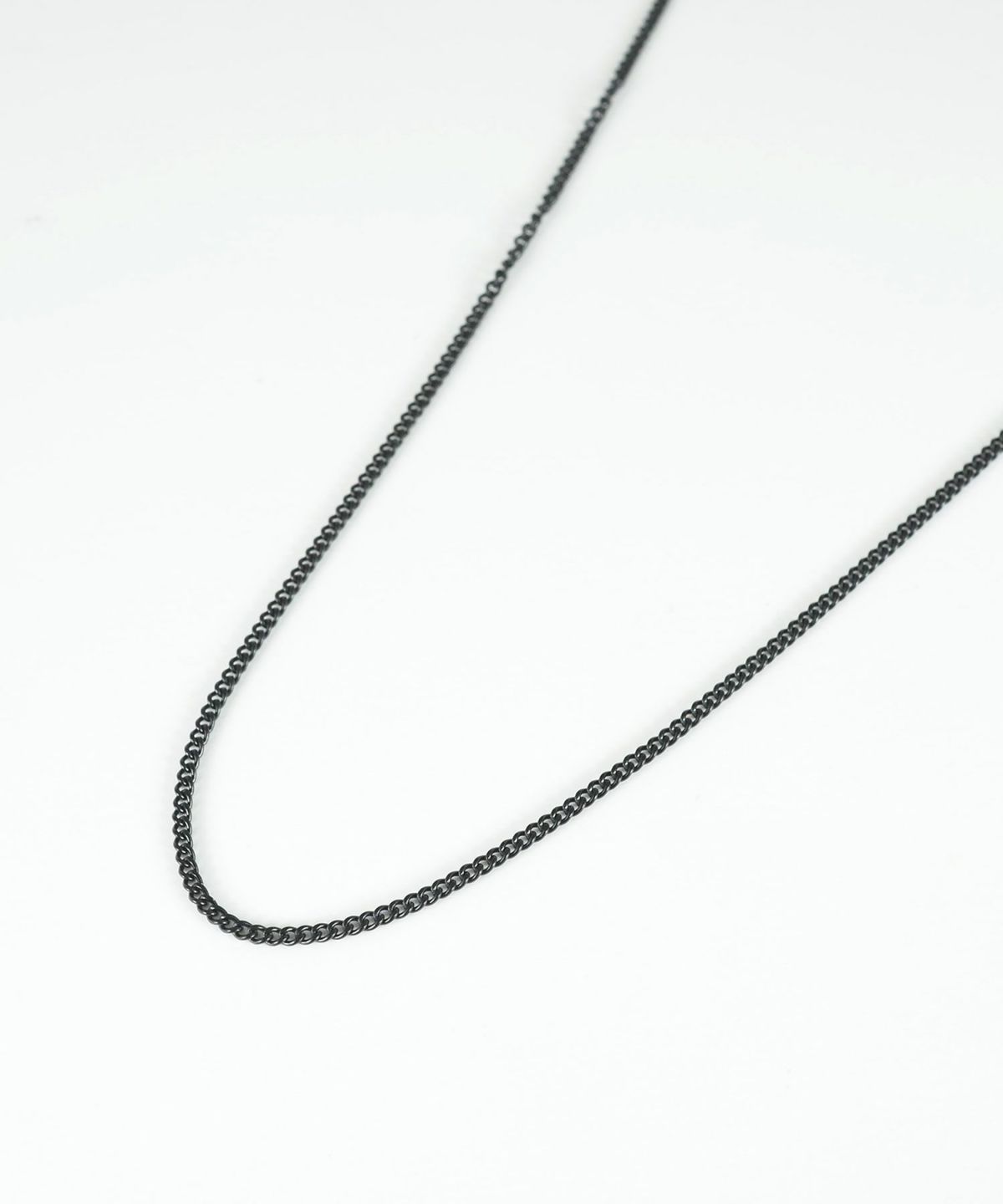 喜平チェーンを、女性のデコルテを美しく見せる細い華奢なラインと、洗練されたブラックカラーで仕上げたチェーンネックレス。重厚なイメージの喜平を軽やかにアレンジし、モードでスタイリッシュな魅力をプラス。光を受けて繊細にきらめくカット面が、大人の女性の個性を引き立てます。