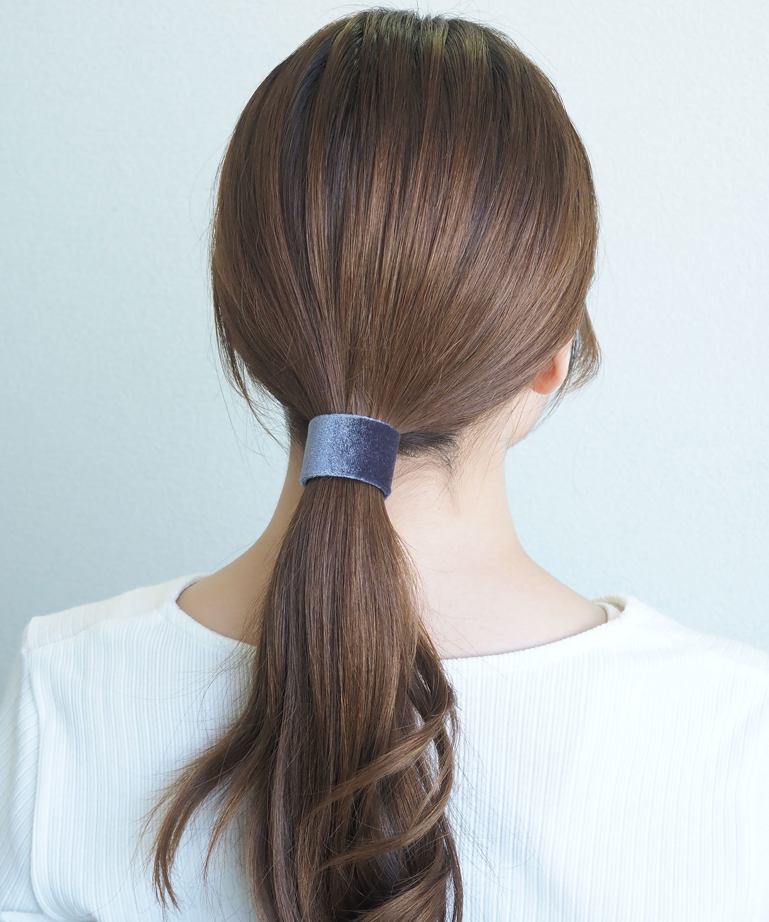 光沢感のあるベロア生地が上品な印象のシュフィー。ゴムで結んだ髪にフックを引っ掛け、くるっと巻き付けるだけで簡単にヘアスタイルが完成します。シーンを問わず使いやすく、秋冬のコーデにぴったりなアイテムです。