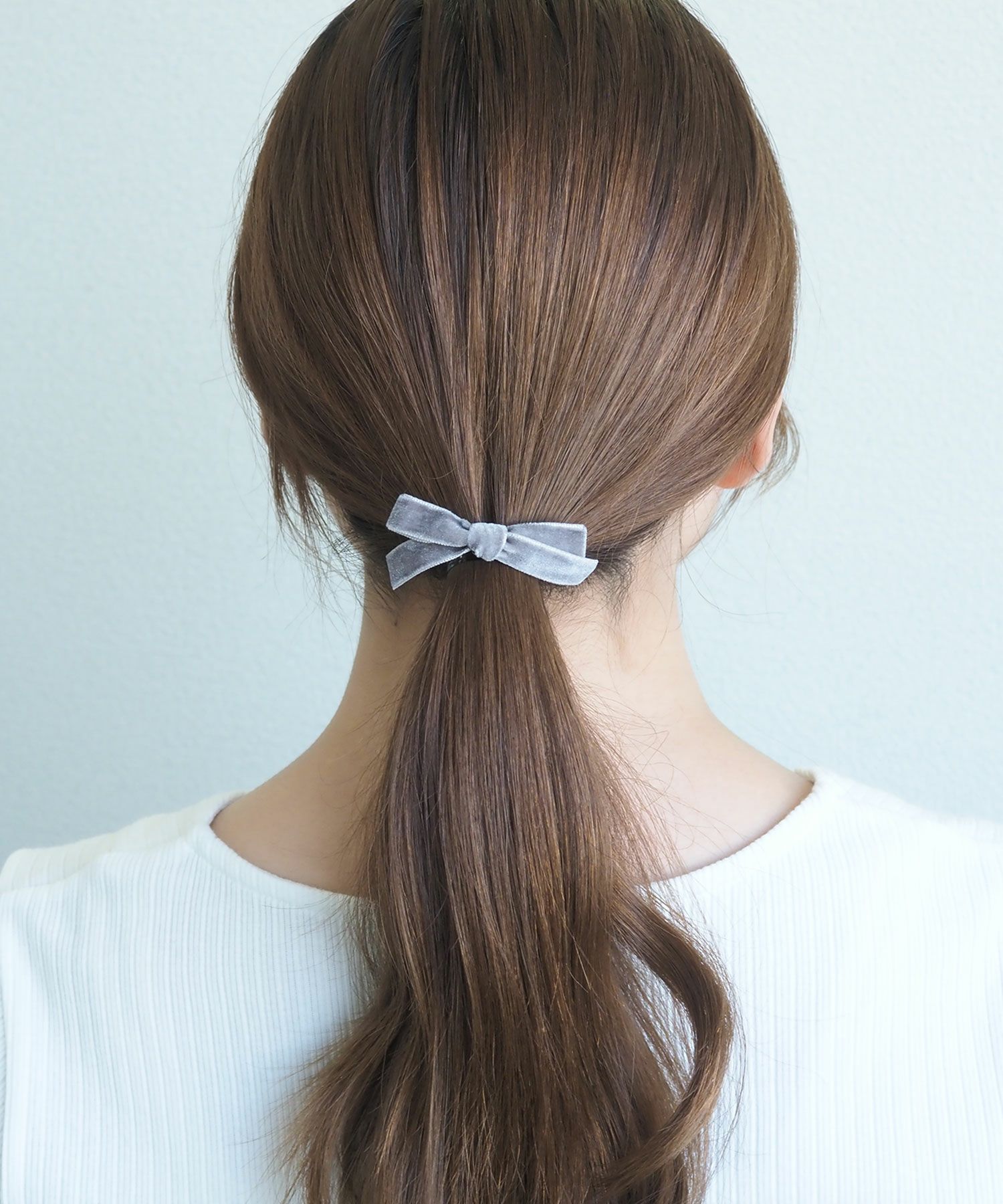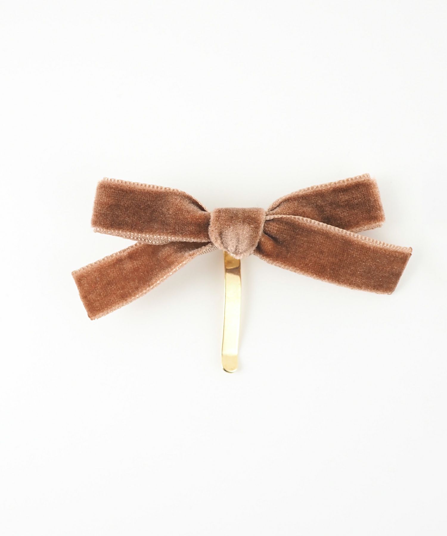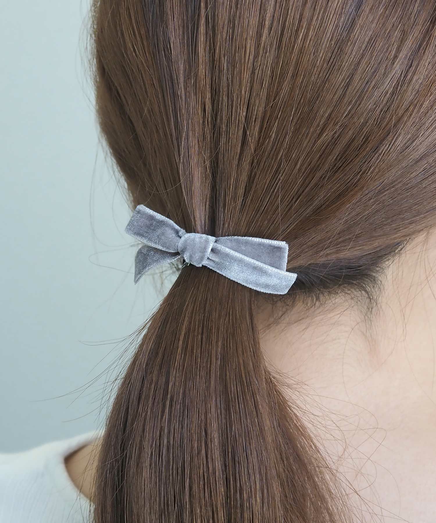 上品さ漂うベロアリボンのポニーフック。ベーシックカラーのミニリボンで、さりげなくフェミニンな雰囲気をプラスしてくれます。温かみのある色味と起毛の素材感が秋冬のコーデにぴったりなアイテムです。