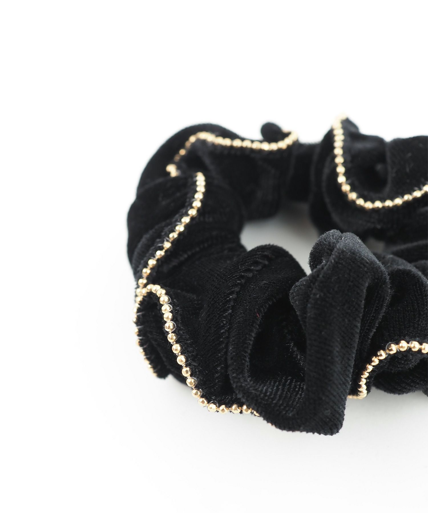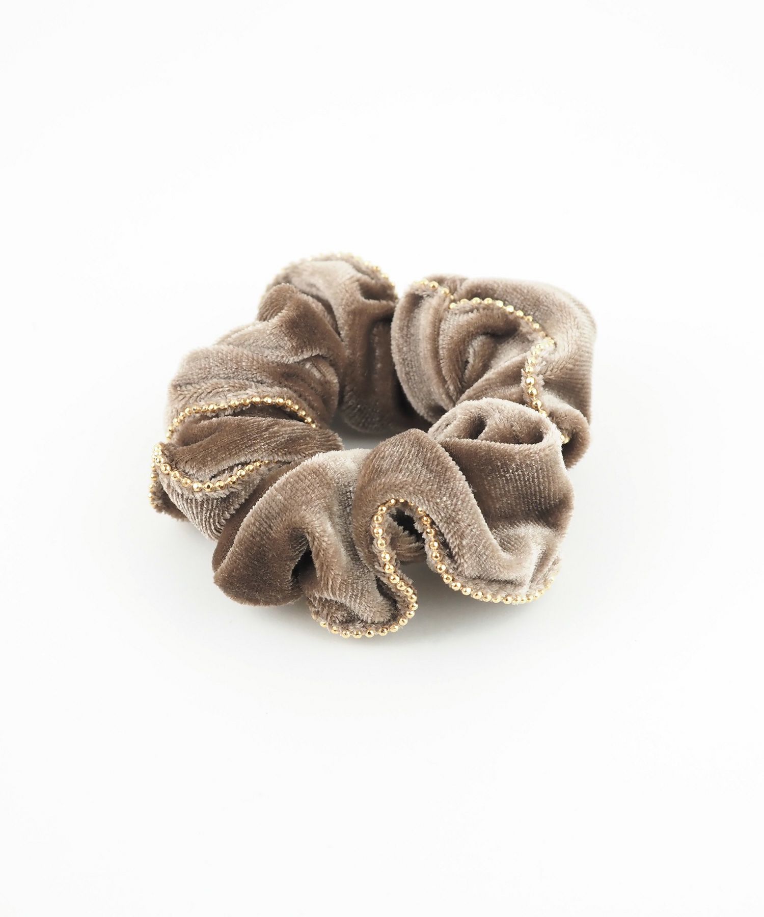上品さ漂うベロアのミニシュシュ。ゴールドのメタルボールのパイピングがアクセントになり、華やかでこなれた雰囲気に。温かみのある色味と起毛の素材感が秋冬のコーデにぴったりなアイテムです。