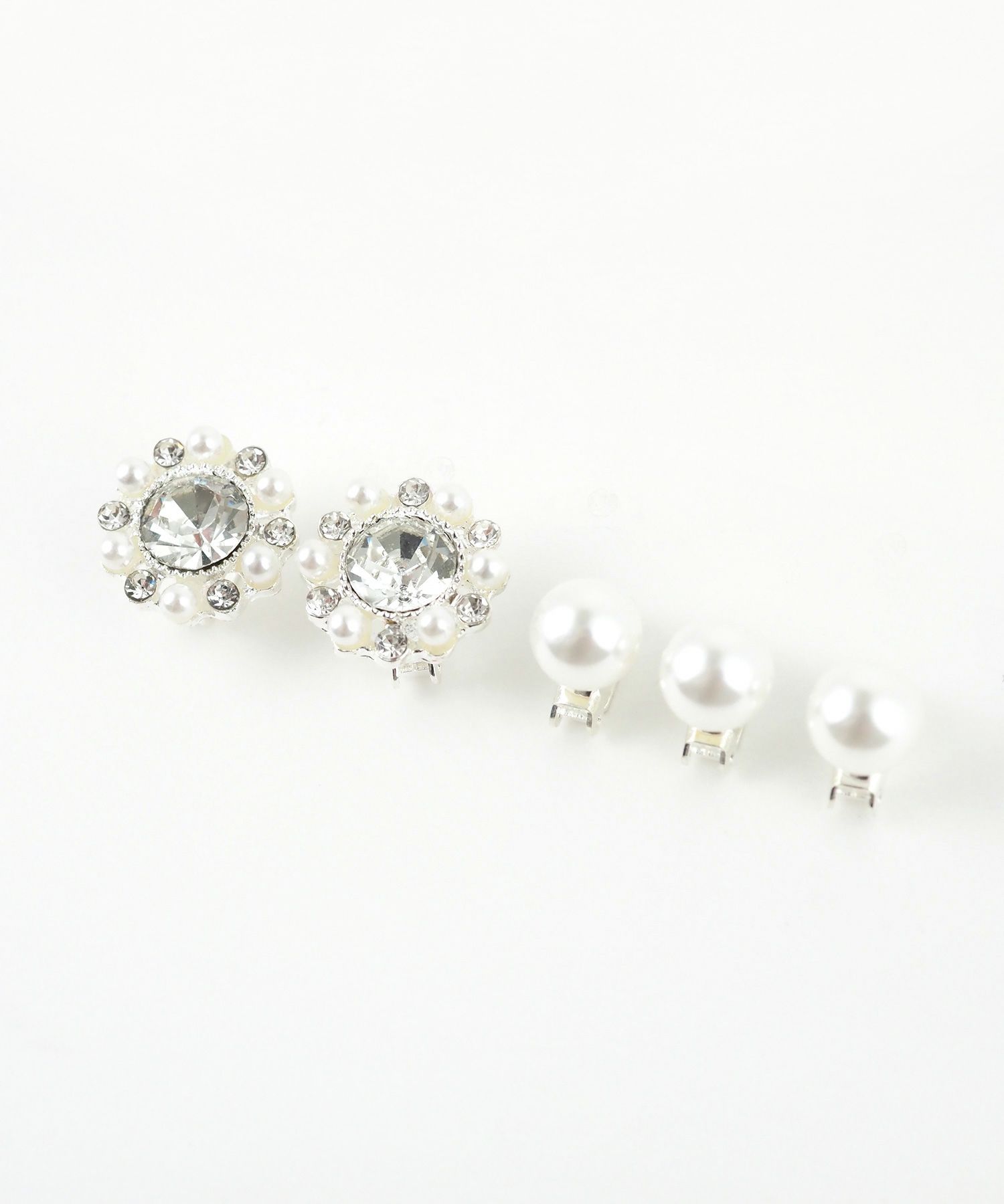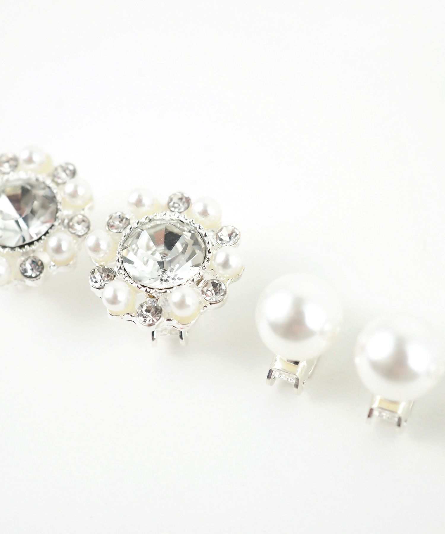 大粒ラインストーンがきらきら輝くフラワーモチーフのヘアビジューセット。艶めくパールがより上品さを引き立てます。クリップ式なので簡単に装着でき、ヘアスタイルを一気に華やかな仕上がりに。お手持ちのヘアアクセサリーと組み合わせて、自由にアレンジを楽しめます。発表会や舞台、結婚式やパーティーなどのオケージョンシーンにぴったりなアイテムです。
