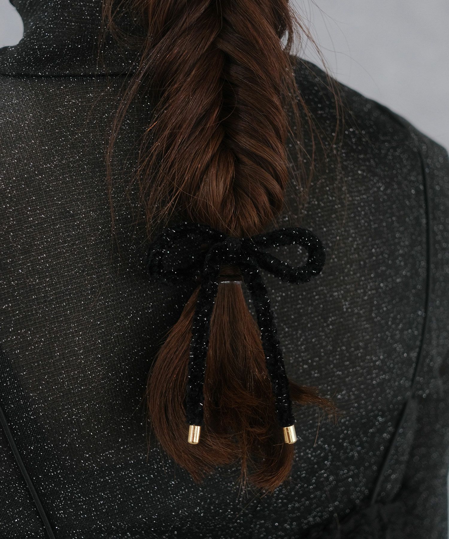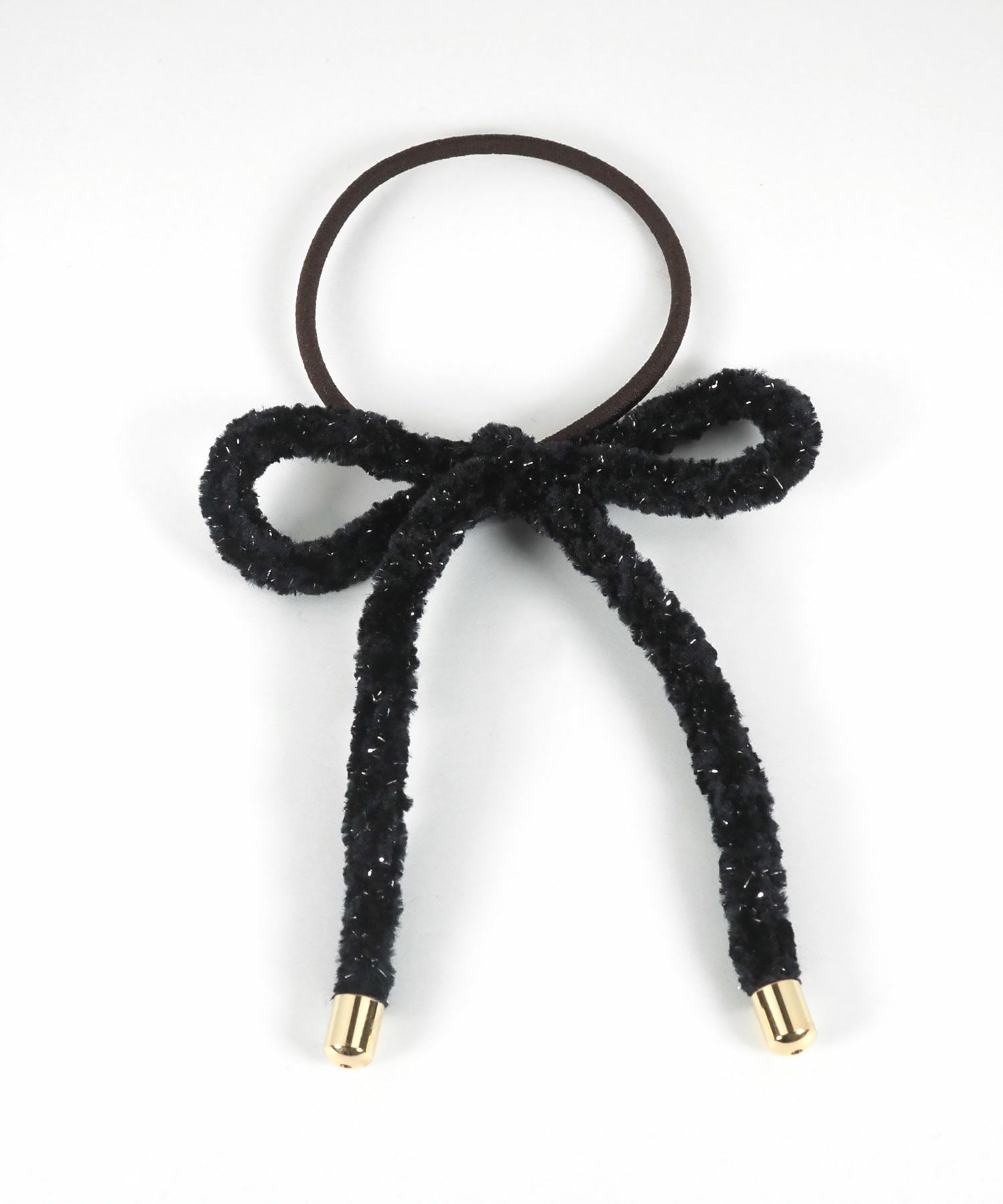 ラメ入りのふわふわリボンが可愛らしいヘアポニー。コーディネートにさりげない季節感をプラスしてくれるアイテムです。