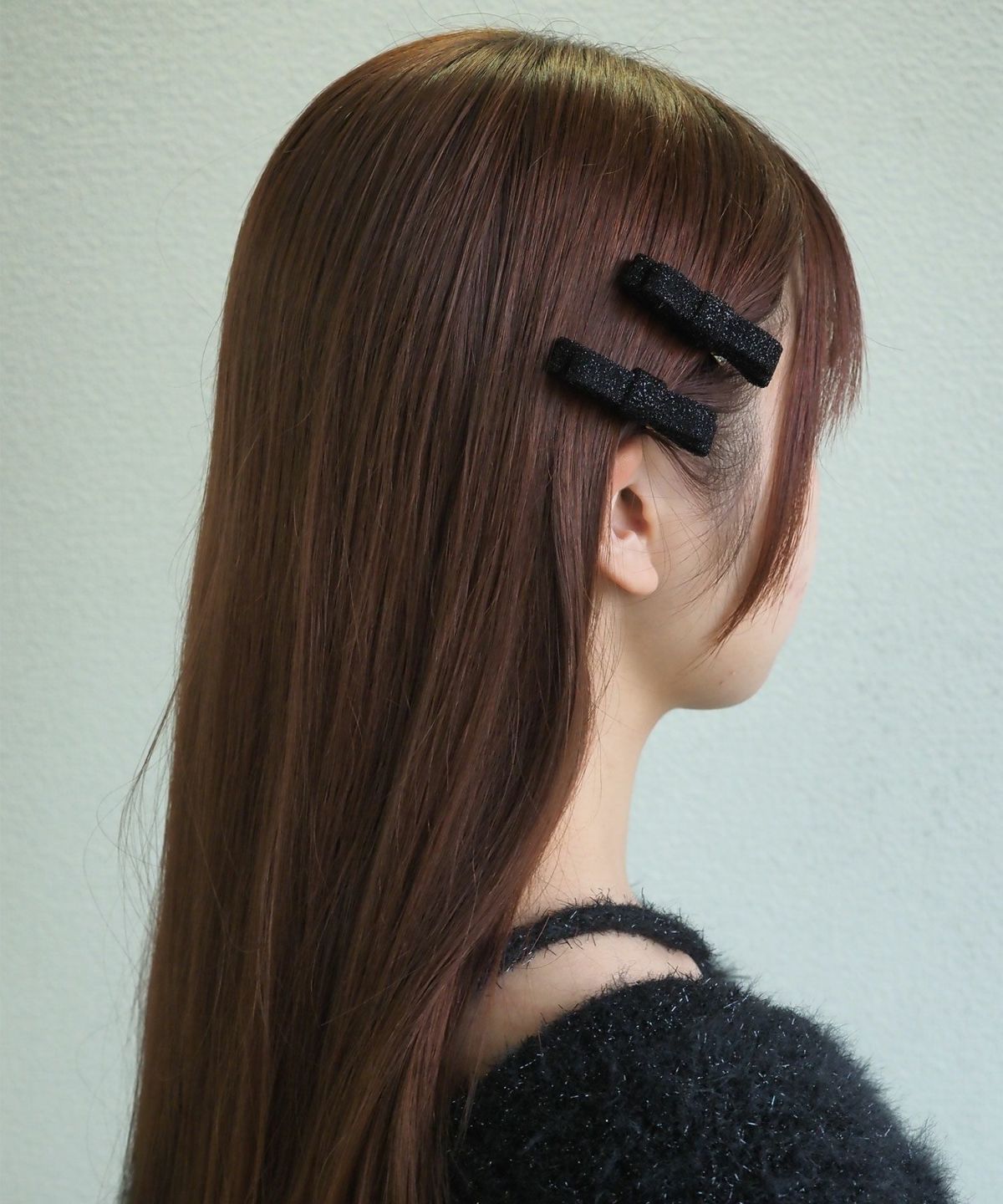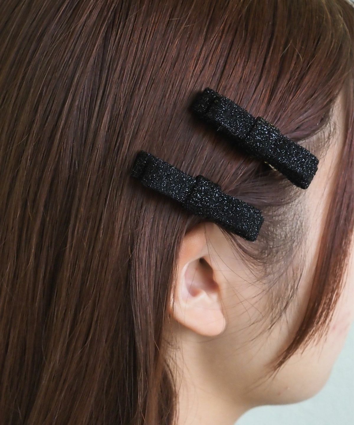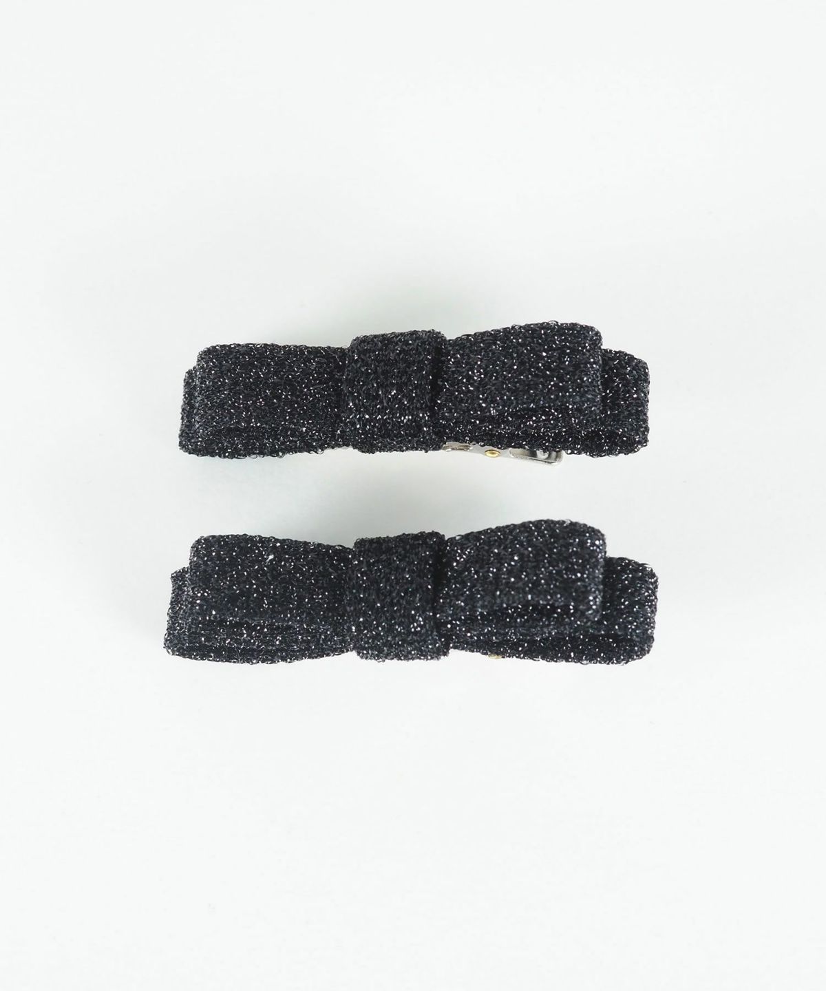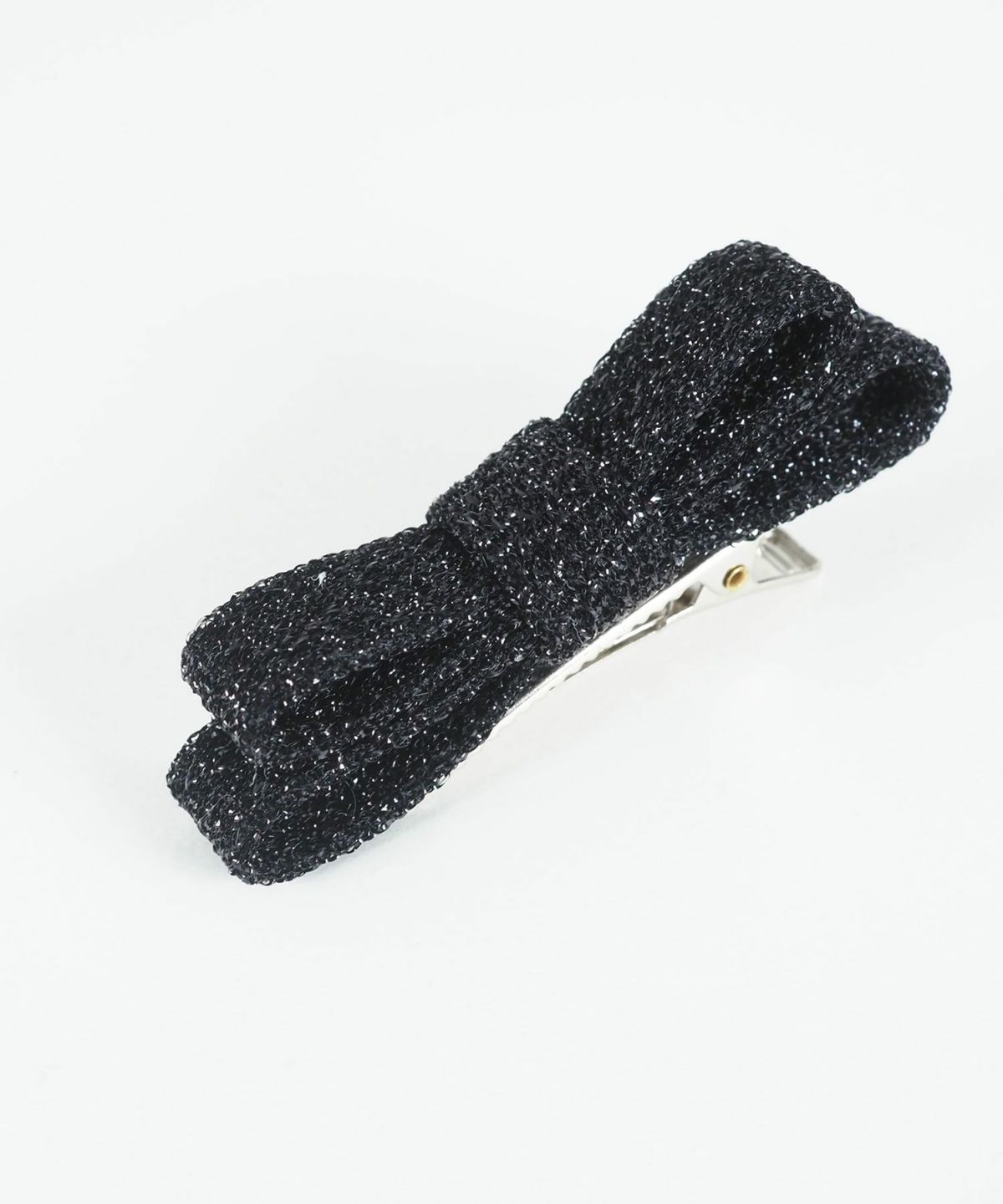 上品な輝きのラメ糸を織り込んだ華やかなリボンモチーフクリップ。ギラつきすぎず、動くたびに光を反射して顔周りをパッと明るく華やかに彩ります。