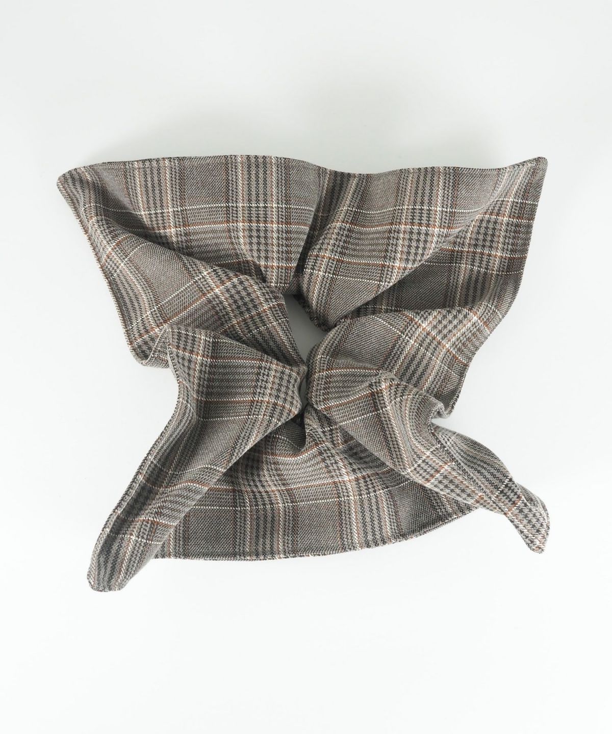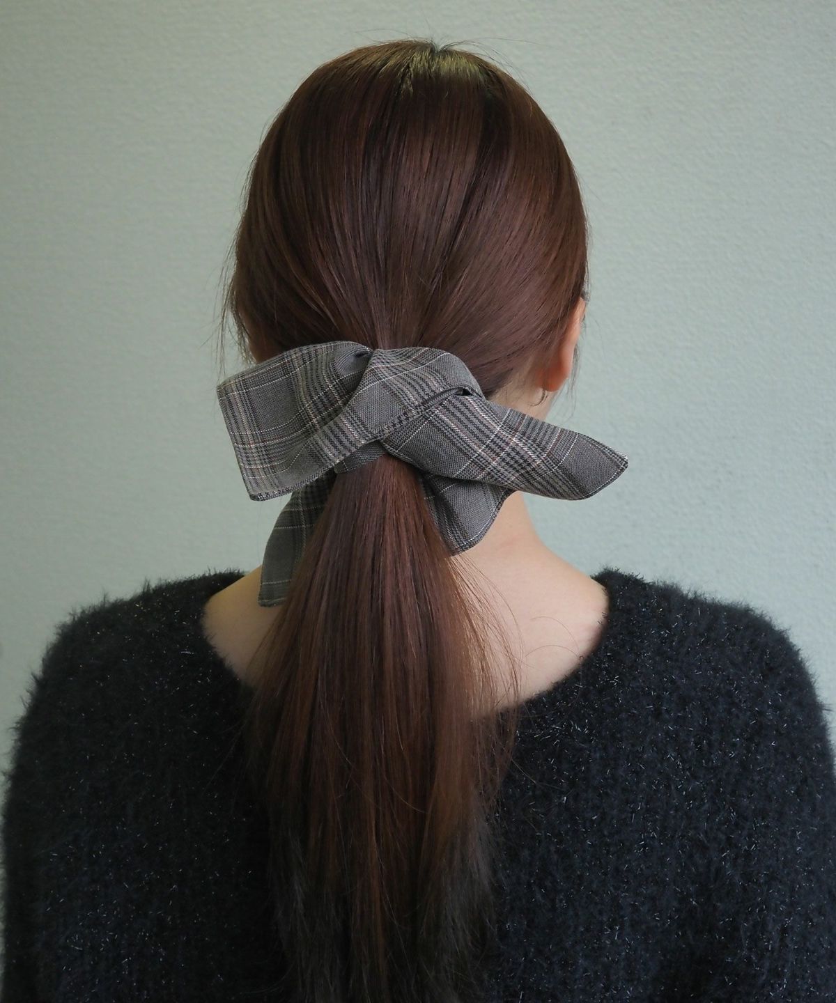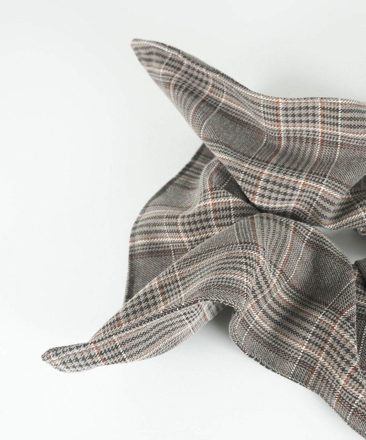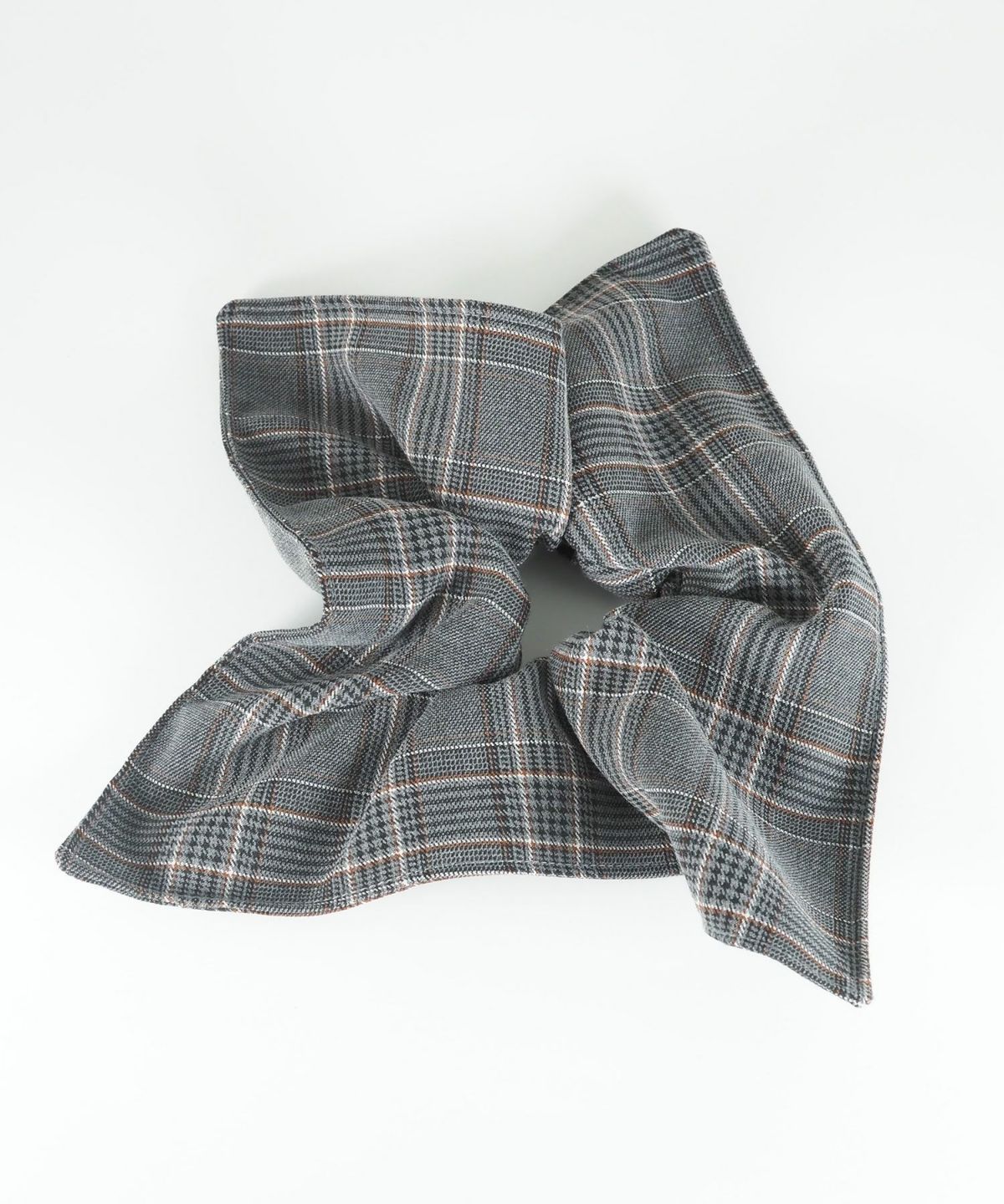 クラシカルな柄であるグレンチェックをあえてスクエアのフォルムで仕上げた個性的で上品さを兼ね備えたシュシュ。シンプルに一つ結びのアクセントとしてはもちろん、腕に付けてブレスレットのように使ってもおしゃれです。秋冬のニットやコートとの相性も抜群で、季節感のあるスタイリングを楽しめます。