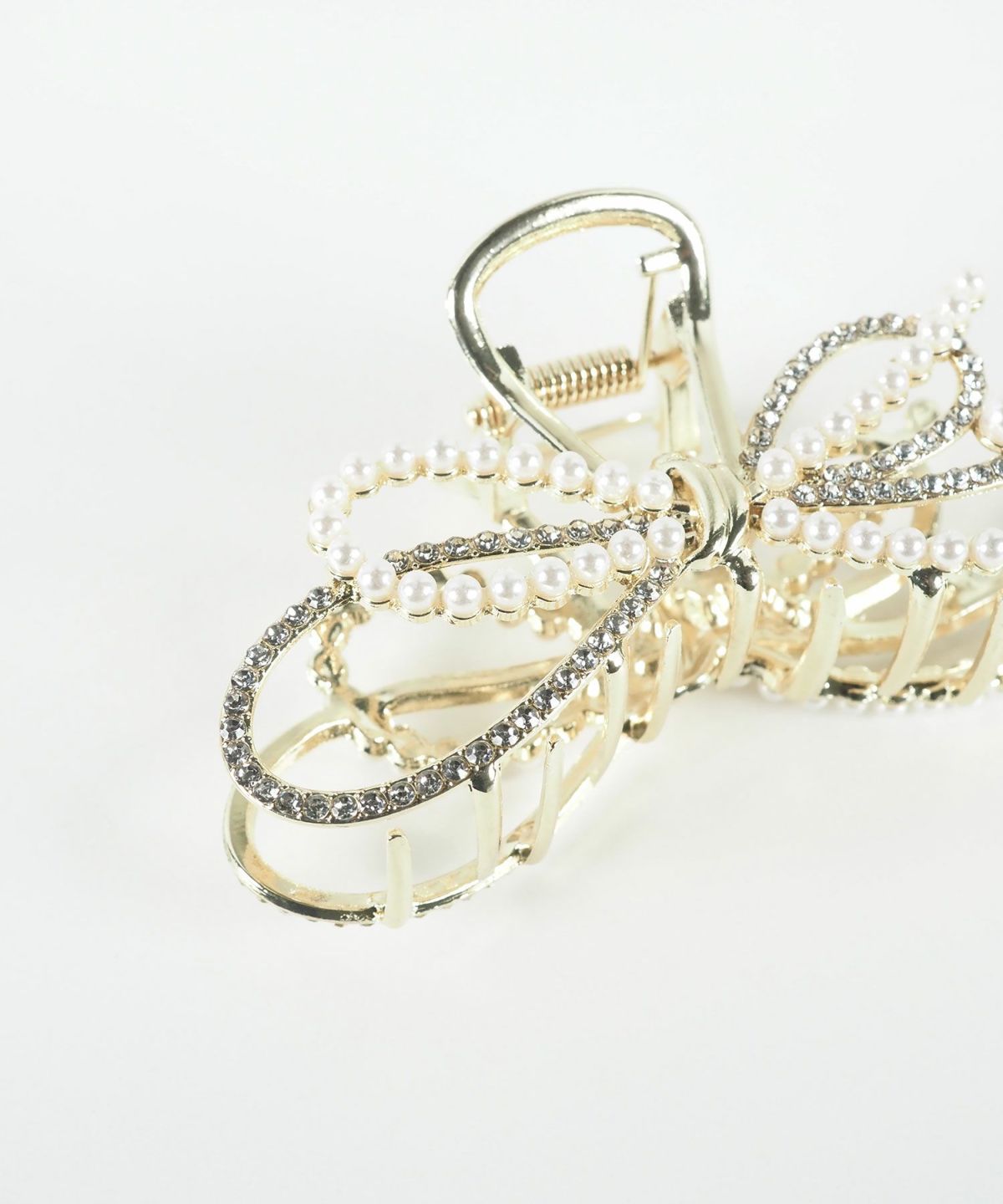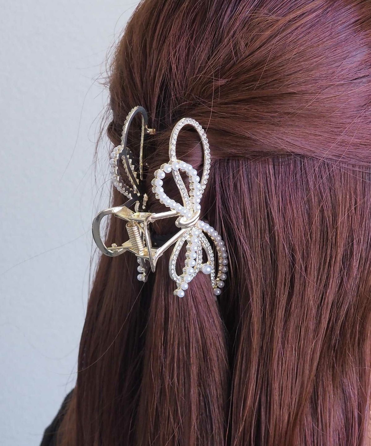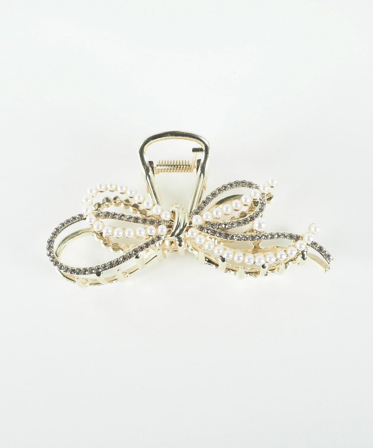 贅沢な輝きを放つストーンと、連なったパールが織りなす圧倒的な存在感が魅力のバンスクリップ。普段使いはもちろん、フォーマルにも対応できる、エレガントなデザイン。