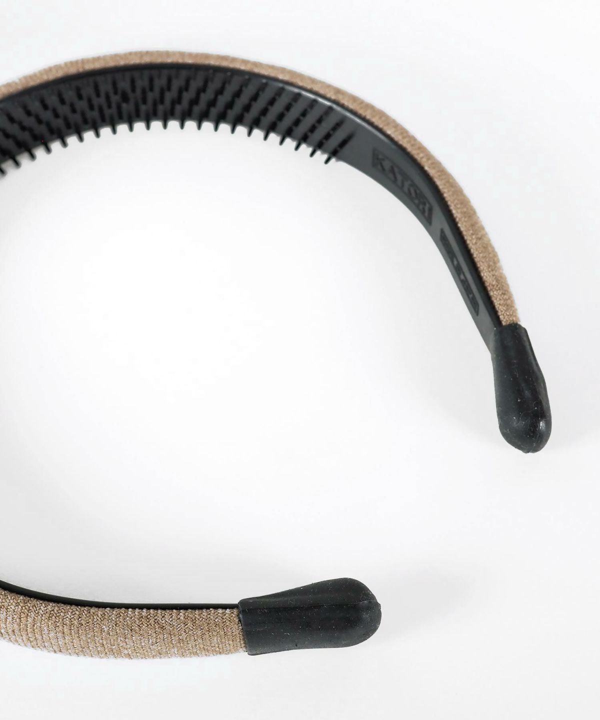 ソフトキャップ付きのカチューシャ。季節感のある素材と落ち着いた色合いでどんなシーンでも合わせやすいアイテム。長時間付けていても痛くなりにくいのが嬉しいポイント。
