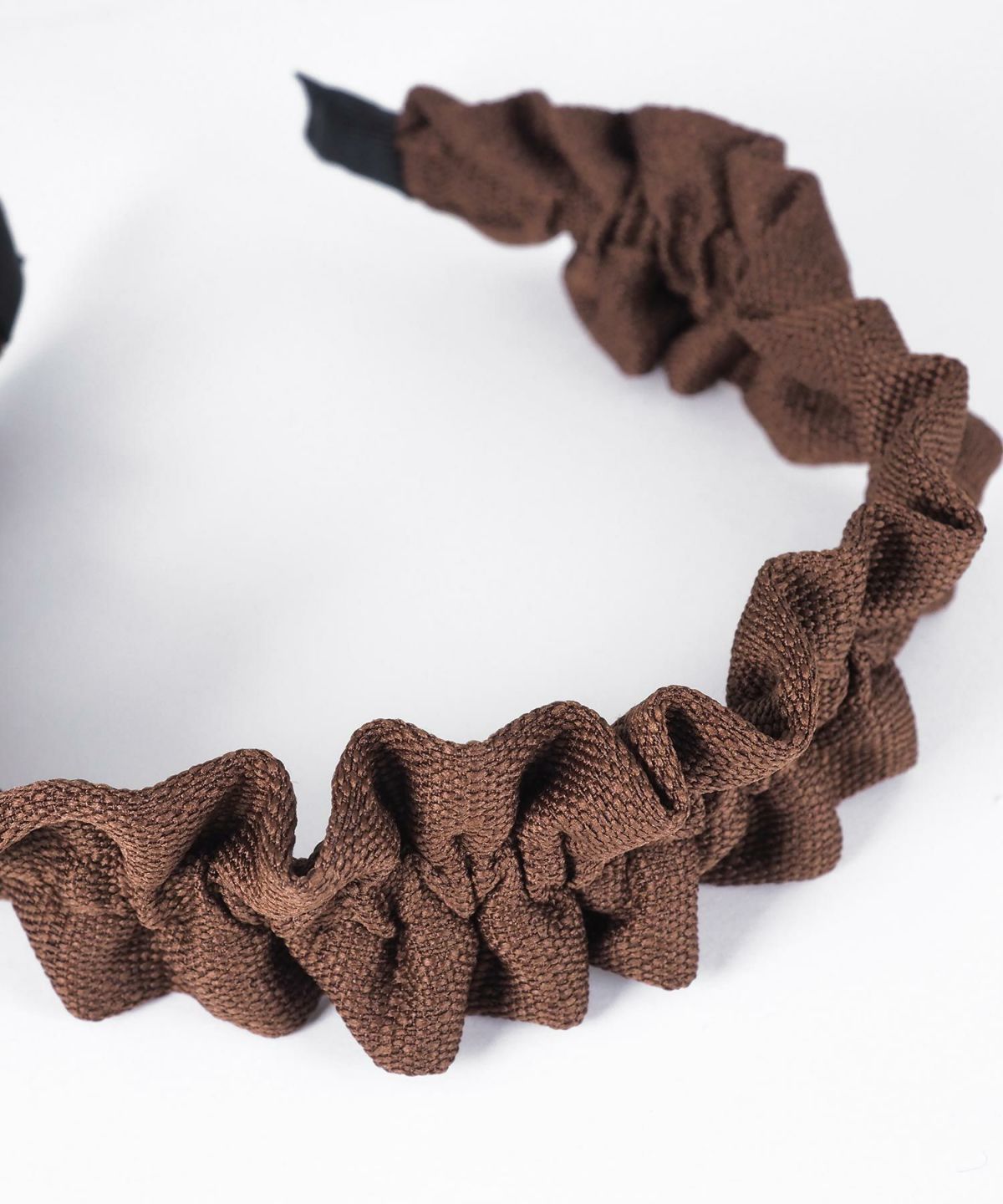 いつものスタイルをアップデートする、カジュアルライクなフリルカチューシャ。 甘さを抑えた素材とカラーリングで、普段使いしやすい大人可愛いデザインです。つけるだけで、手軽に顔周りにトレンドのアクセントをプラス。ヘアアレンジが苦手な方も、これ一つでこなれた旬のスタイルが完成します。