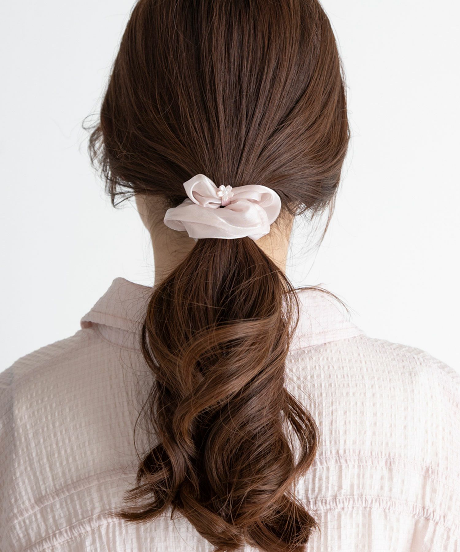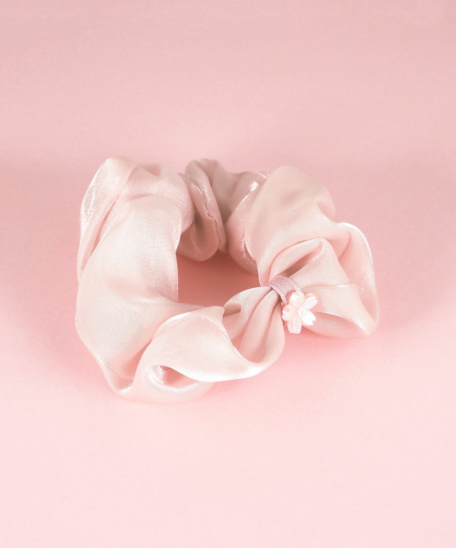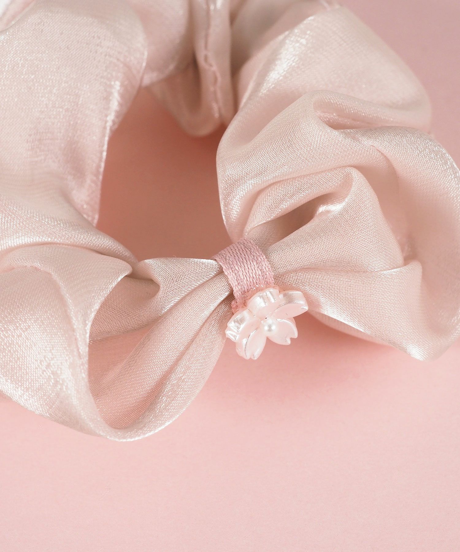 淡い桜色で仕立てた、可憐なミニサイズのシュシュです。小さなシュシュのアクセントとして桜モチーフをあしらいました。控えめながらも上品な華やかさがあり、大人の女性にもぴったり。ハーフアップや編み込みの先、お子様のヘアアレンジなど、幅広い用途でお使いいただけます。