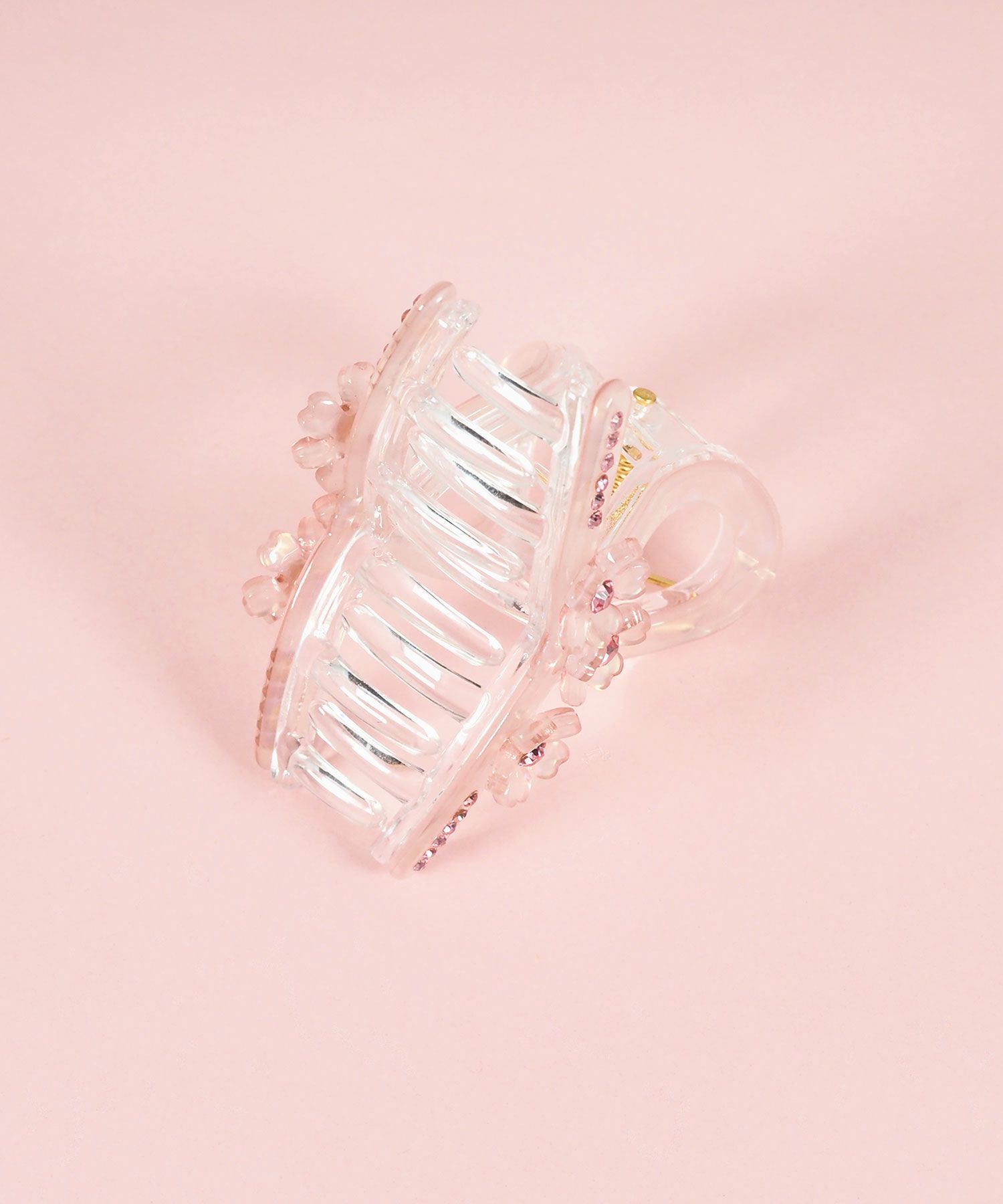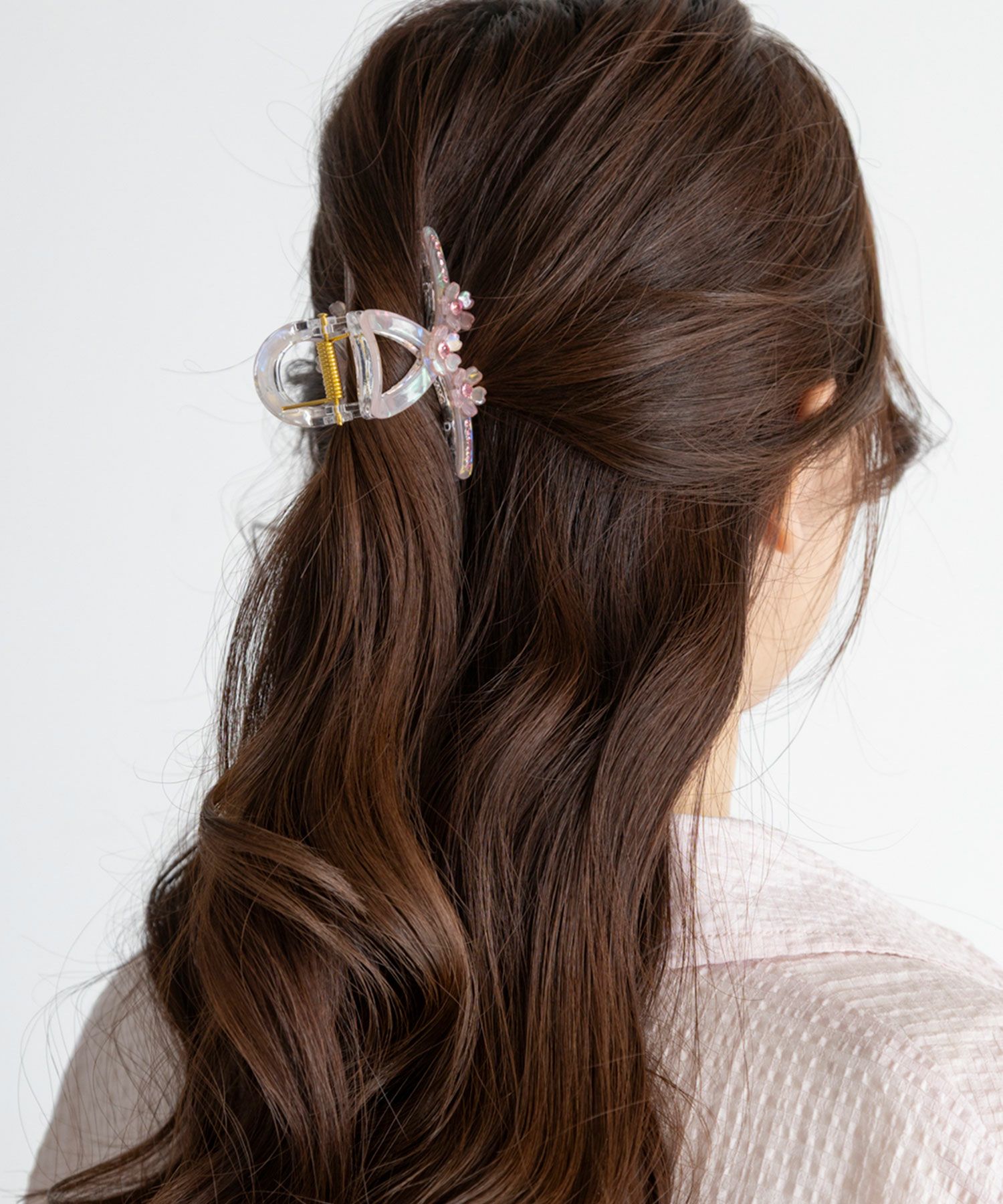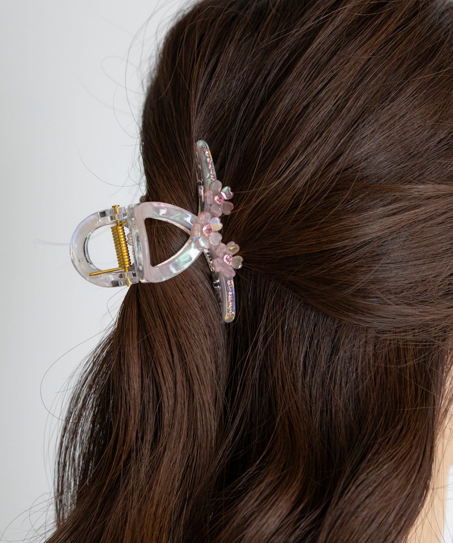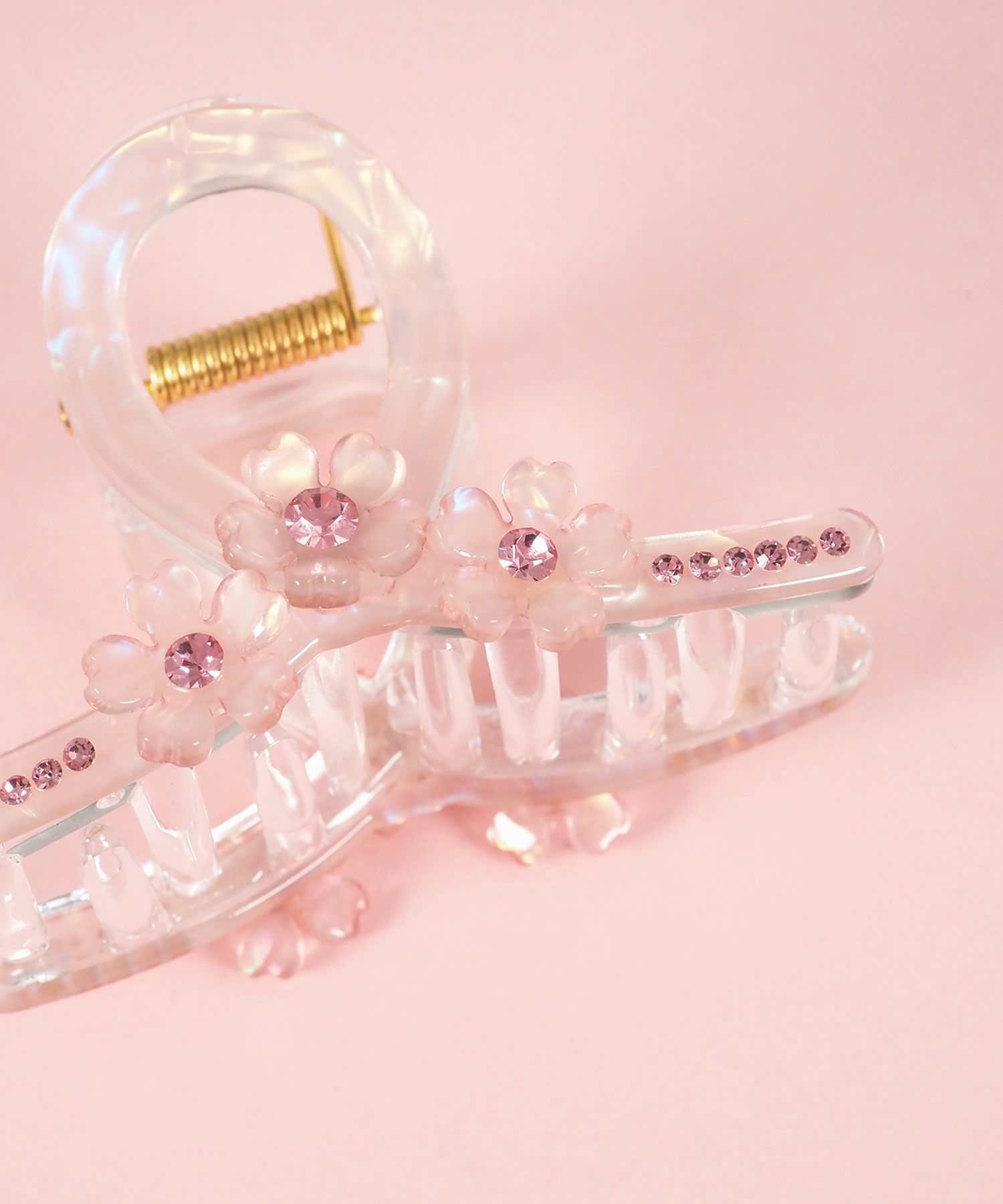 小さな桜を連ねたオーロラデザインがつけるだけで春らしい軽やかな印象を与えます。ミニながらもしっかりと髪を掴む安定感があり、前髪やサイド留めはもちろん、ハーフアップやお団子の根元にも使えます。使い勝手の良さと、繊細な美しさを両立しました。