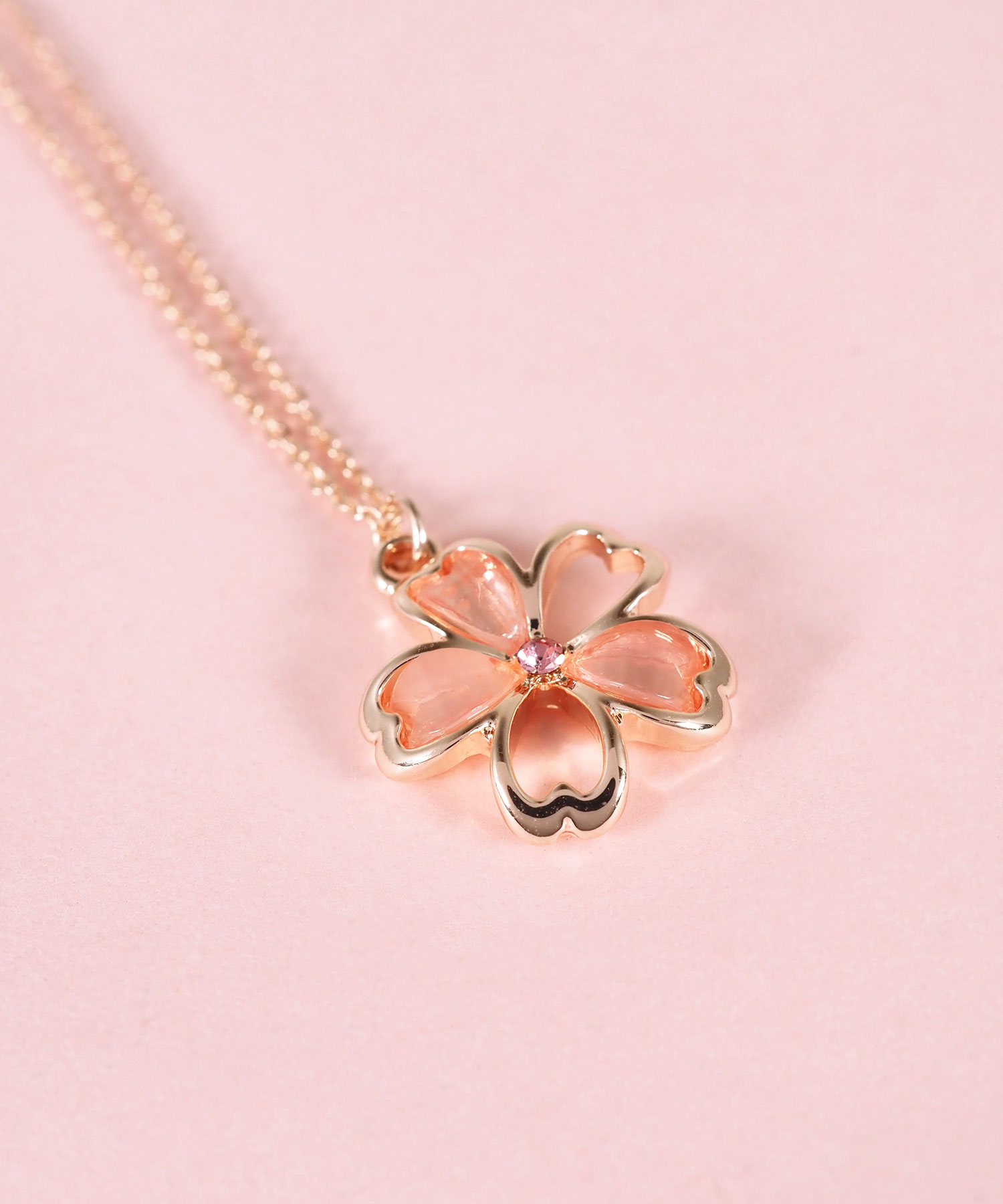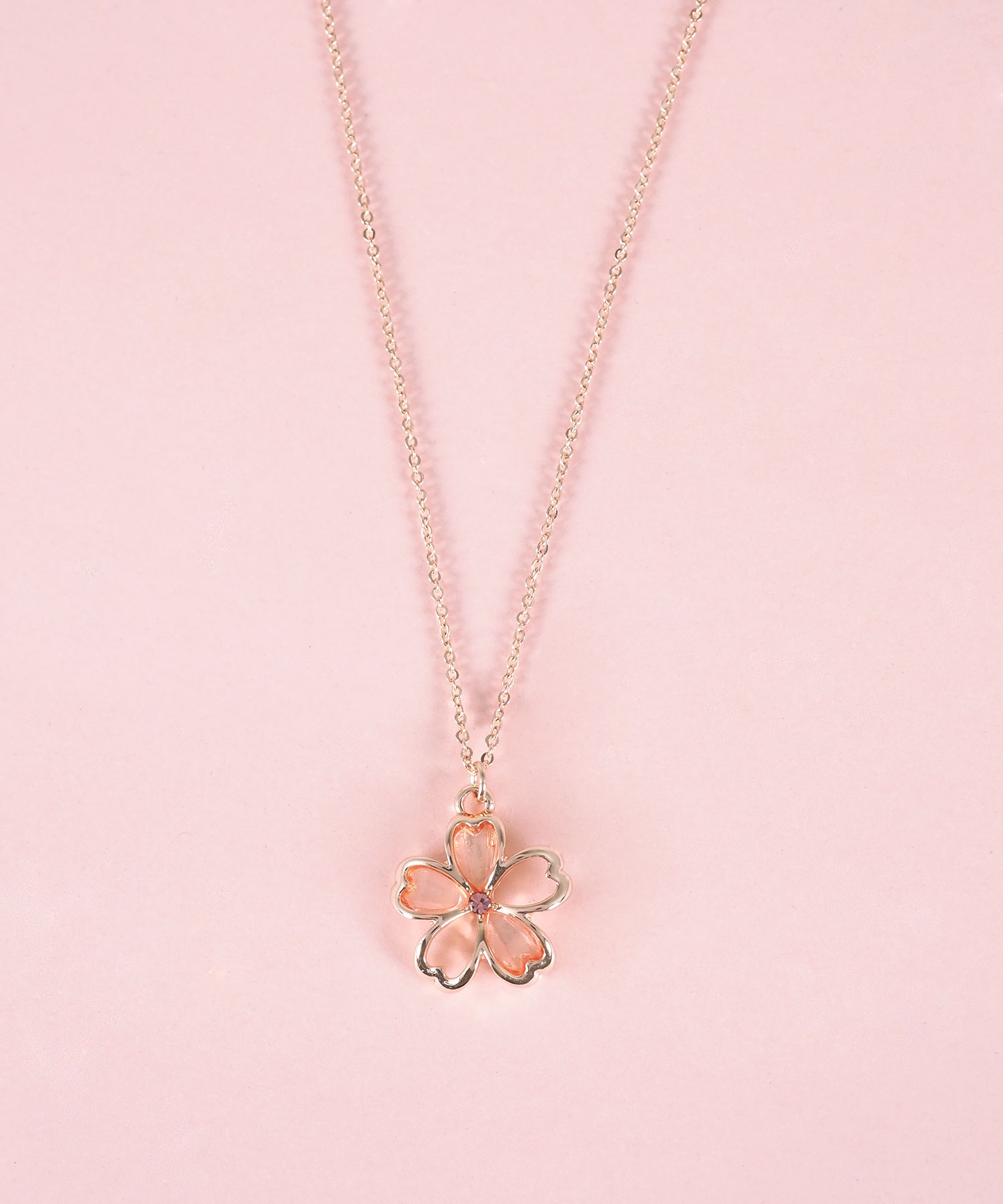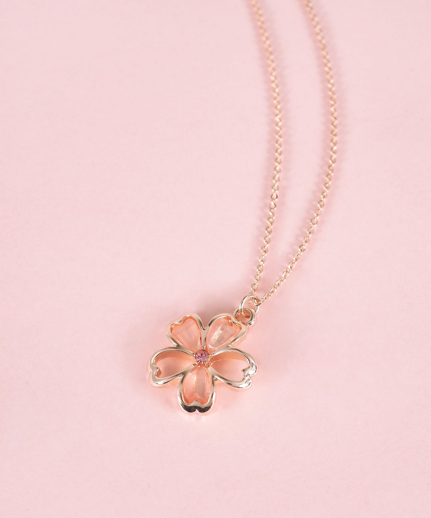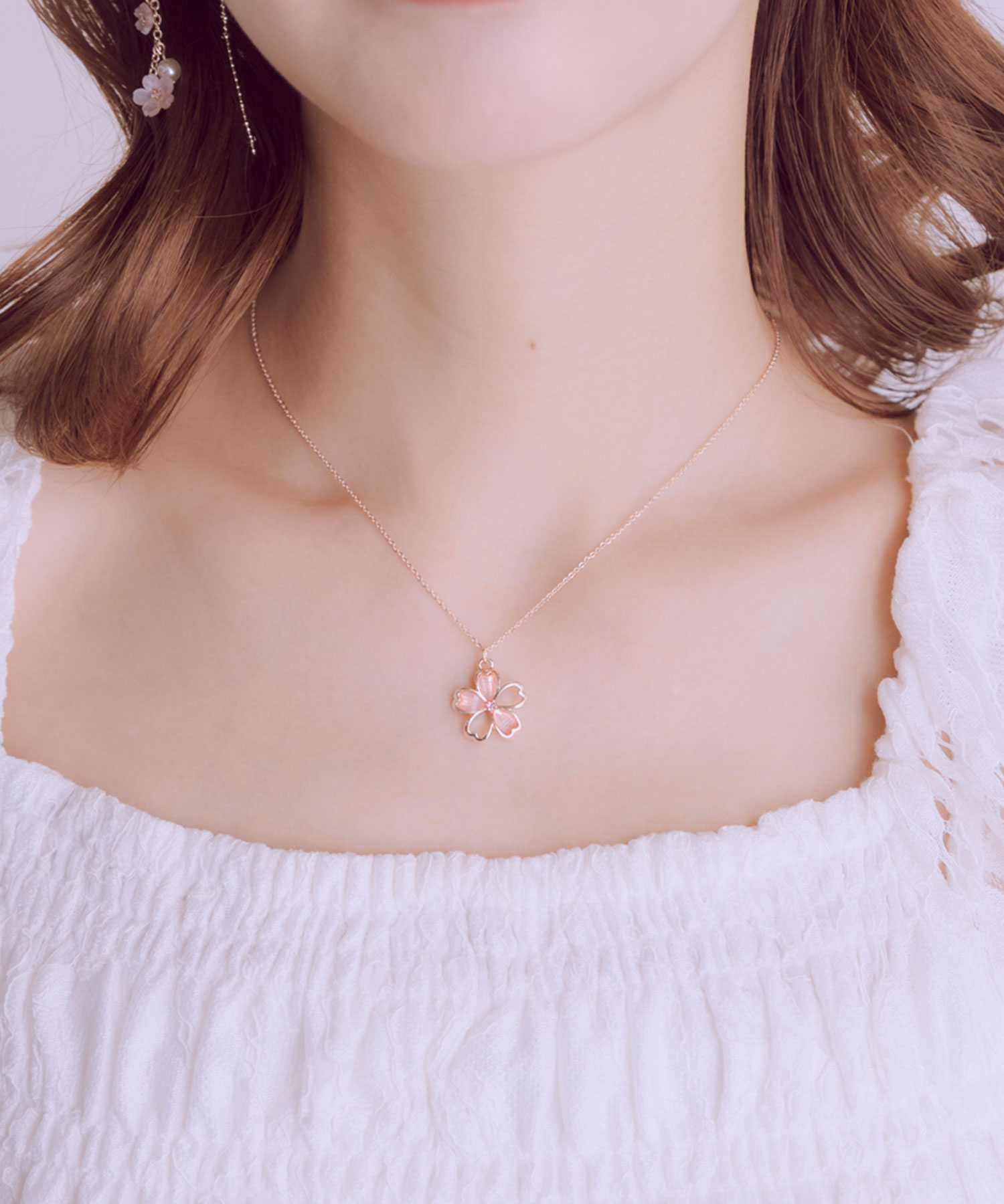 洗練されたメタルラインが描く、淡い桜(さくら)色のトーンが優しげな印象を与えるネックレス。光に透ける数枚の花弁が春らしい軽やかさとメタルの光沢が胸元を凛と上品に彩ります。卒業・入学・お花見など、春の特別な日はもちろん、日常の装いに可憐な季節感を添えます。