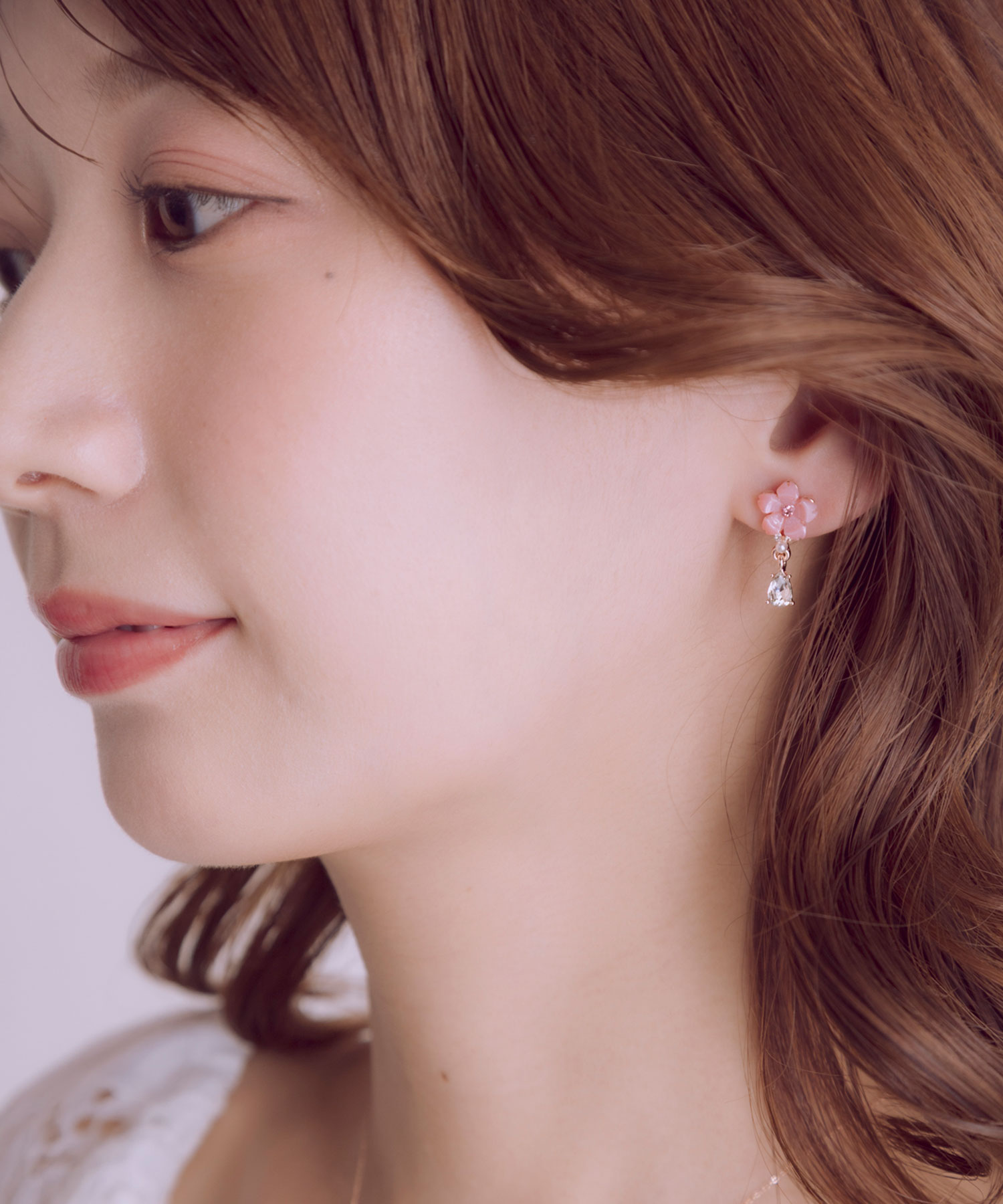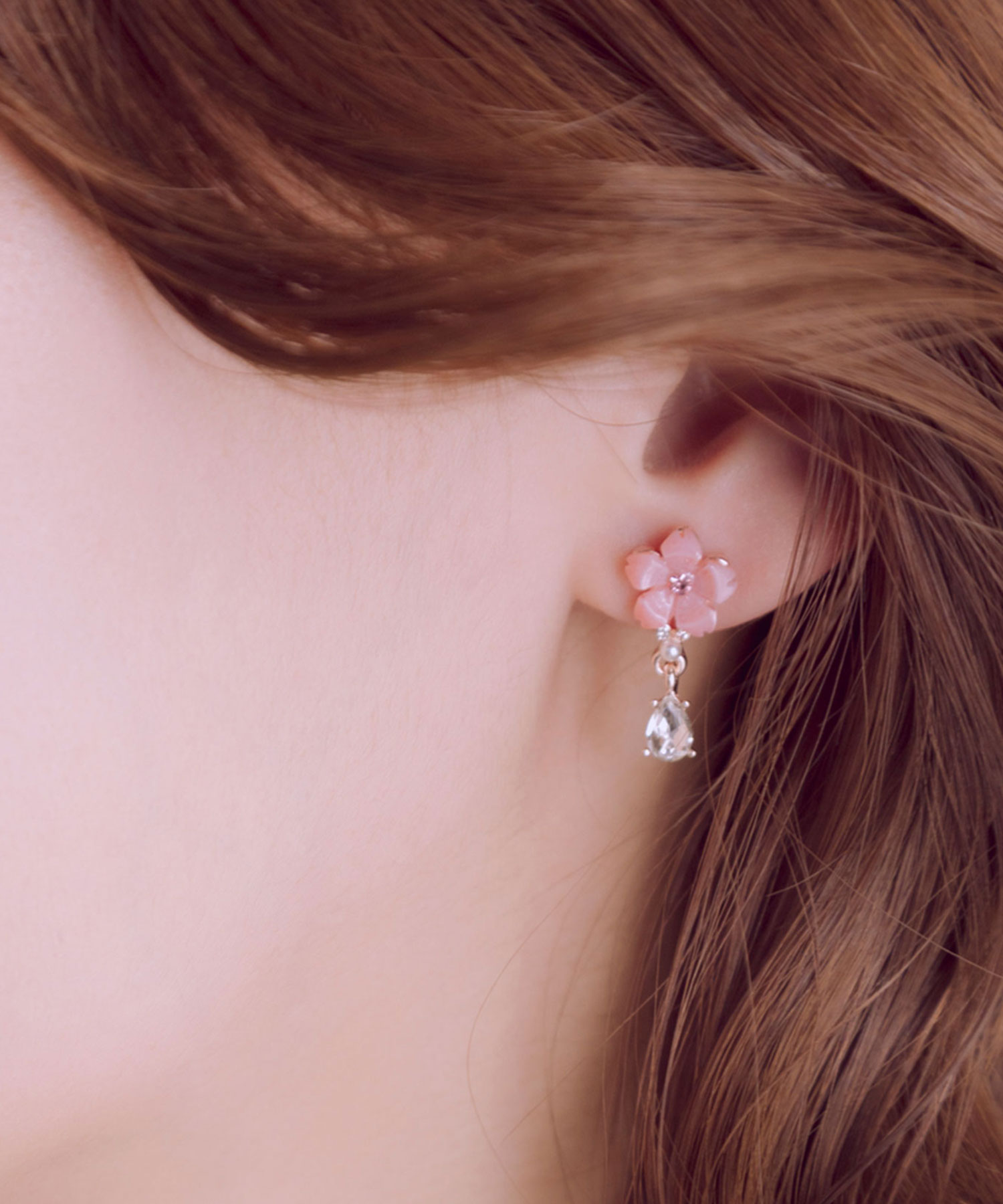 柔らかなピンクの桜(さくら)に、パールとドロップビジューを添えたピアスです。桜(さくら)からしずくが零れ落ちるように垂れ下がったデザインが耳元で揺れるたびに光を集め、お顔周りをパッと明るく見せてくれます。春の訪れと華やかさを添える、特別な日の装いにも日常使いにもぴったりのアイテムです。ペアピアス(両耳用)です。