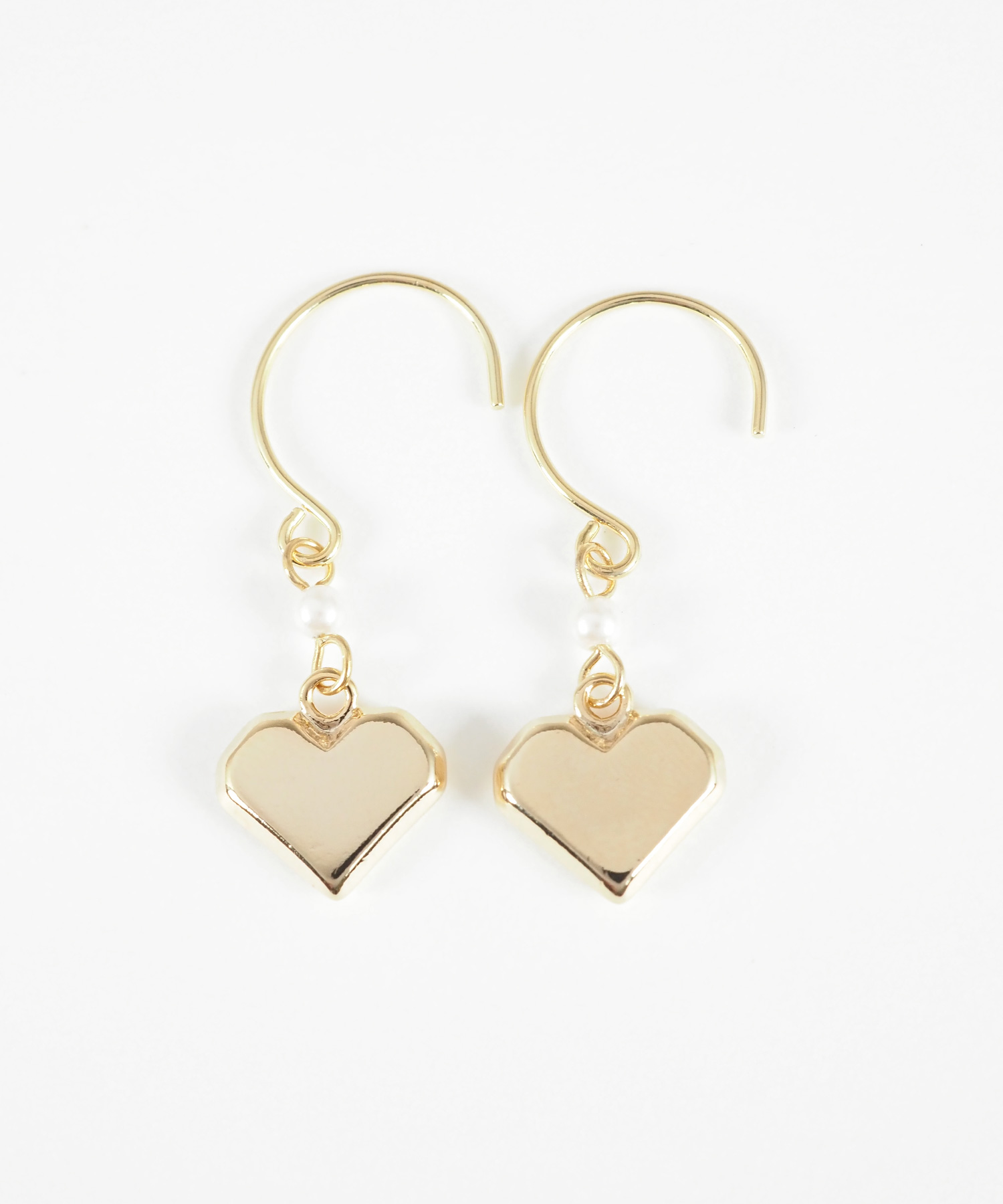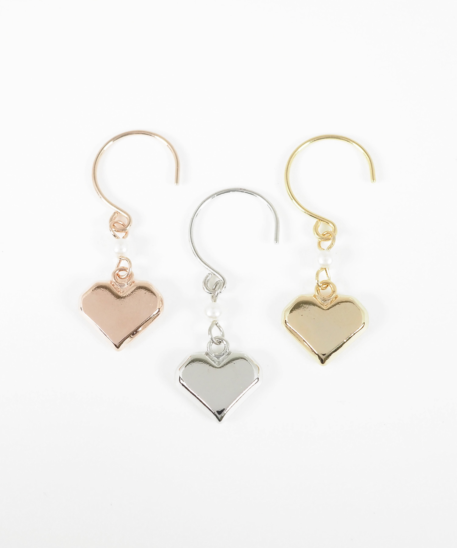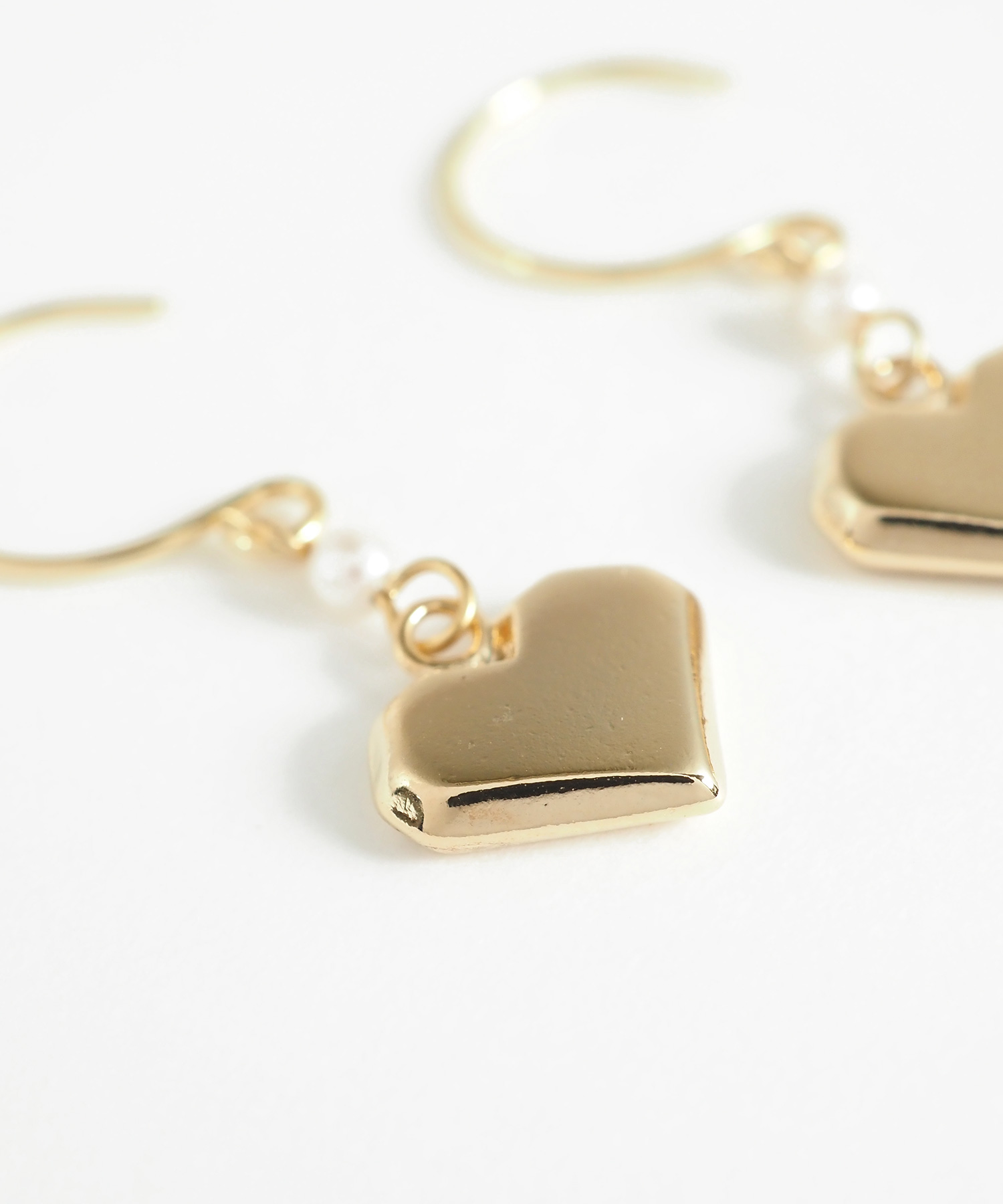 ほどよいボリューム感のメタルハートが耳元で軽やかに揺れるフックピアス。 甘くなりがちなハートモチーフをエッジを効かせたメタル素材と上品なパールパーツで、女性らしさを引き出しました。オンオフ問わず日常に寄り添い、さりげない揺れ感で大人の可愛らしさを引き立ててくれるアイテムです。ペアピアス(両耳用)です。