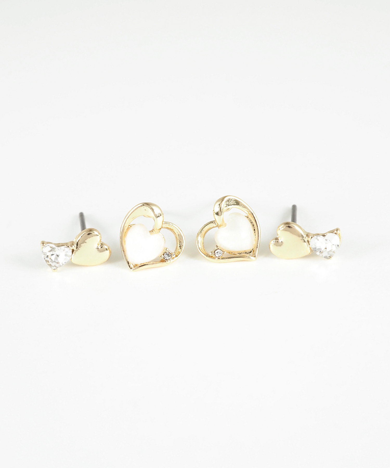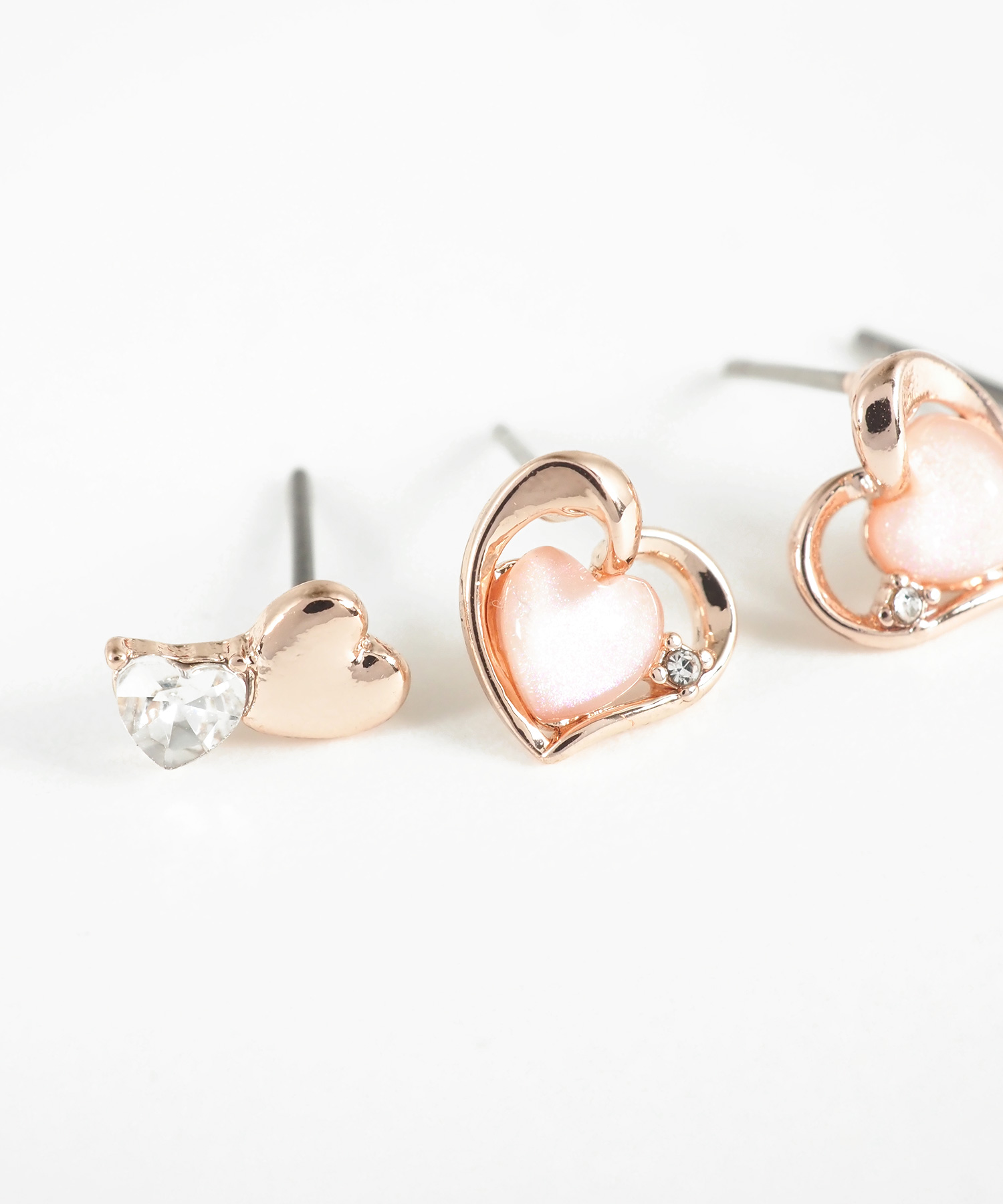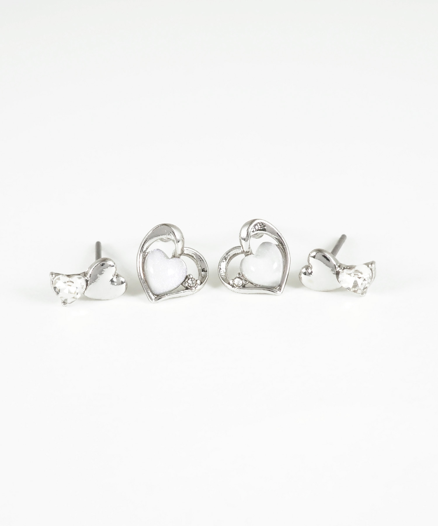 繊細なラメを閉じ込めたぷっくりハートと小さなビジューが光るオープンハートの4点セットピアス。柔らかな曲線を描くフレームが女性らしさを引き立て、耳元に上品な甘さを添えます。その日の気分で組み合わせを楽しめるのが嬉しいポイント。ペアピアス(両耳用)です。