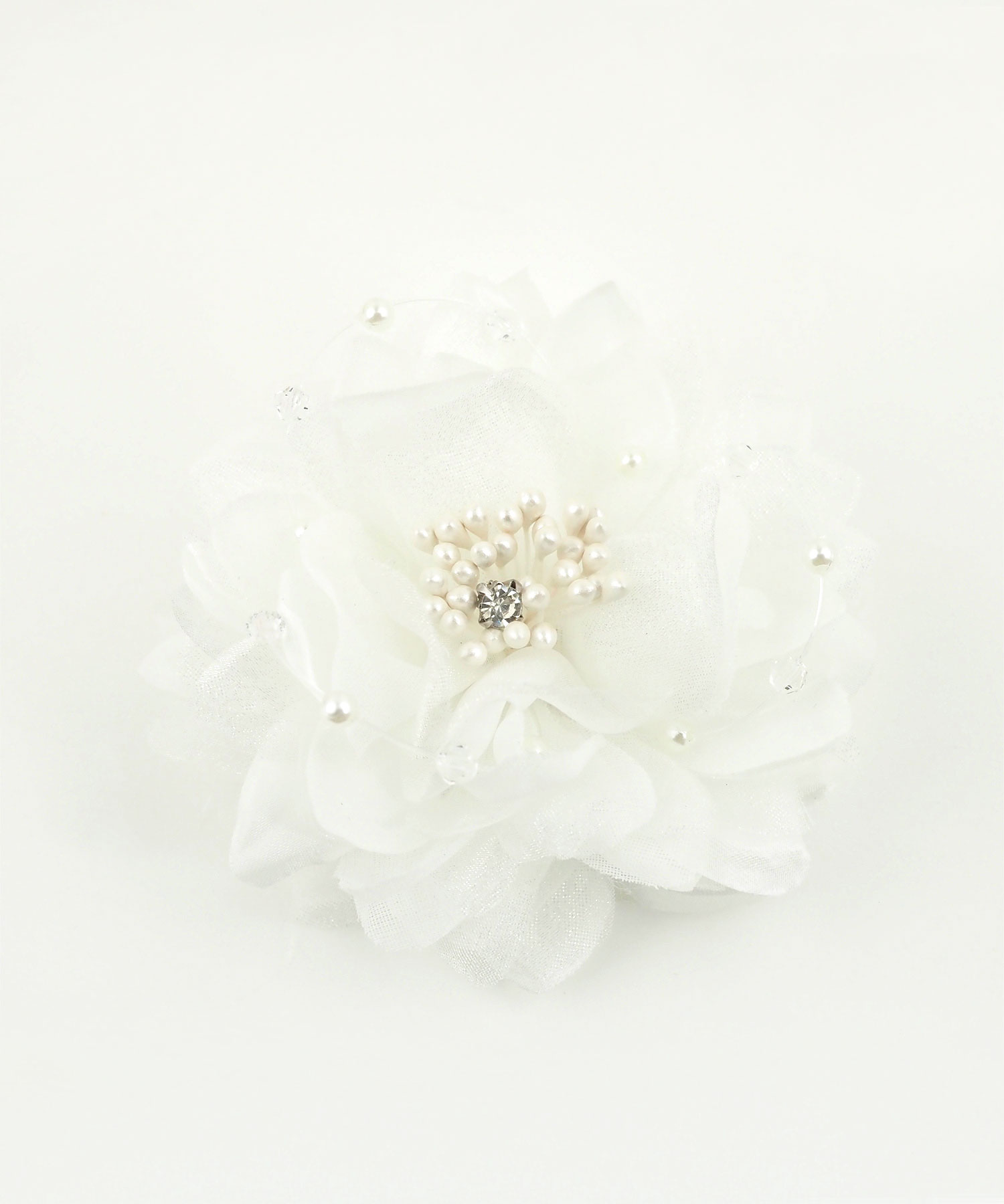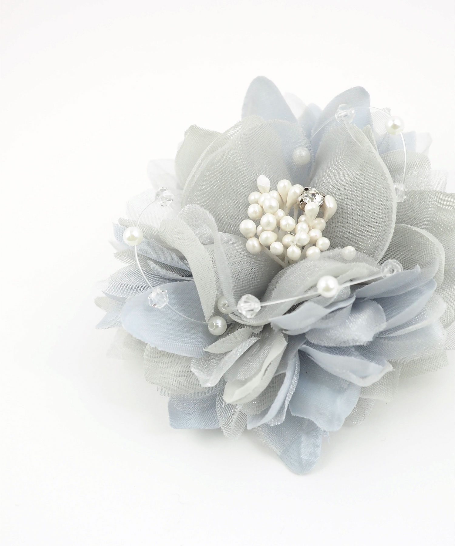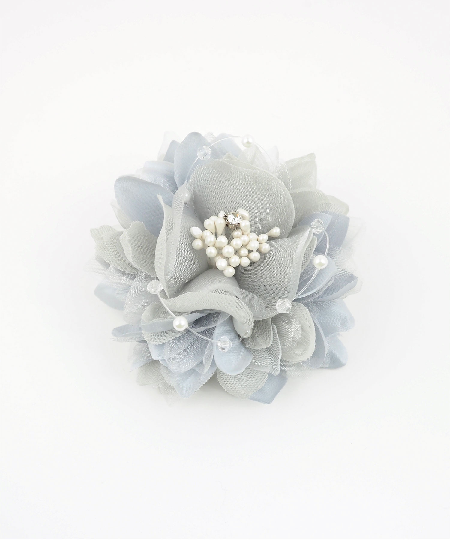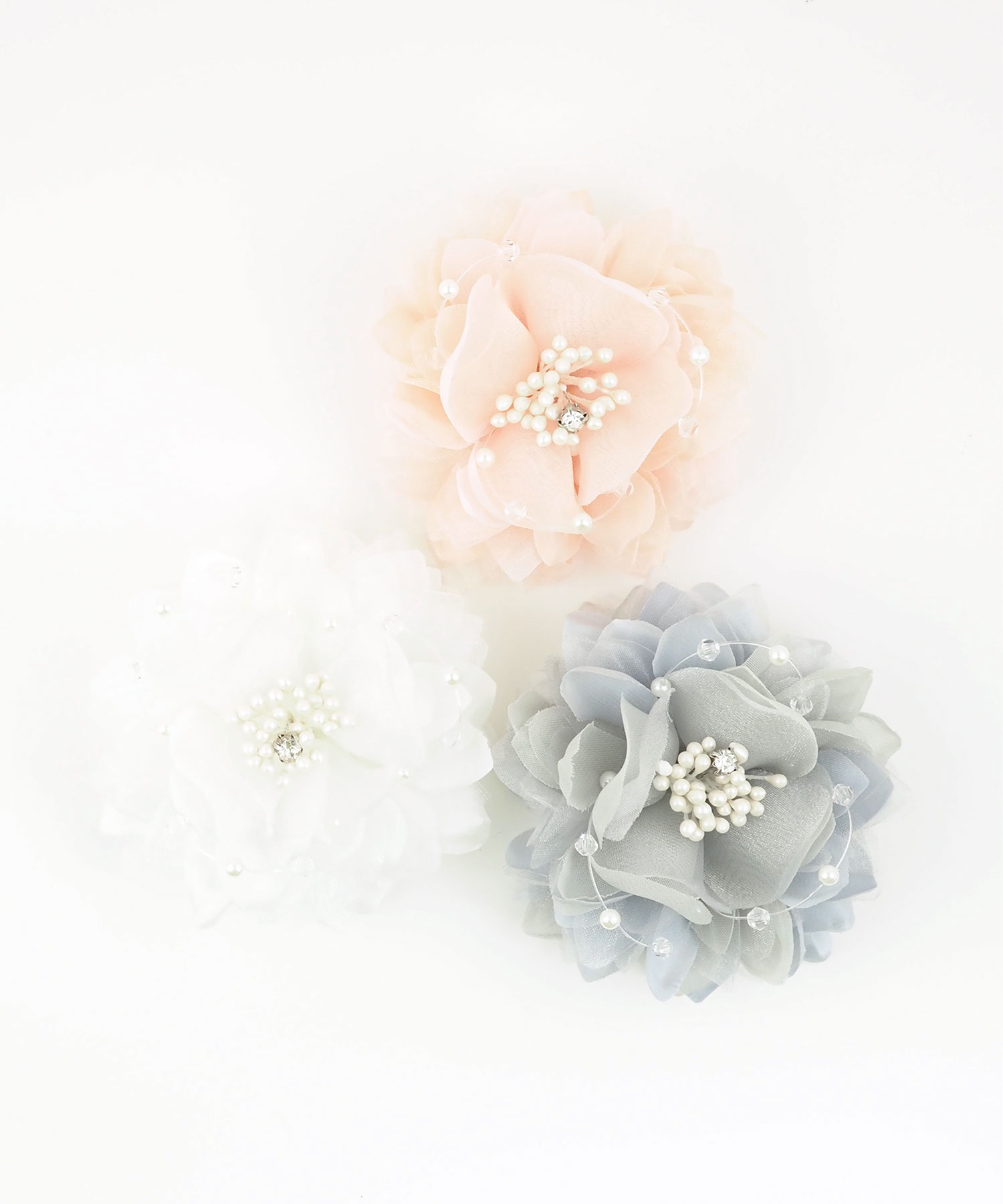 ふんわりと幾重にも重なる花びらが、装いに軽やかな立体感を添えるフラワーコサージュ。繊細なクリアビーズが光をまとい、お顔周りをより一層明るく、透明感のある印象に仕上げてくれます。優しい色合いのカラー展開で、ジャケットに合わせるだけで春の柔らかな空気を演出してくれます。安全ピンとクリップの2way使用です。