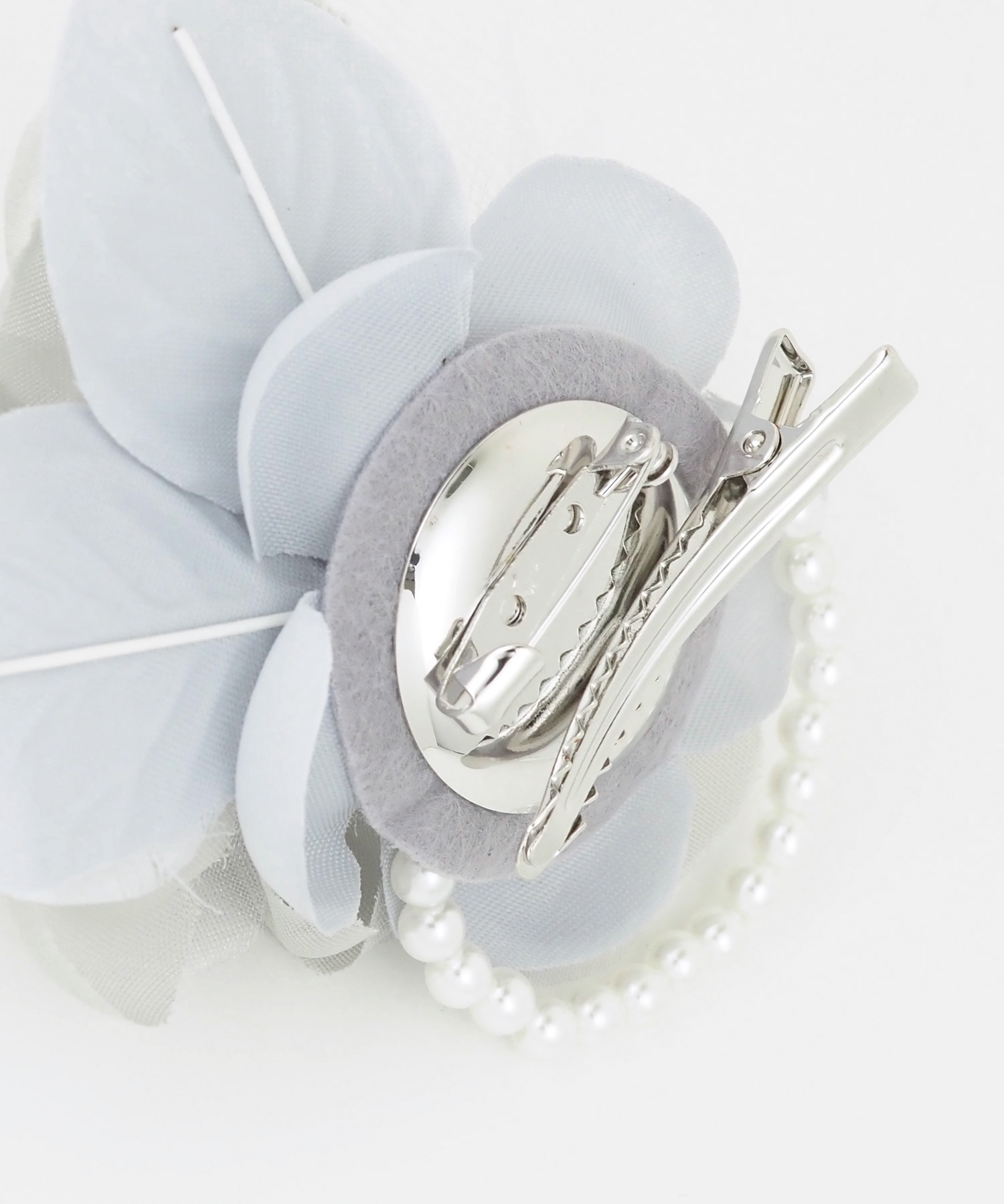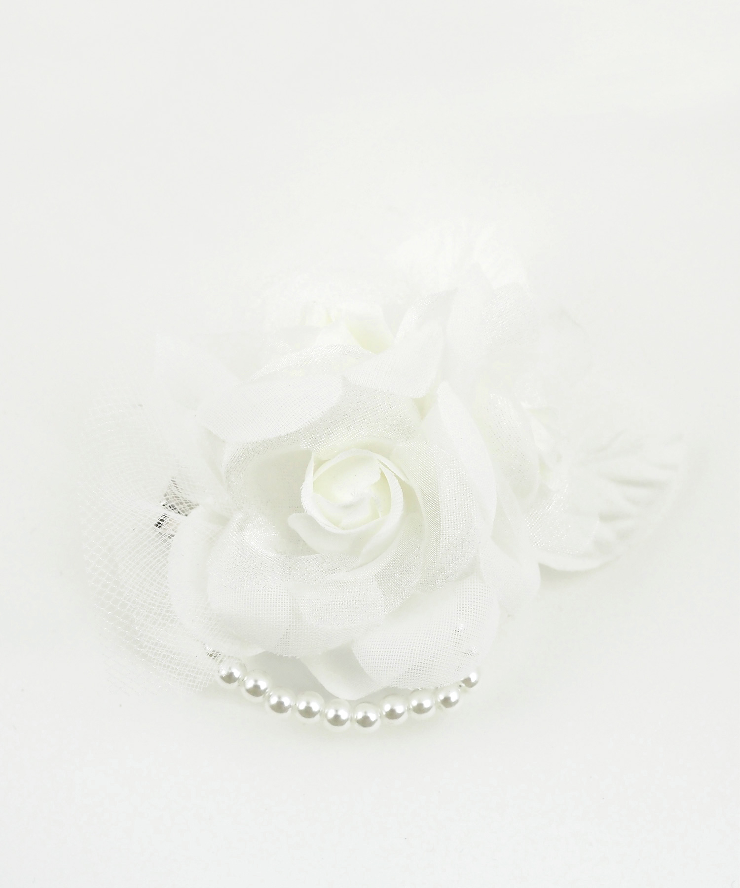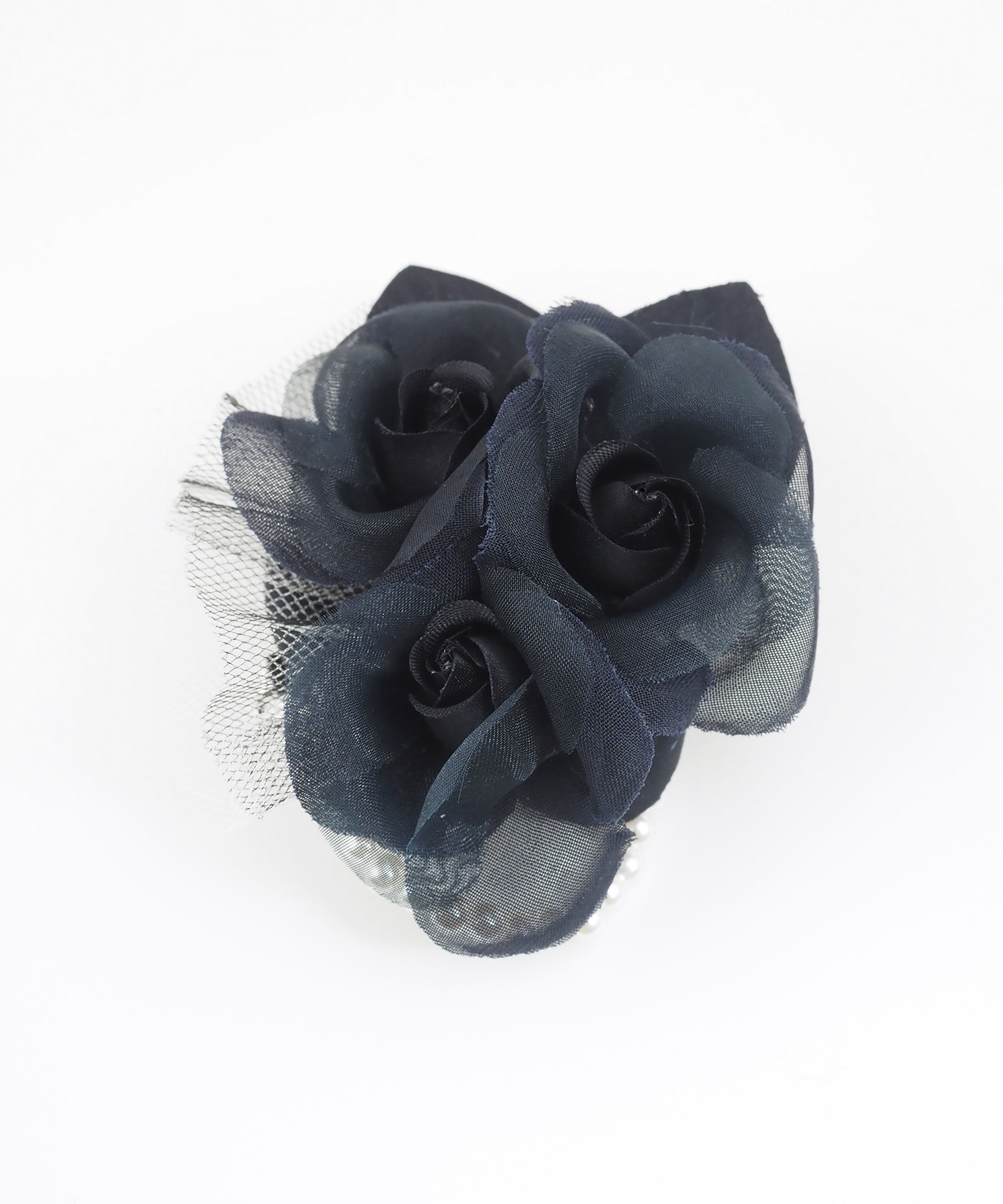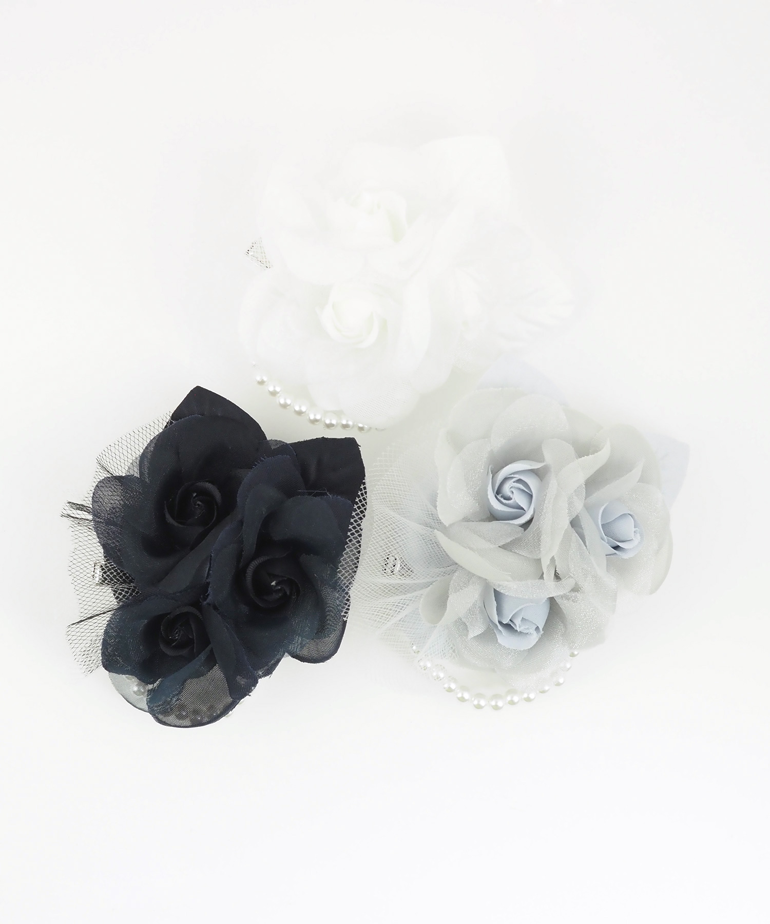 柔らかな布素材を幾重にも重ねた3輪ローズコサージュ。光の当たり方によって様々な表情を見せてくれます。質感の異なる素材を組み合わせることで、ワントーンながらも立体感と深みのあるデザインに。足元に添えられたパールのラインが、お顔周りを華やかに演出します。安全ピンとクリップの2way使用です。
