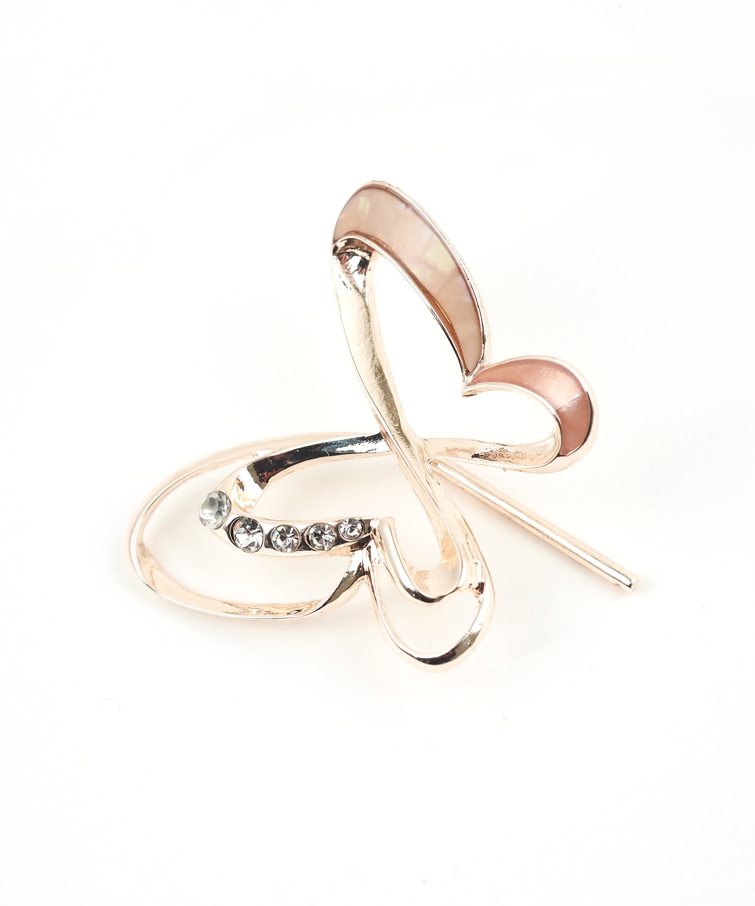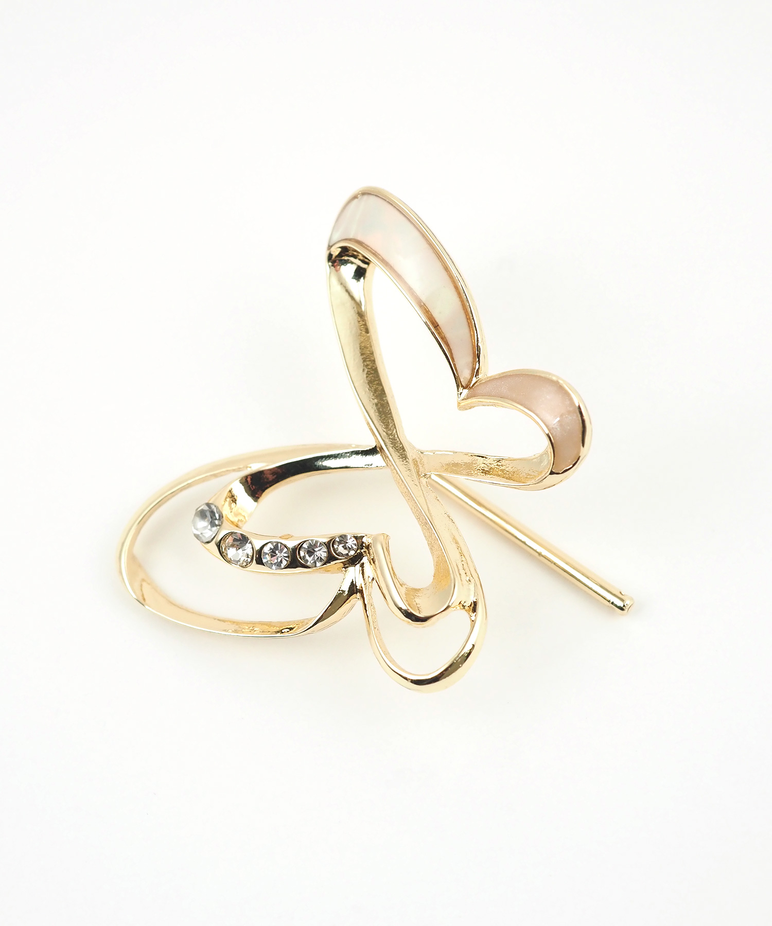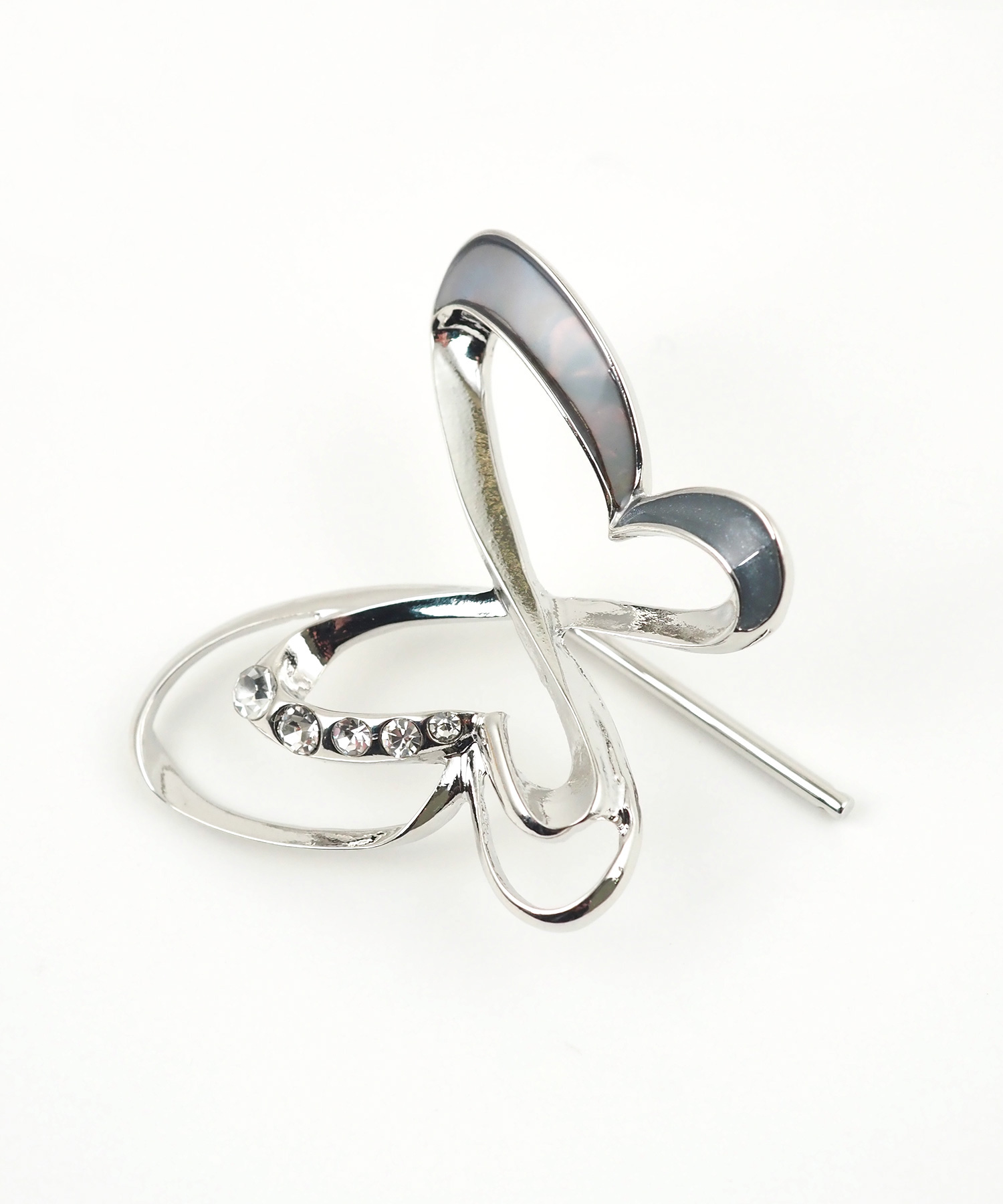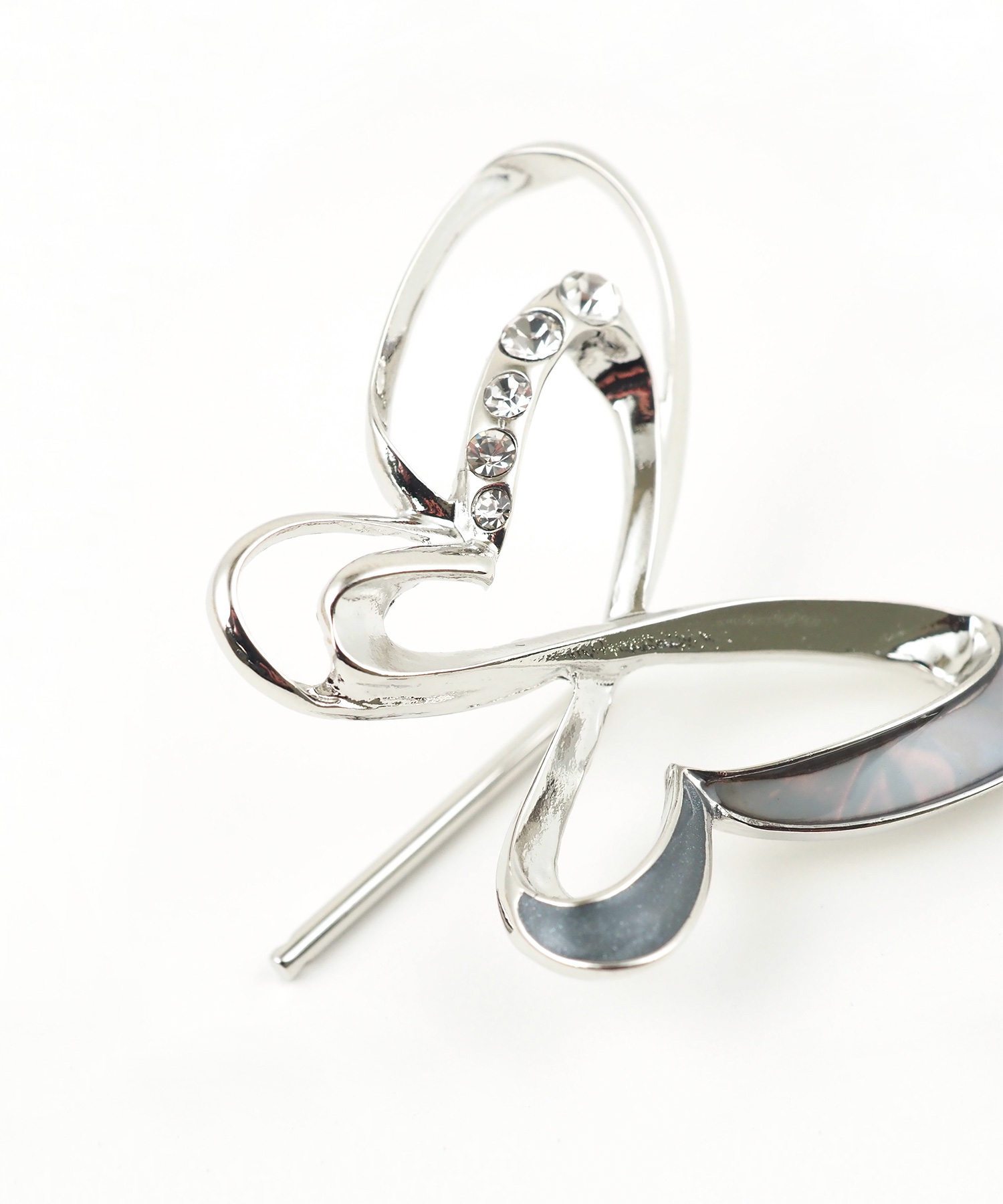 結び目に差し込むだけで、いつものまとめ髪がパッと華やぐポニーフック。 羽を広げた蝶のモチーフは、透かしの効いた立体的なデザイン。さりげなく配置されたビジューが、光を受けるたびにキラキラと輝きます。