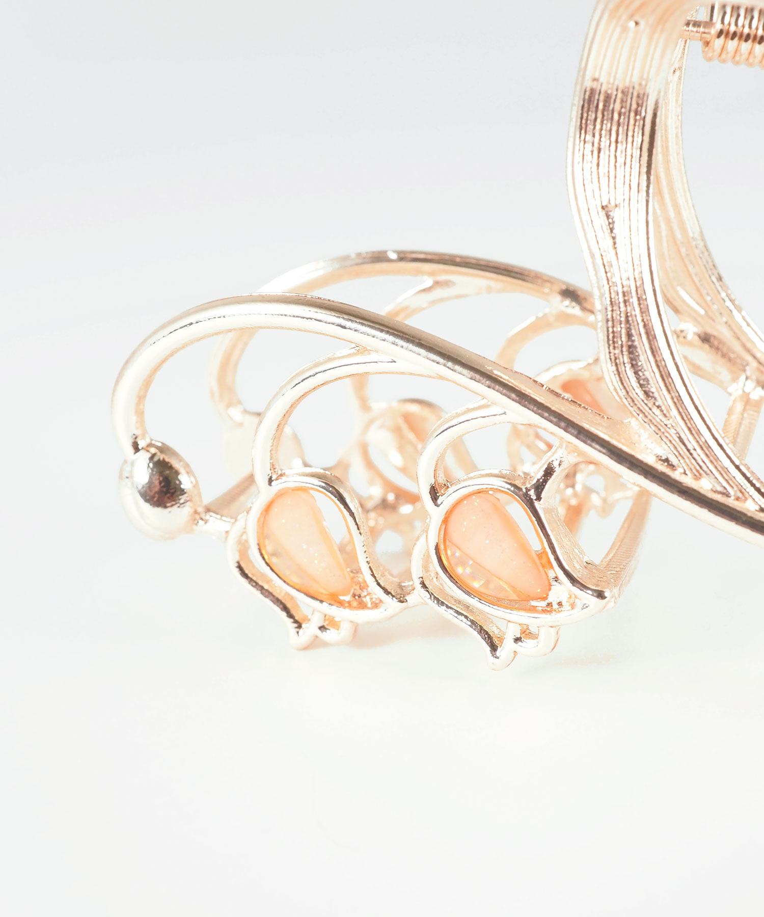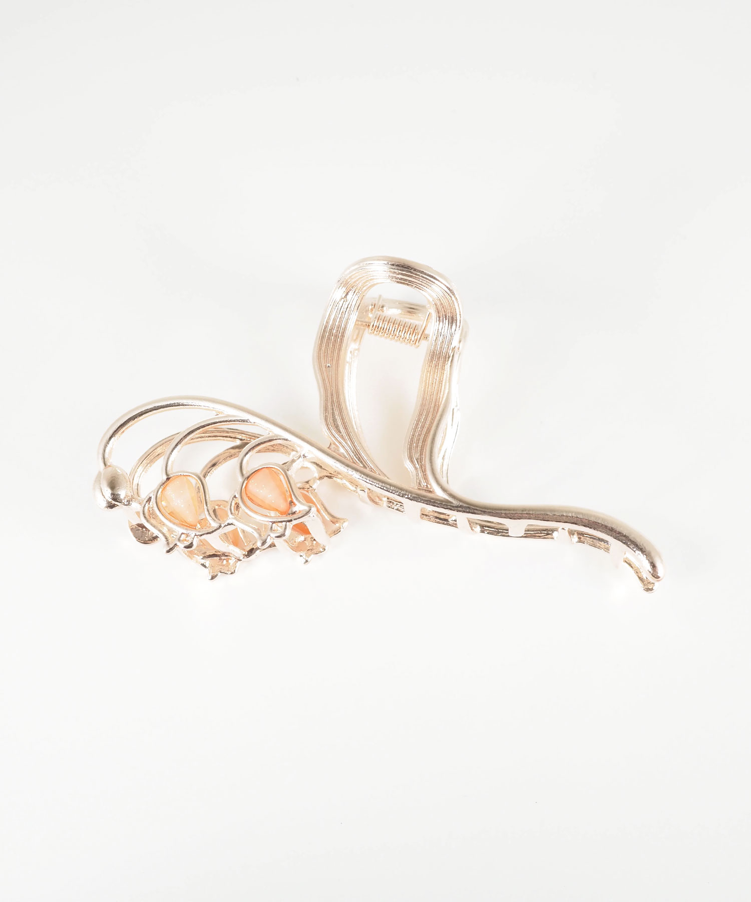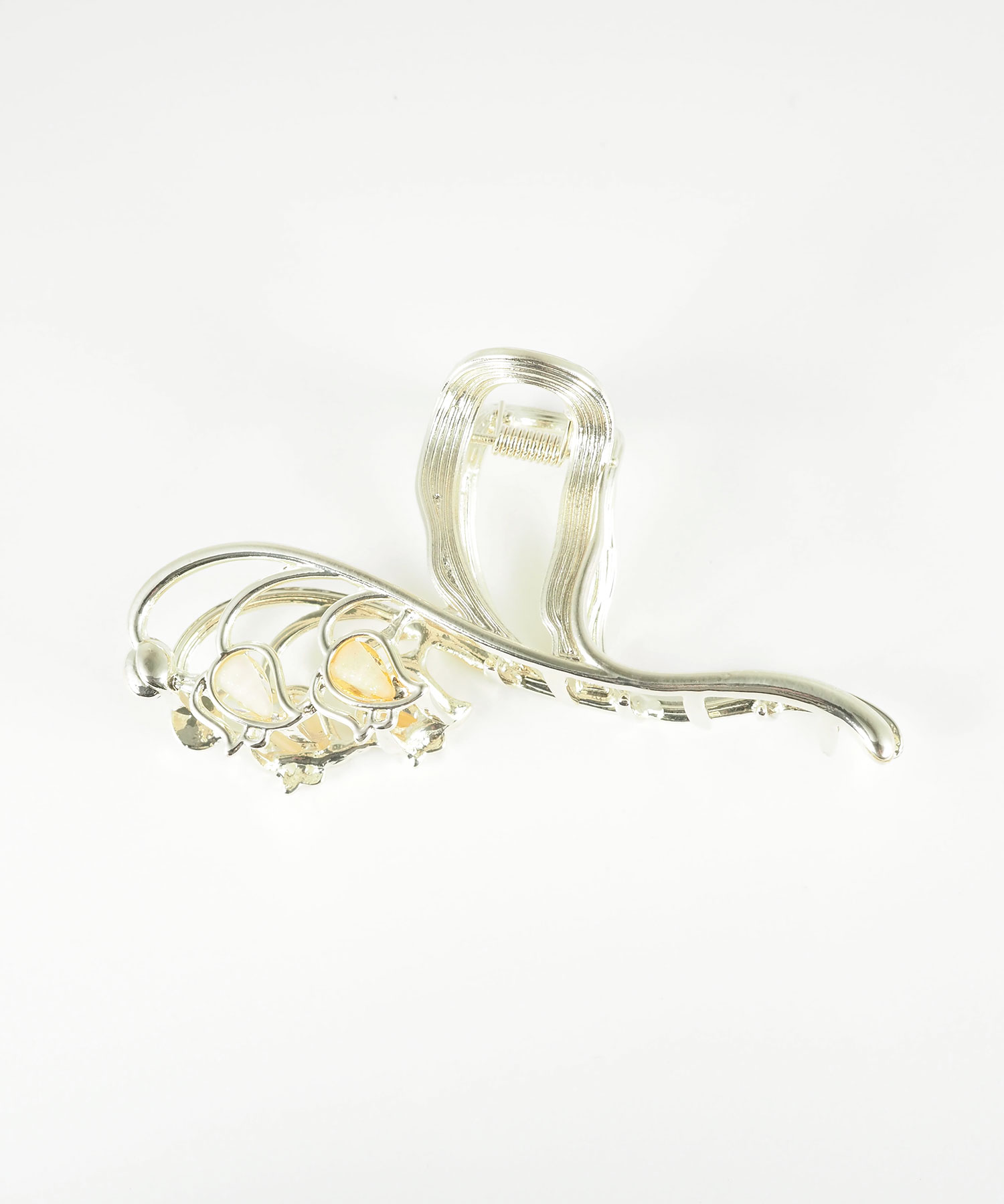ふわりと花ひらくスズランをモチーフにした、大人フェミニンなバンスクリップ。 艶やかなメタルラインとほんのり透ける花びらの質感が、バックスタイルを上品で優雅な印象に。しっかり留まるホールド力で、忙しい朝もサッと挟むだけでお洒落なまとめ髪が完成します。