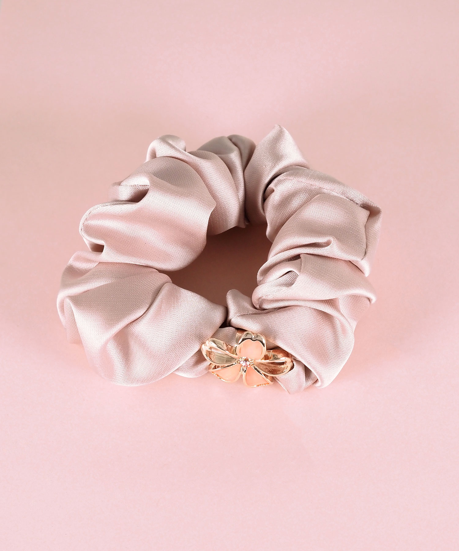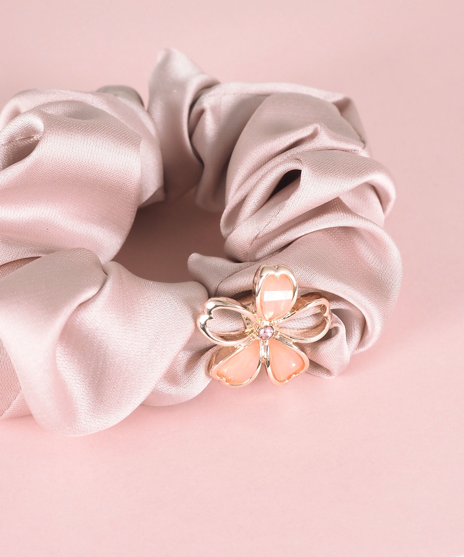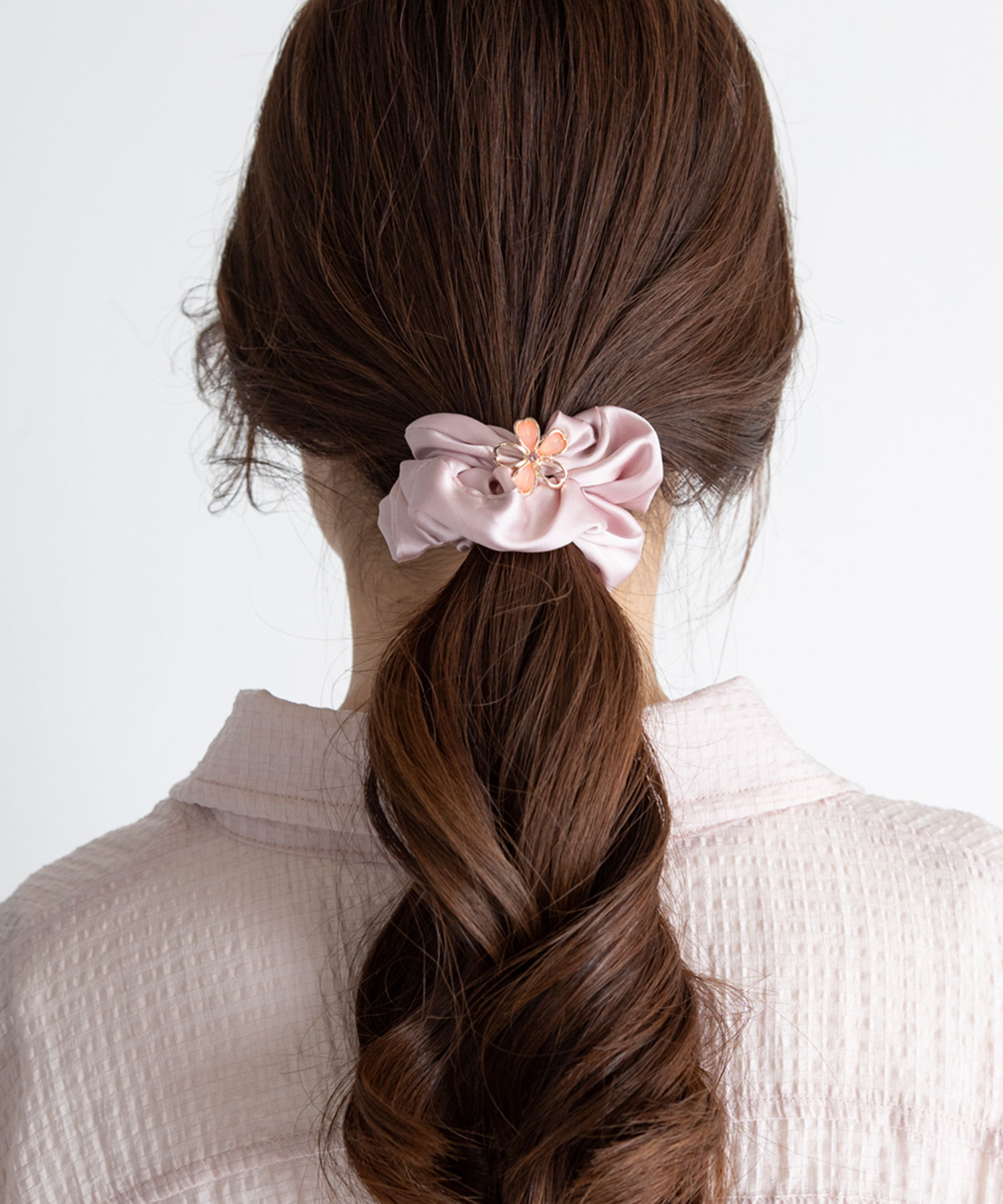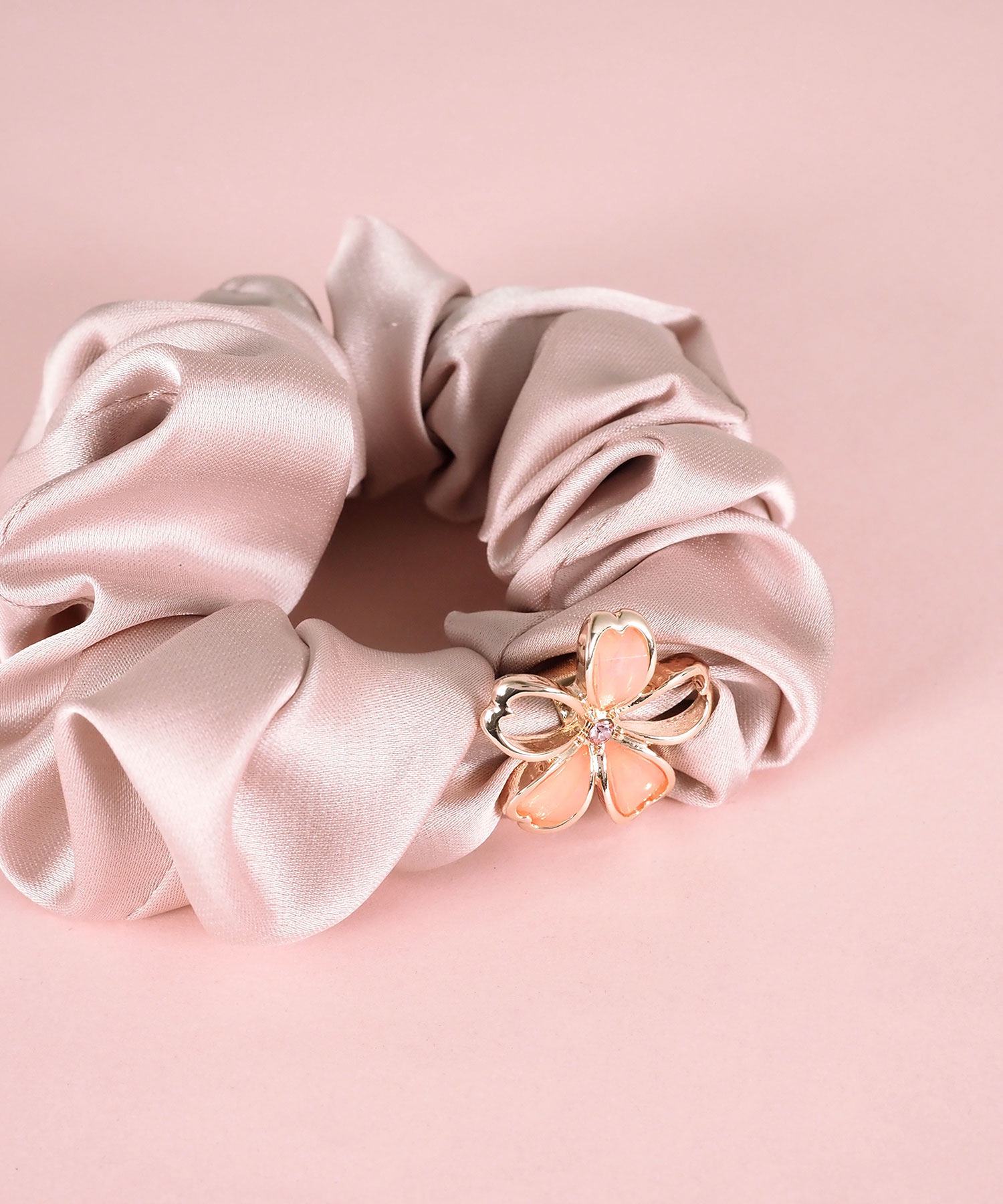 甘さを抑えたくすみカラーに桜(さくら)チャームを添えた桜(さくら)シュシュ。控えめなニュアンスカラーに繊細された桜(さくら)チャームが上品なワンポイントを添えます。さっと髪をまとめるだけで、忙しい朝も一瞬で心ときめく春の装いに格上げしてくれます。