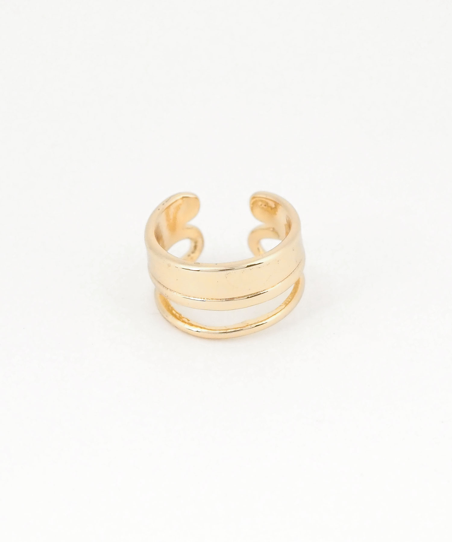太いラインと、繊細な細いラインが重なる、一つ着けるだけでレイヤードスタイルが完成するイヤーカフ。どんなスタイルにも合わせやすく、お手持ちのピアスやイヤリングとの重ね付けもおすすめ。日常のオシャレをさりげなくランクアップさせてくれる、頼れる一点です。ピアスの穴の有無に関わらず楽しめ、コーデ不要でおしゃれが叶います。片耳用です。