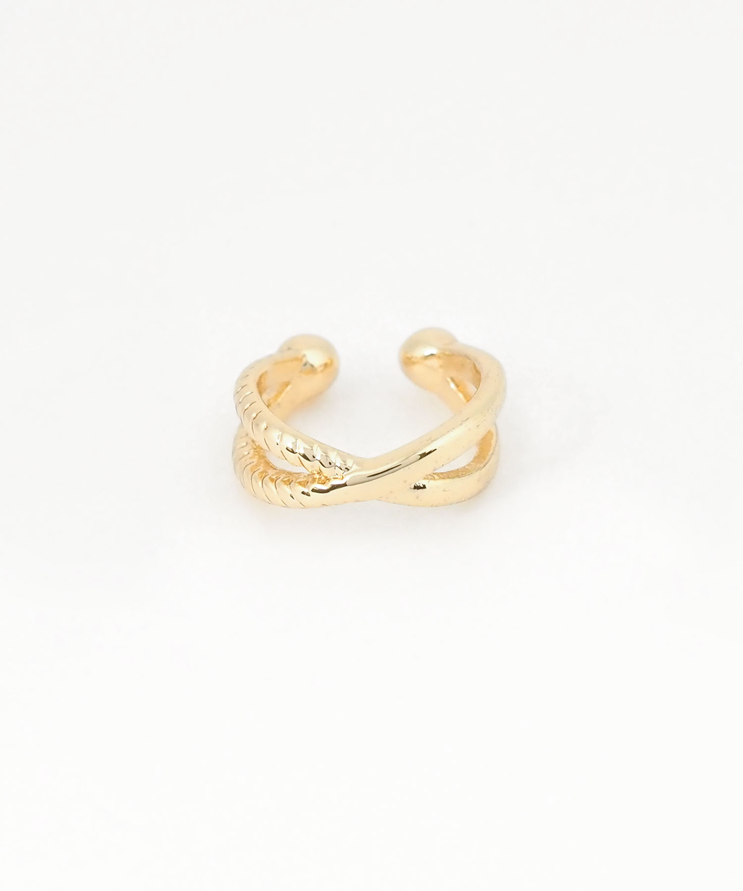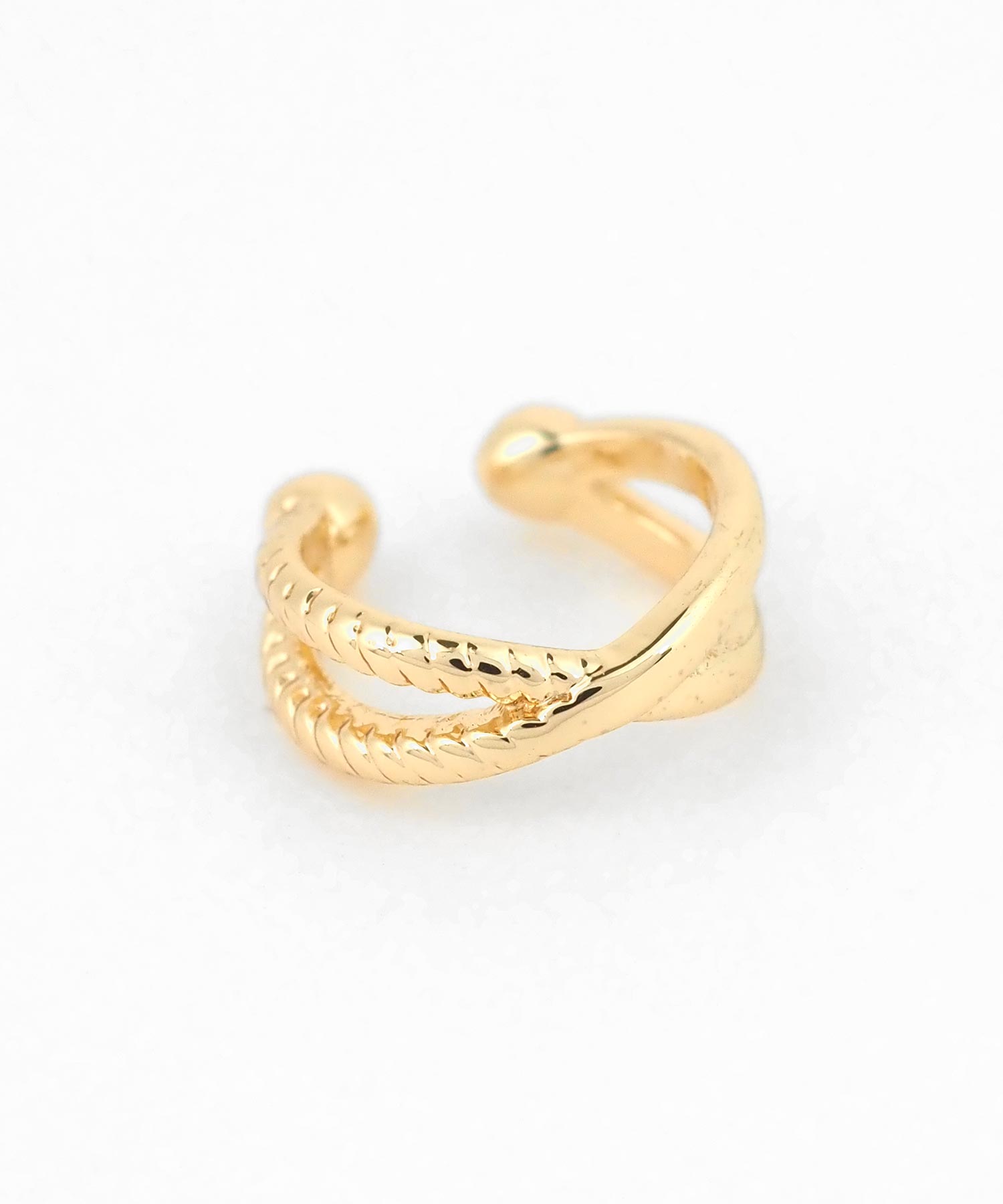 2本のラインがしなやかに交差する、ミニマルなデザインのイヤーカフ。どんなスタイルにも合わせやすく、お手持ちのピアスやイヤリングとの重ね付けもおすすめ。日常のオシャレをさりげなくランクアップさせてくれる、頼れる一点です。ピアスの穴の有無に関わらず楽しめ、コーデ不要でおしゃれが叶います。片耳用です。
