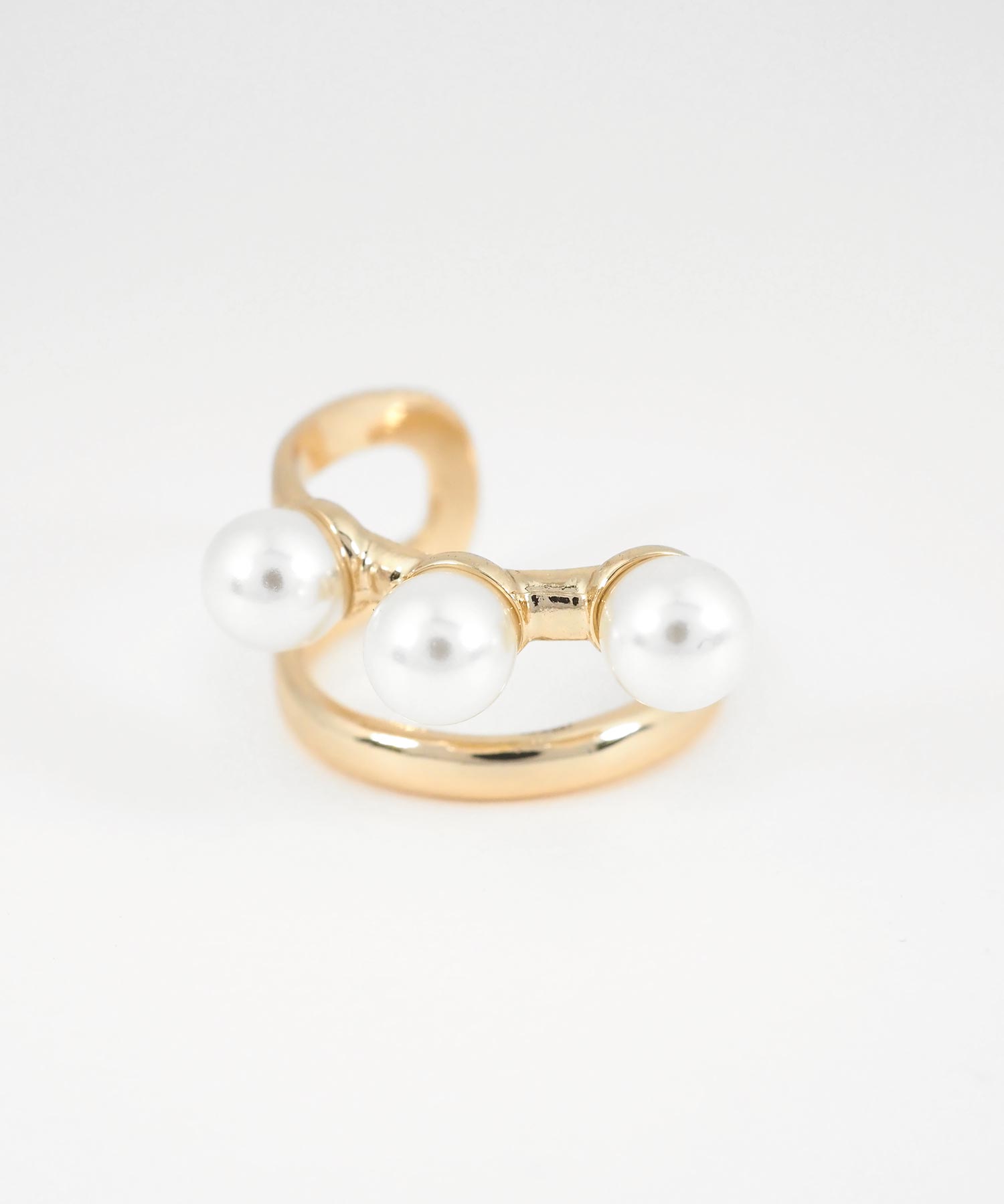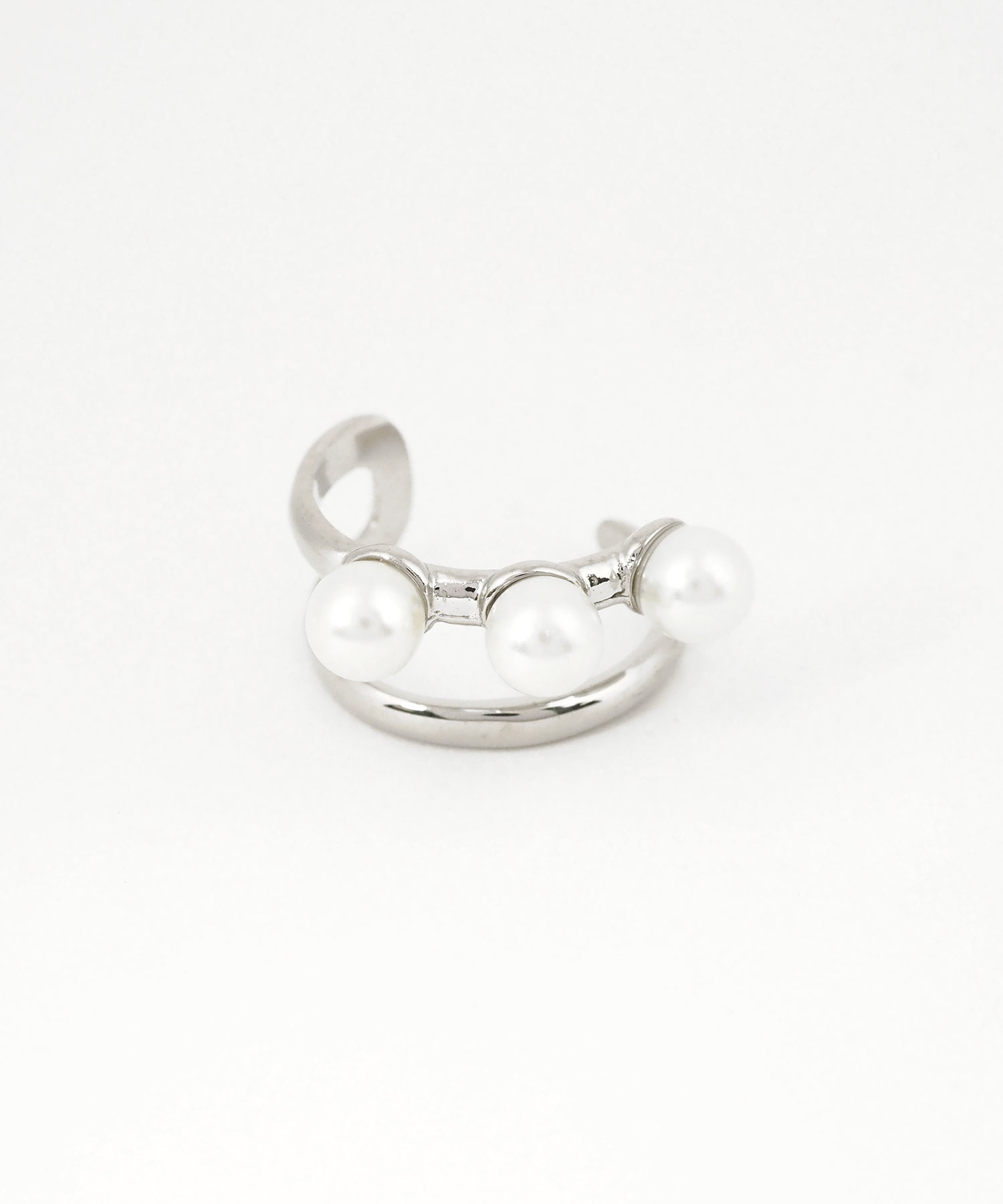艶やかなパールを3つ贅沢にあしらった、存在感のある大きめサイズのイヤーカフ。どんなスタイルにも合わせやすく、お手持ちのピアスやイヤリングとの重ね付けもおすすめ。日常のオシャレをさりげなくランクアップさせてくれる、頼れる一点です。ピアスの穴の有無に関わらず楽しめ、コーデ不要でおしゃれが叶います。片耳用です。