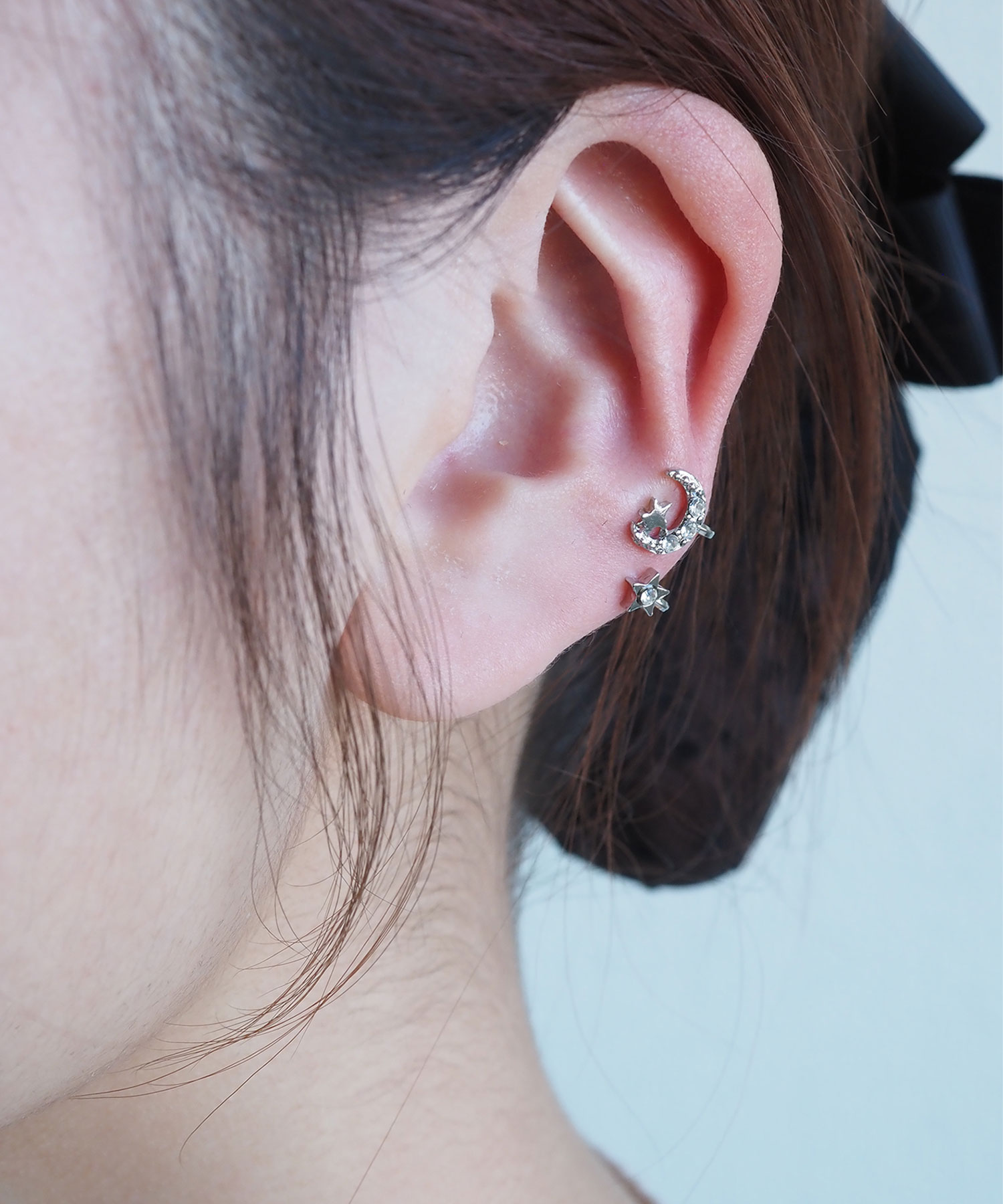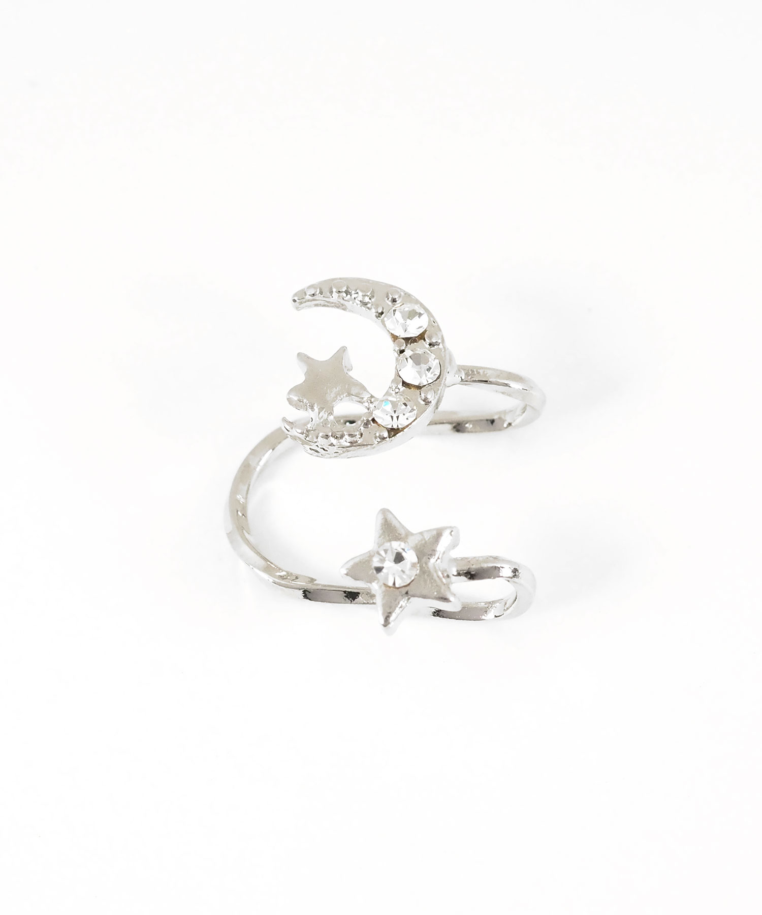 寄り添うようにデザインされた月と星が、耳元を美しく縁取るイヤーカフ。どんなスタイルにも合わせやすく、お手持ちのピアスやイヤリングとの重ね付けもおすすめ。日常のオシャレをさりげなくランクアップさせてくれる、頼れる一点です。ピアスの穴の有無に関わらず楽しめ、コーデ不要でおしゃれが叶います。片耳用です。