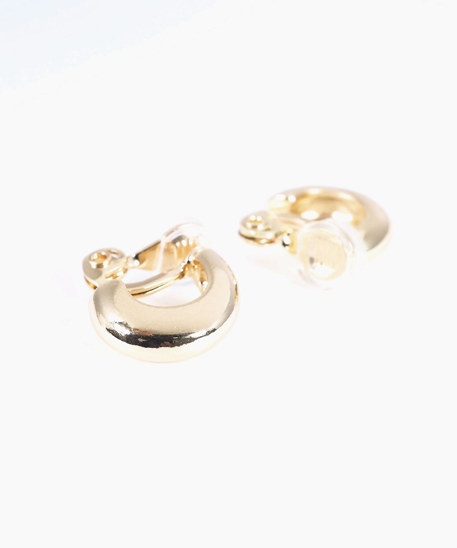ボリューム感を耳元にプラスする、ぷっくりとしたメタルフープのクリップイヤリング。丸みのあるフォルムが光を優しく反射し、女性らしい柔らかな印象を与えます。存在感がありながらも、どんなスタイルにも合わせやすいマストアイテムです。金具を開いて挟むだけの簡単で痛くなりにくいクリップ式です。