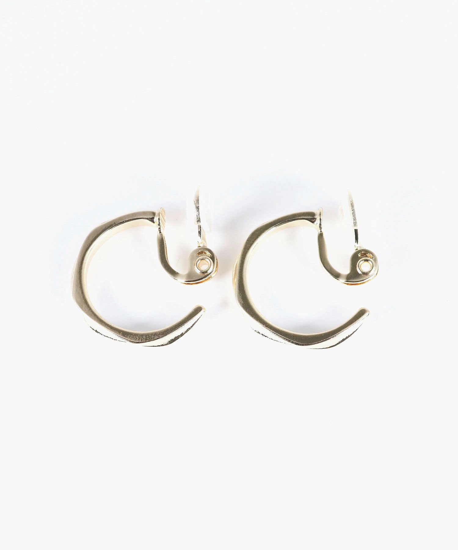 細身のフープに繊細なねじり加工を施した上品なクリップイヤリングです。光を浴びるたびにキラキラと輝き、さりげないのに華やかな耳元を演出します。存在感がありながらもスリムなデザインでどんなシーンにも馴染む万能アイテム。金具を開いてパチッと挟むだけの簡単で痛くなりにくいクリップ式です。