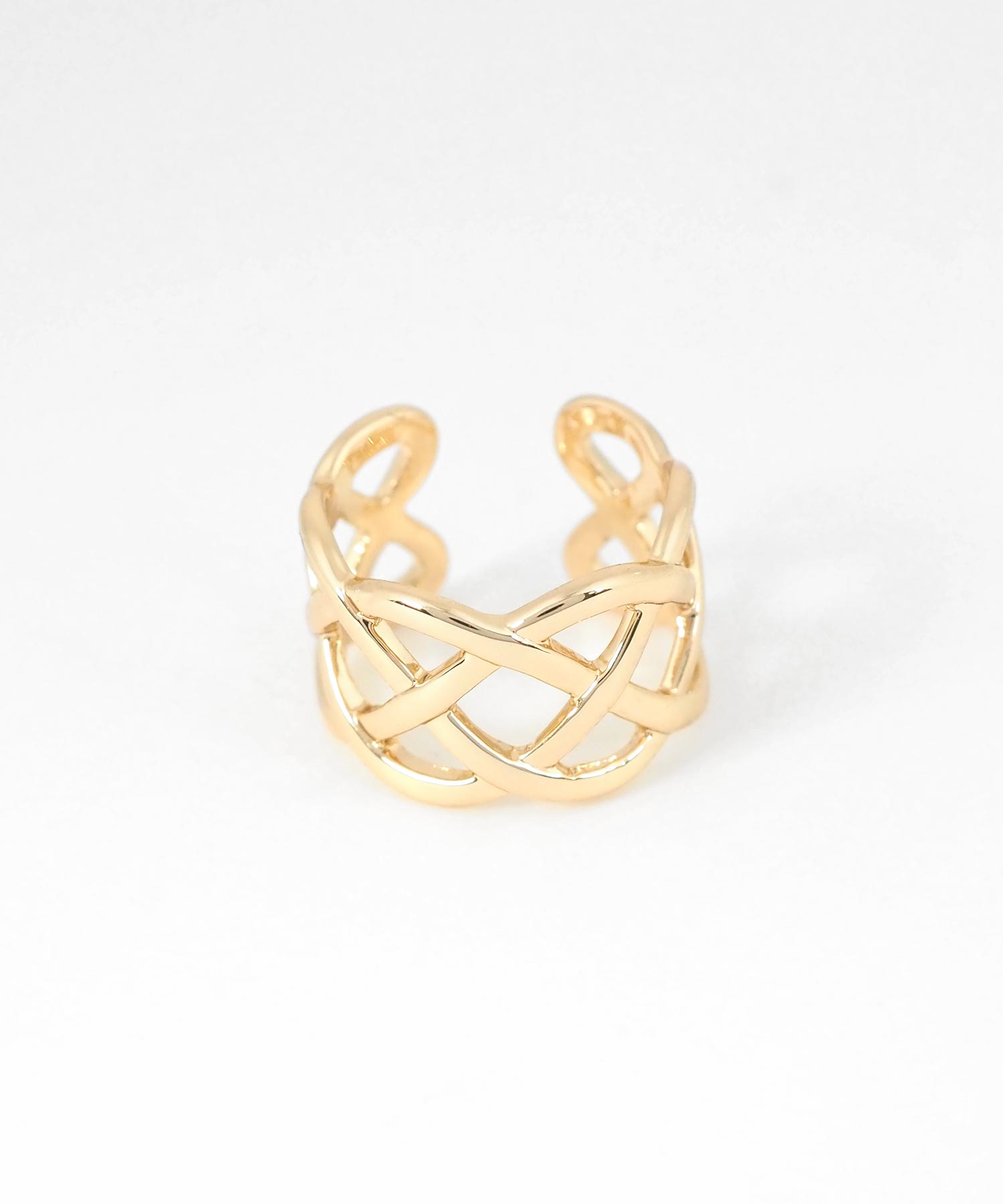 繊細なメッシュラインが織りなす、リズムのあるデザインのイヤーカフ。どんなスタイルにも合わせやすく、お手持ちのピアスやイヤリングとの重ね付けもおすすめ。日常のオシャレをさりげなくランクアップさせてくれる、頼れる一点です。ピアスの穴の有無に関わらず楽しめ、コーデ不要でおしゃれが叶います。片耳用です。