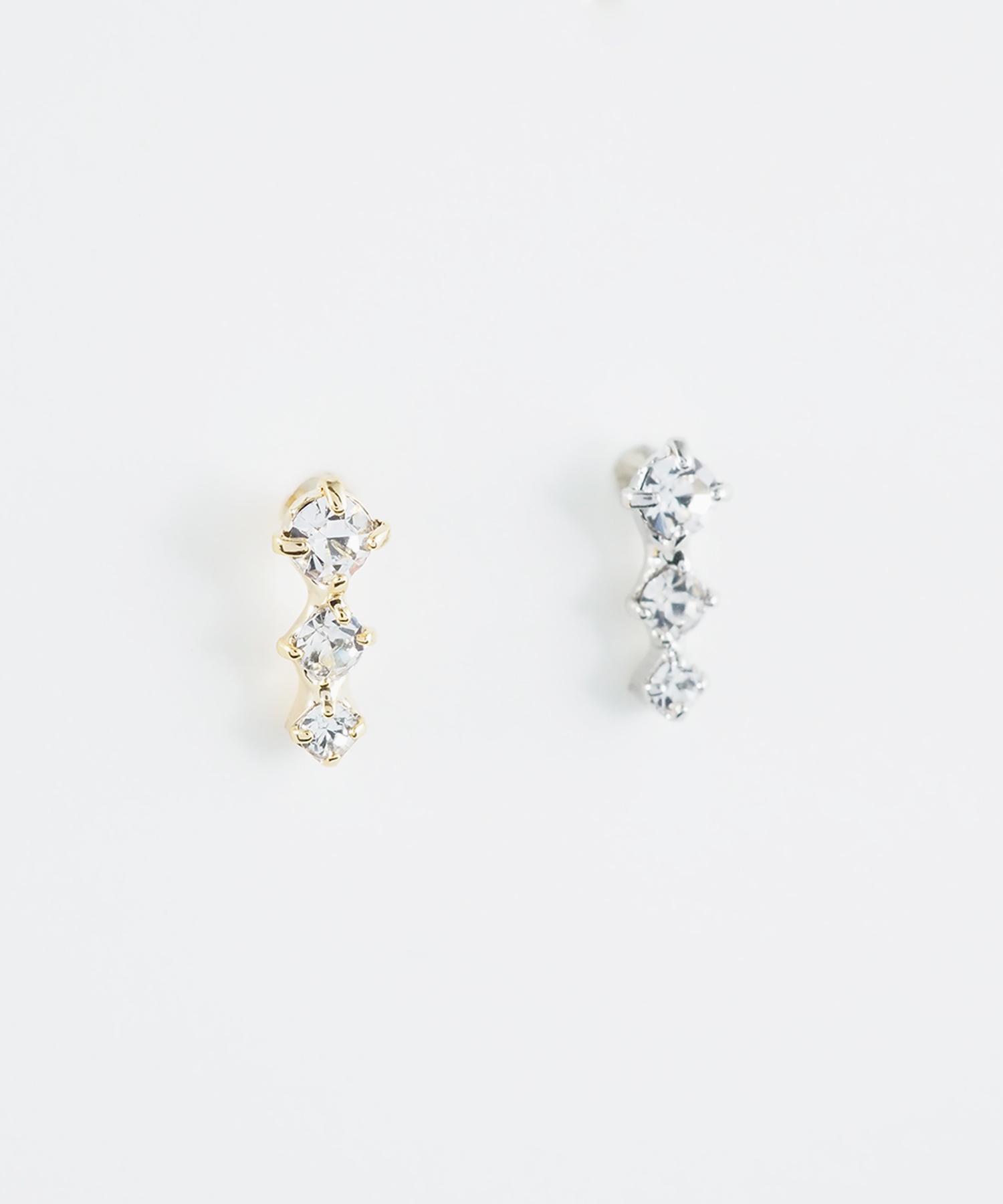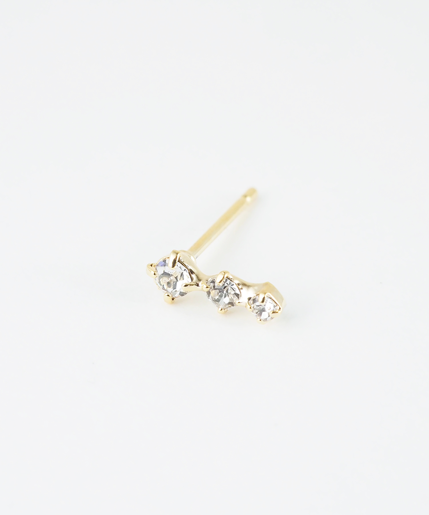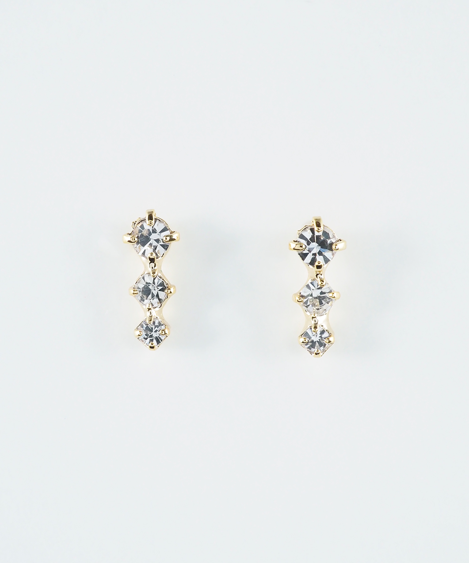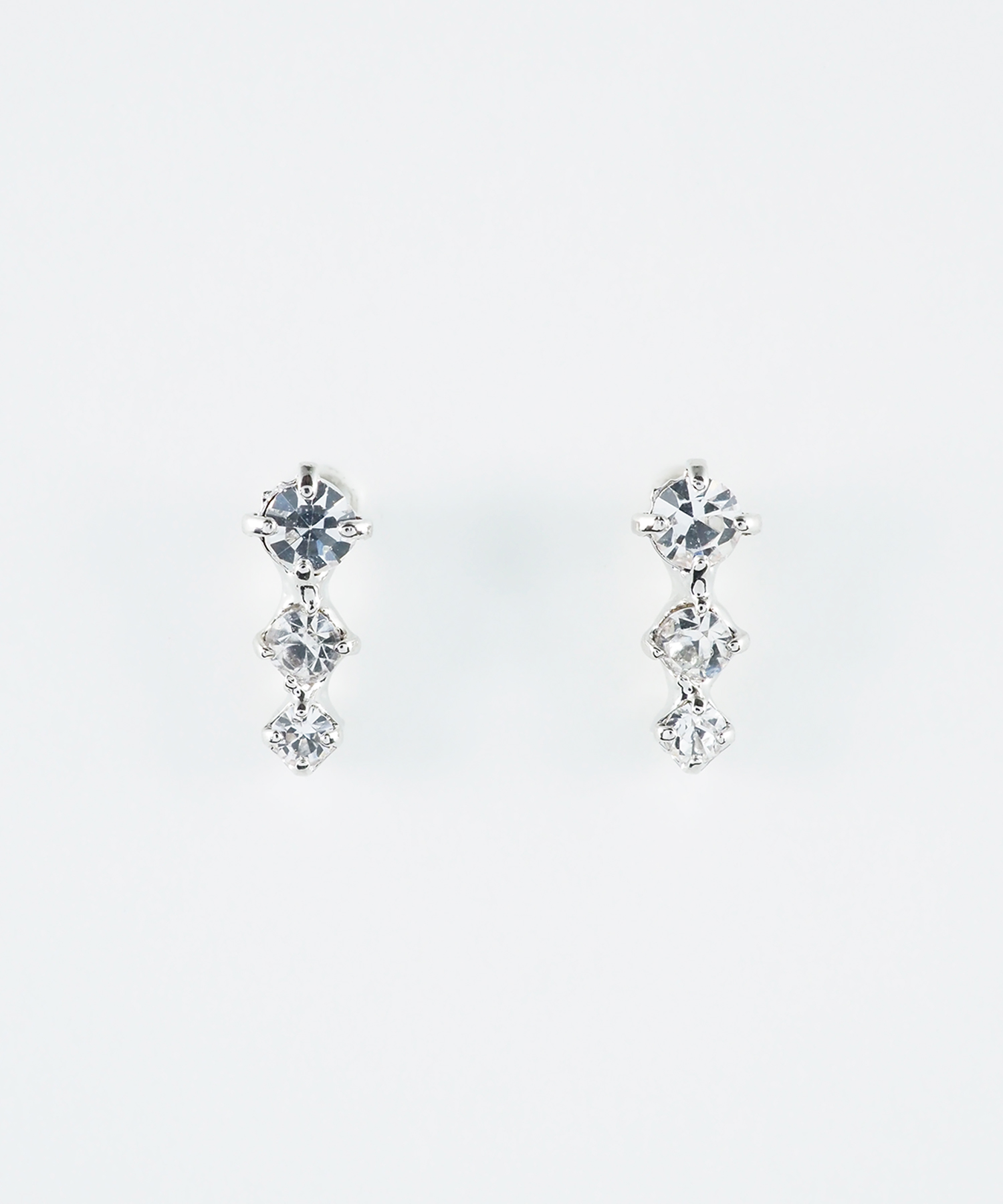 3つのストーンをセットしたシンプルなピアス。大きさの異なるストーンがきらきらと輝き、お顔周りを華やかに見せてくれます。ペアピアス(両耳用)です。