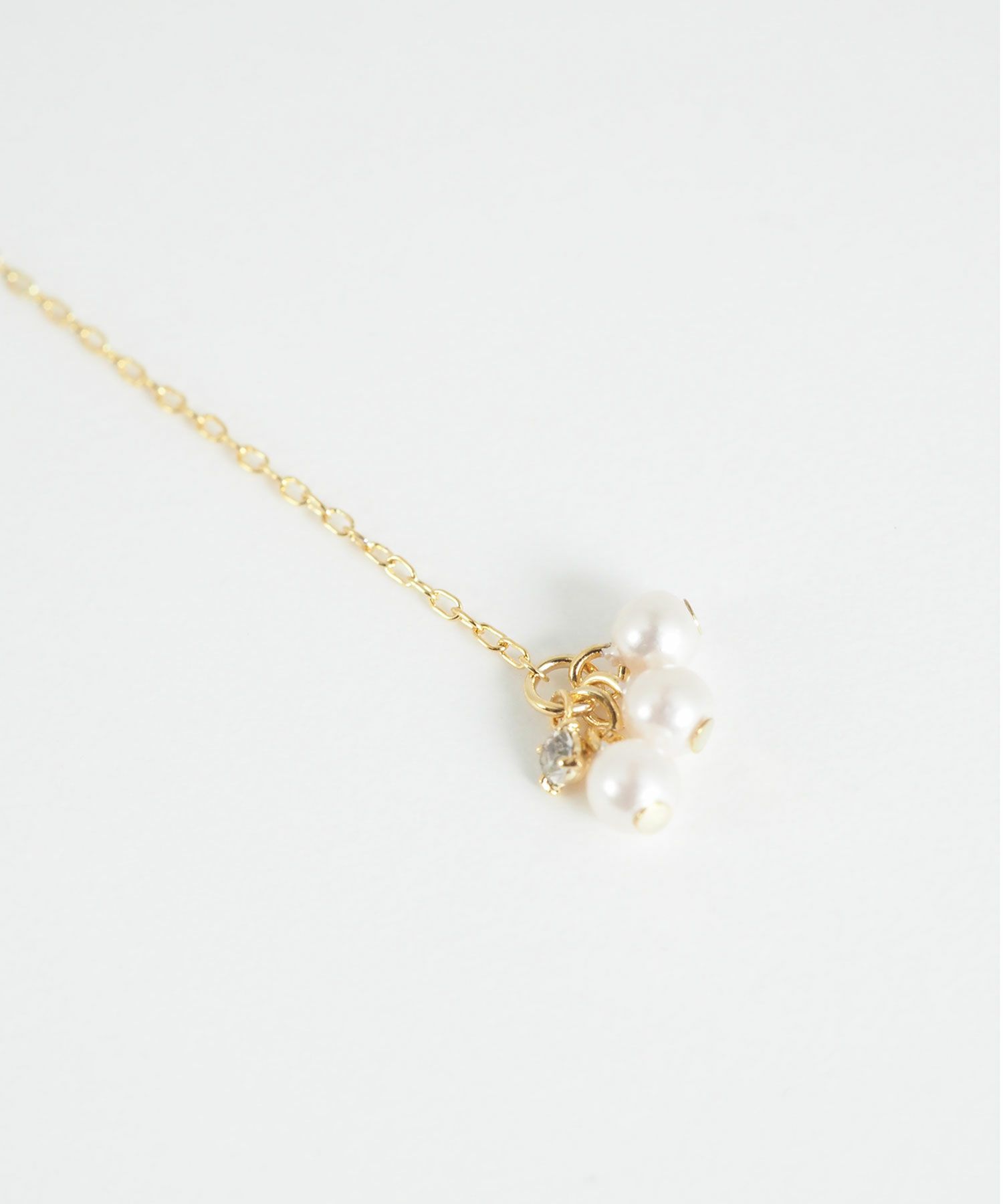 女性らしい繊細なデザインが魅力の3連パールとビジューのアメリカンピアスです。動くたびにきらめくビジューと、上品な輝きを放つパールが顔まわりを華やかに見せてくれます。シンプルながらも存在感があるので、デイリーからパーティーシーンまで幅広く活躍します。ペアピアス(両耳用)です。