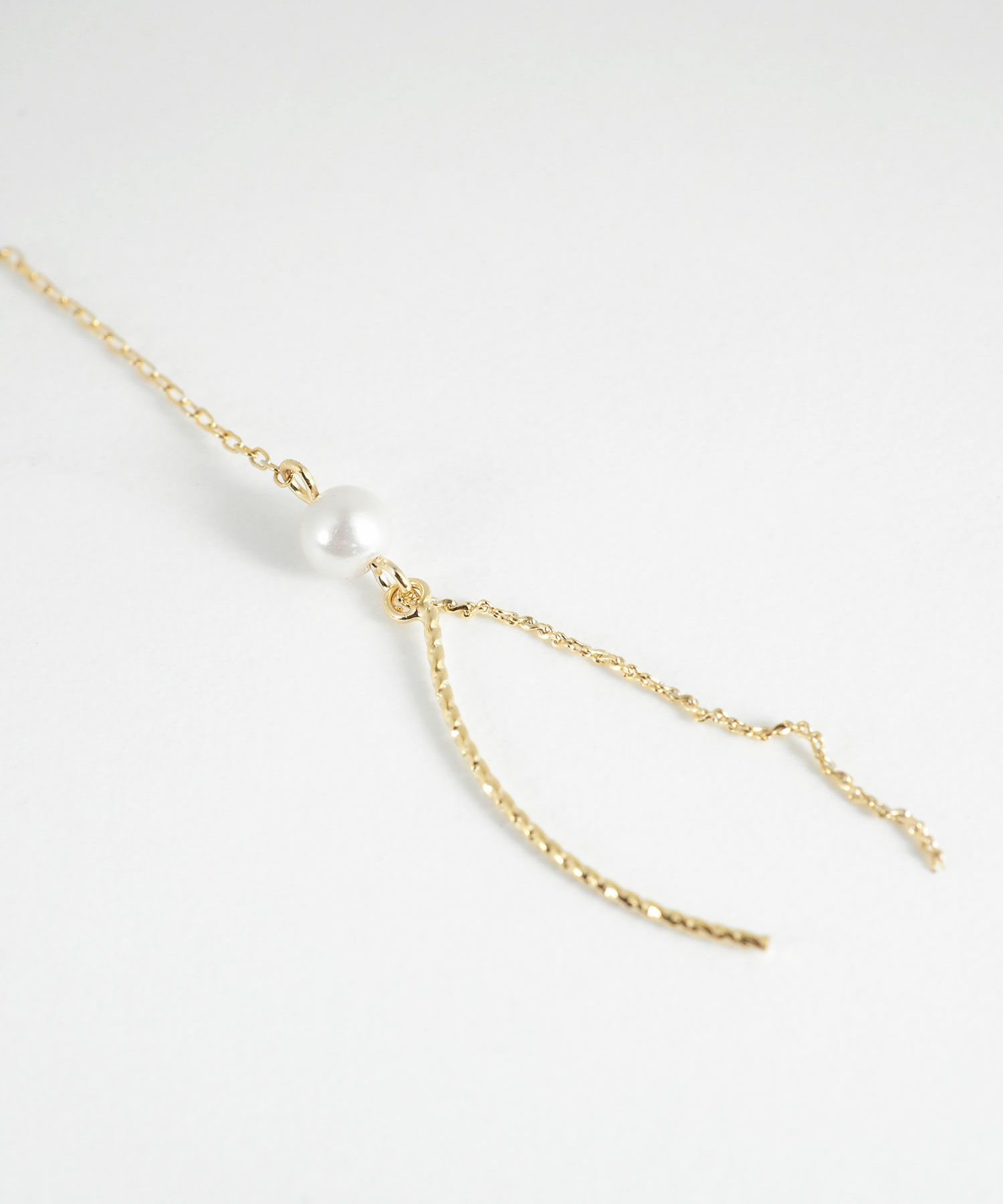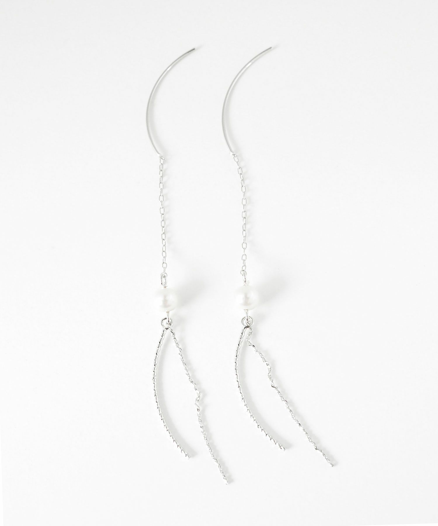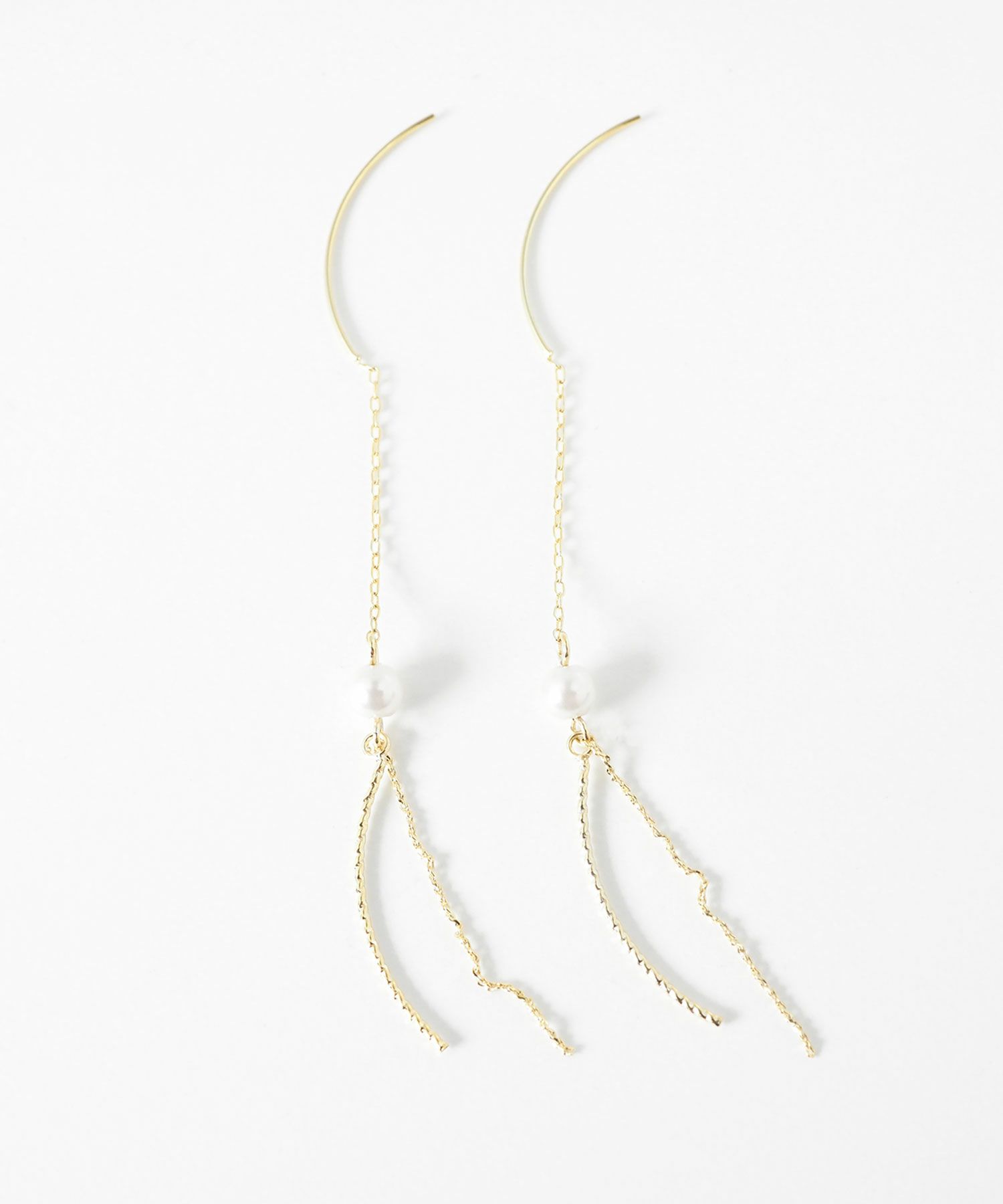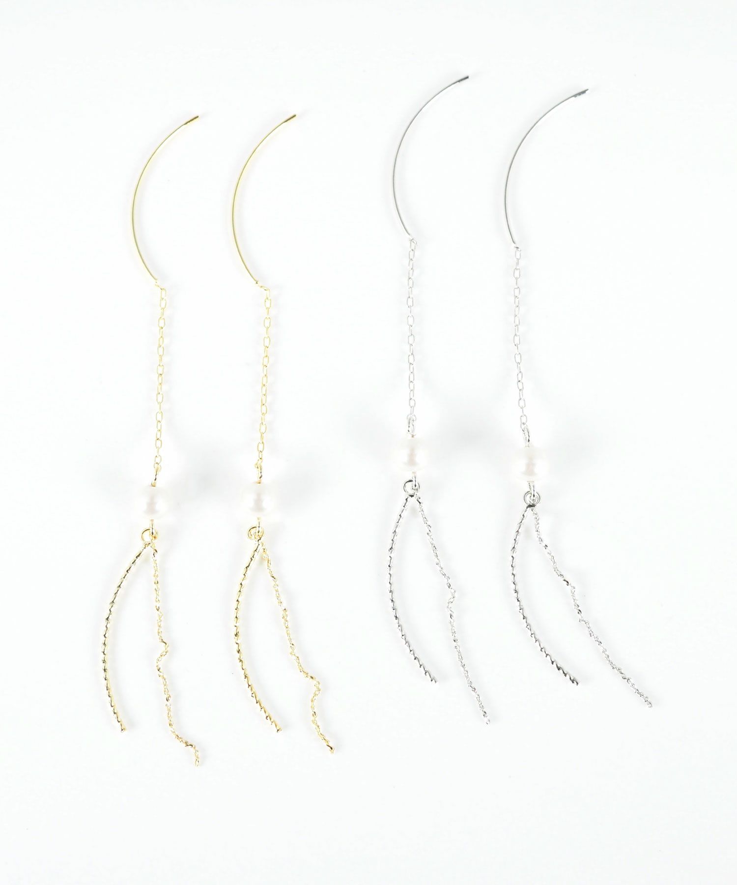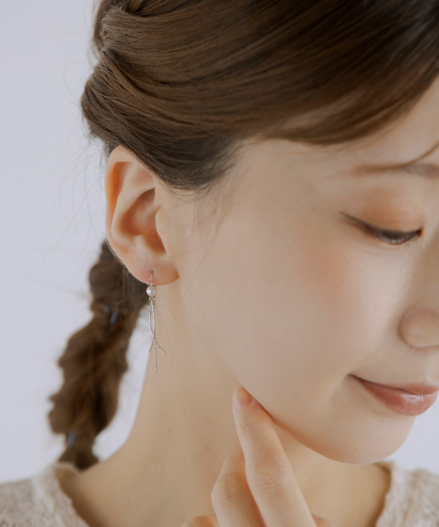 耳元からしなやかに垂れ下がるシャイニーラインと、優しく揺れるパールが印象的なアメリカンピアス。動くたびに光を反射して輝くラインと、エレガントなパールが上品で洗練された雰囲気を演出します。どんなコーディネートにも自然に馴染み、ワンランク上のスタイルを完成させてくれます。ペアピアス(両耳用)です。