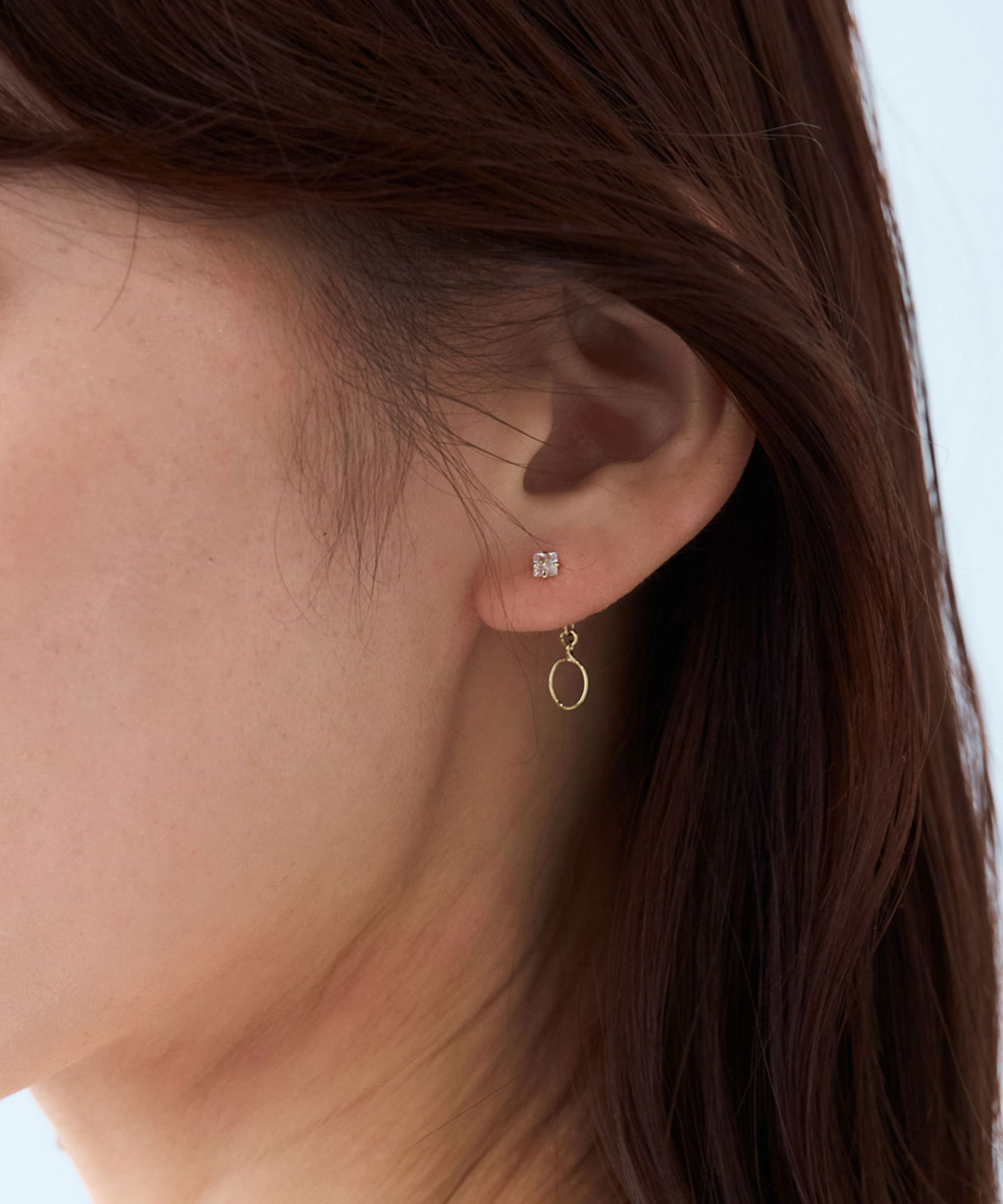スクエアのストーンが耳たぶからクールに輝き、耳の後ろから見えるパールが女性らしいエレガントさをプラス。正面から見ても、横から見ても美しいデザインです。ペアピアス(両耳用)です。