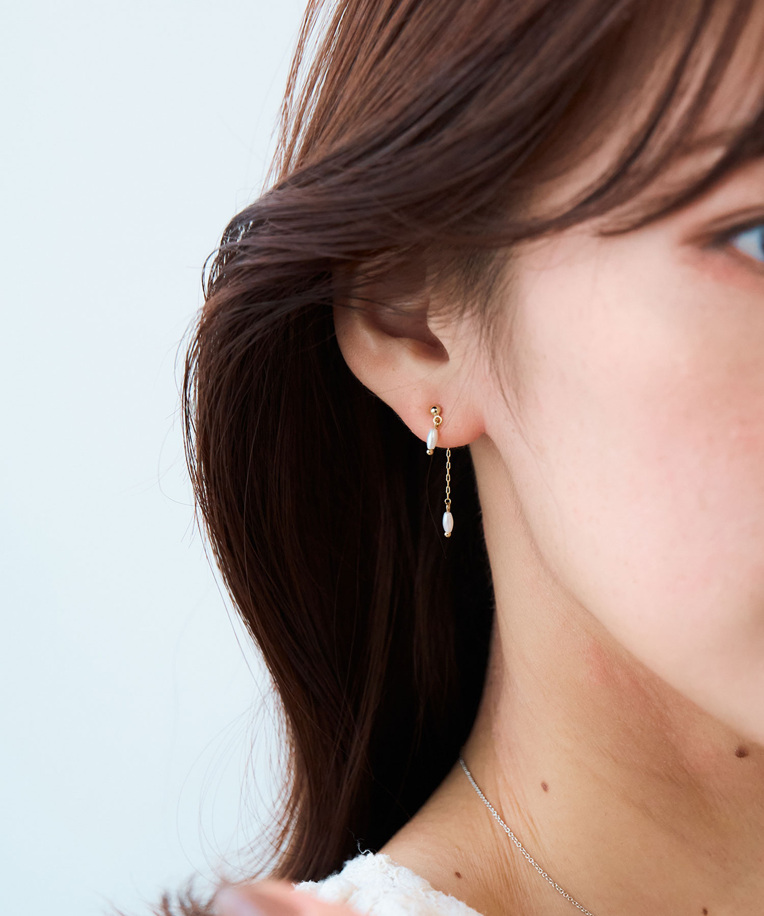 耳元をエレガントに彩るドロップパールと、耳の後ろから優雅に輝くドロップパールキャッチのセット。動くたびに、まるで光のしずくがこぼれ落ちるようにきらめき、上品で洗練された雰囲気を演出します。360度美しいデザインです。ペアピアス(両耳用)です。
