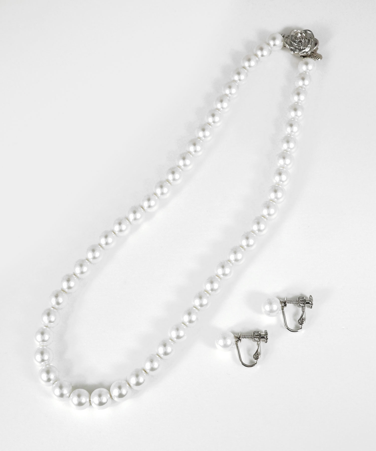 MATERIAL ネックレス:ガラスパール、真鍮、合金
