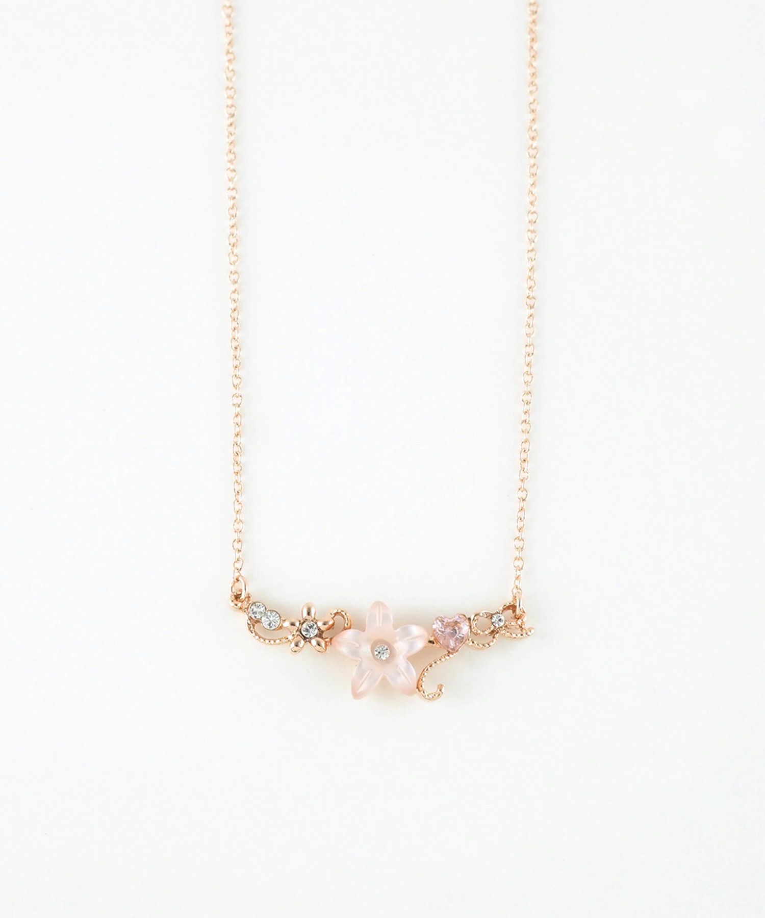 上品な光沢と温かみのある風合いが魅力の、ピンク蝶貝のフラワーモチーフネックレス。ハートモチーフやピンクゴールドとの組み合わせで、より可憐で愛らしい印象に。フェミニンな装いにはもちろん、ベーシックなコーディネートのアクセントとしてもおすすめです。