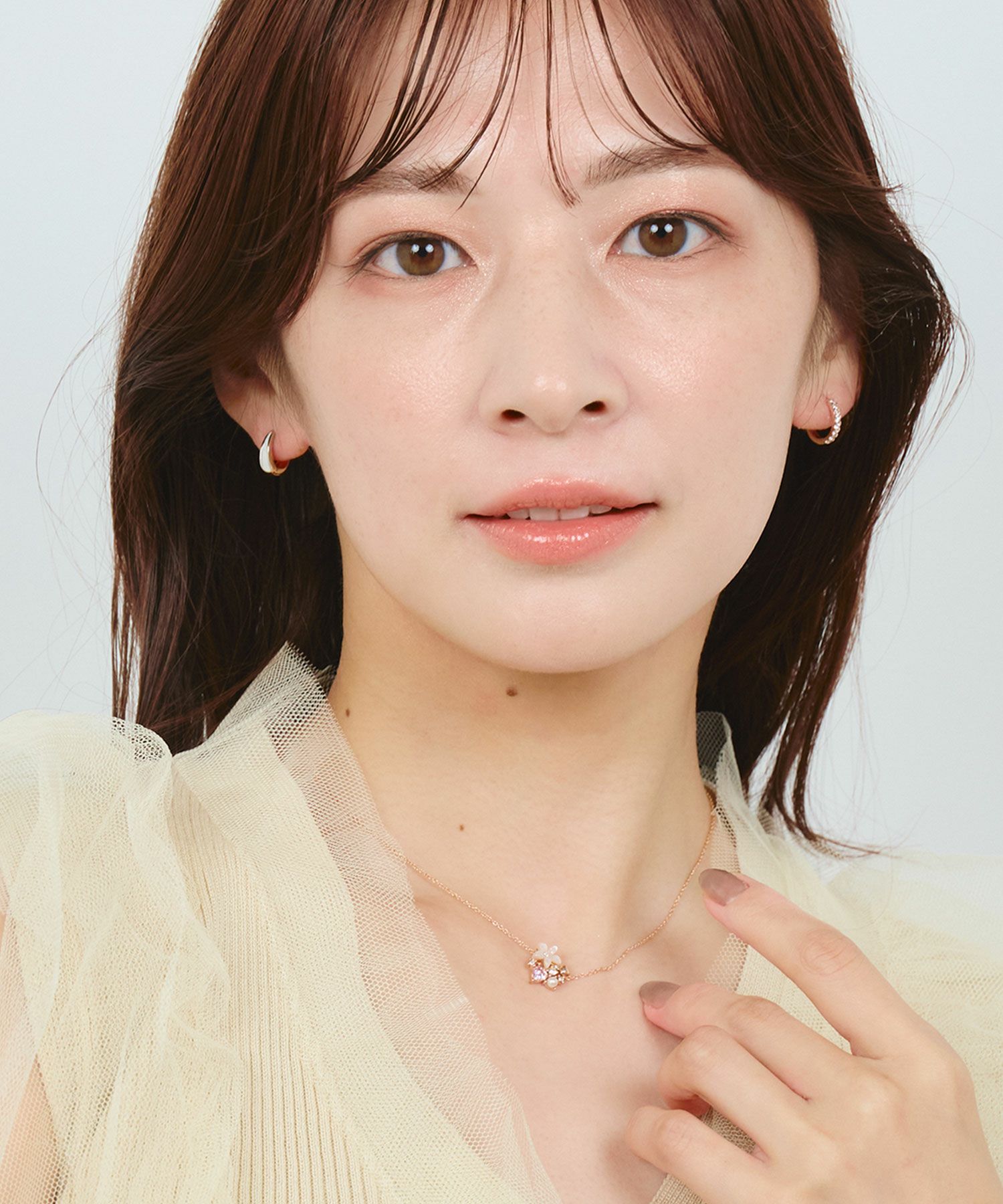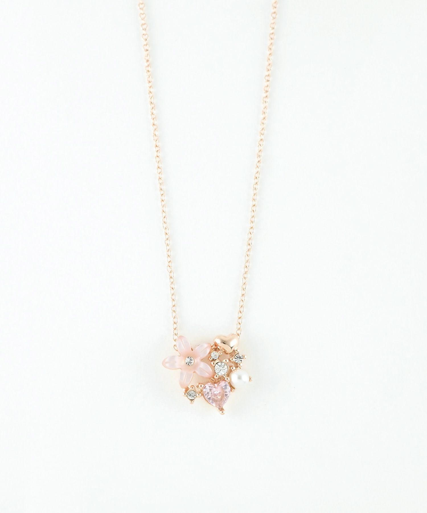 上品な光沢と温かみのある風合いが魅力の、ピンク蝶貝のフラワーモチーフネックレス。ハートモチーフやピンクゴールドとの組み合わせで、より可憐で愛らしい印象に。フェミニンな装いにはもちろん、ベーシックなコーディネートのアクセントとしてもおすすめです。
