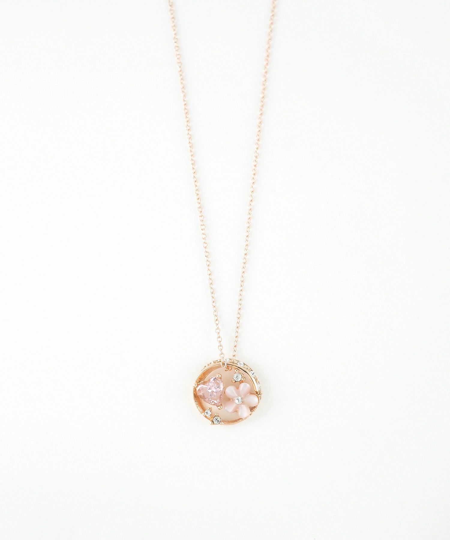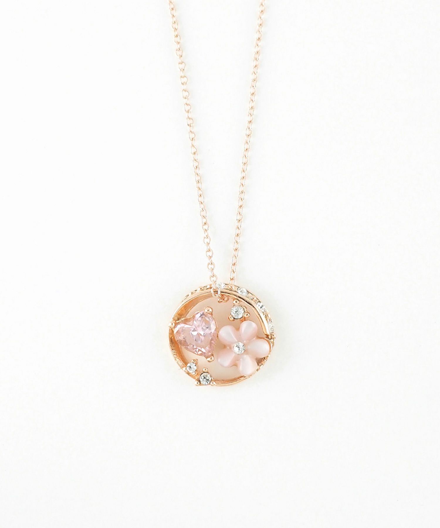 上品な光沢と温かみのある風合いが魅力の、ピンク蝶貝のフラワーモチーフネックレス。ハートモチーフやピンクゴールドとの組み合わせで、より可憐で愛らしい印象に。フェミニンな装いにはもちろん、ベーシックなコーディネートのアクセントとしてもおすすめです。