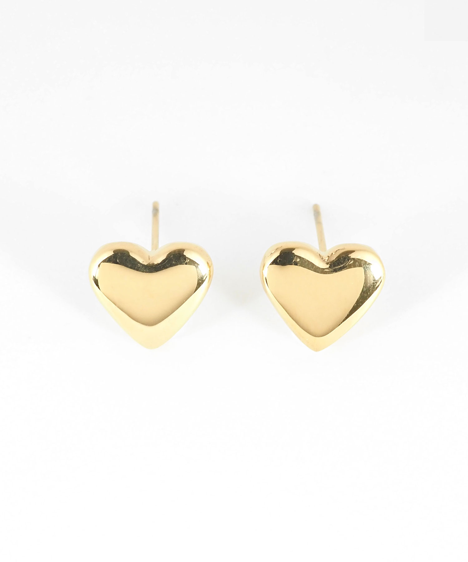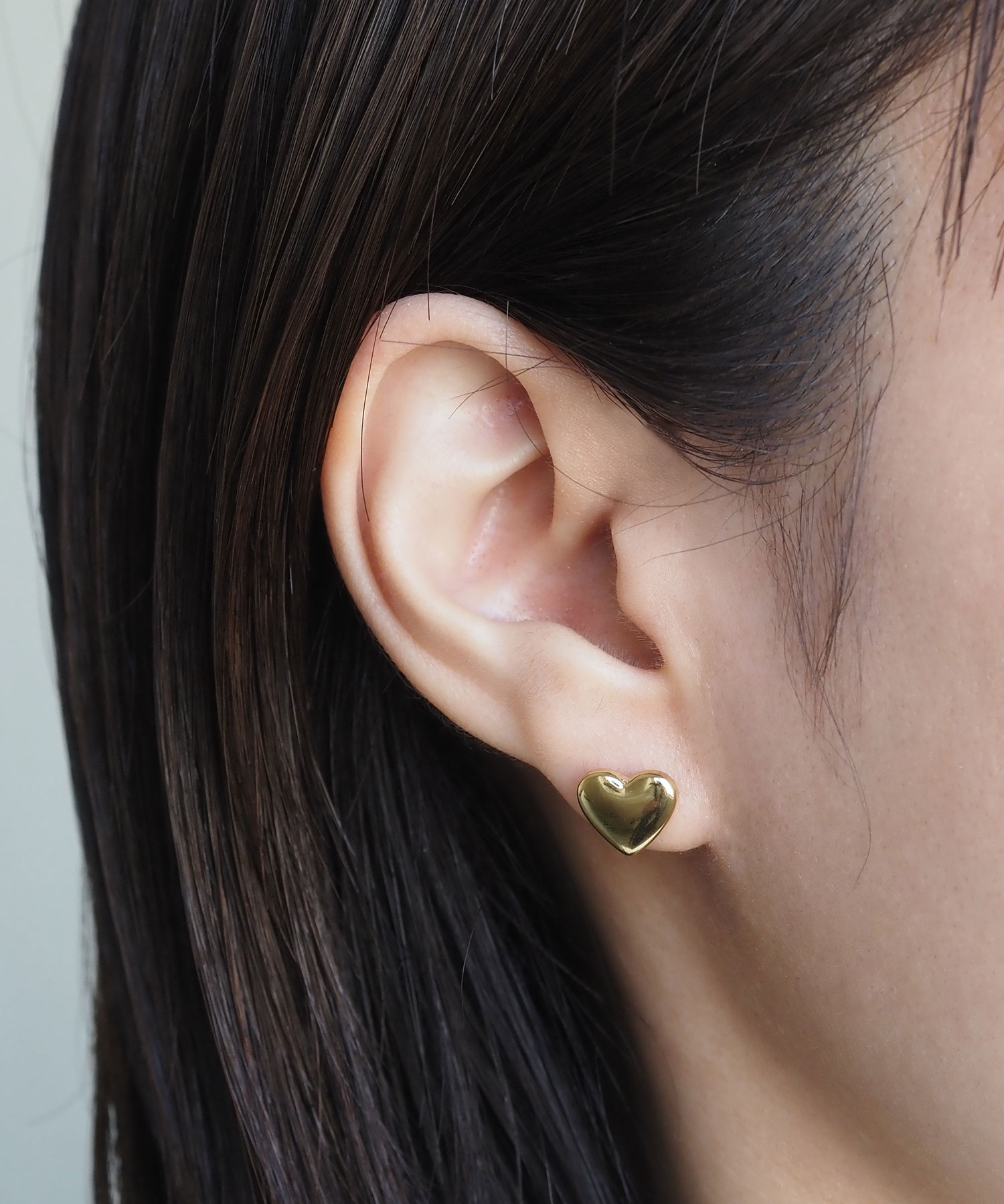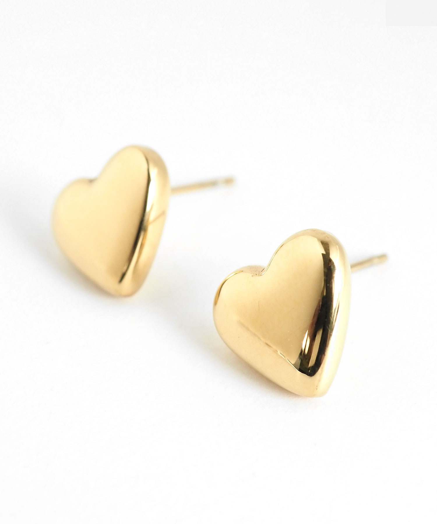 シンプルなハートが艶めくステンレスピアス。オールステンレスで耳元に輝く存在感を与えます。ペアピアス(両耳用)です。